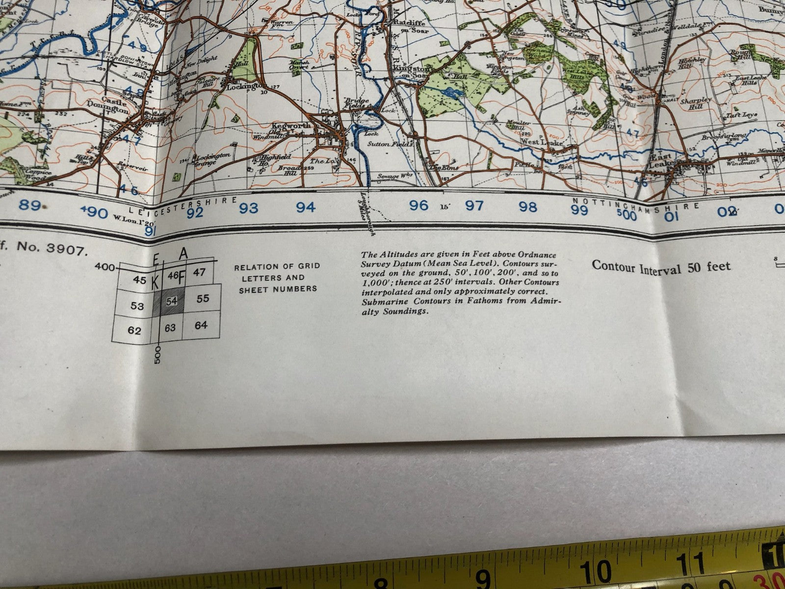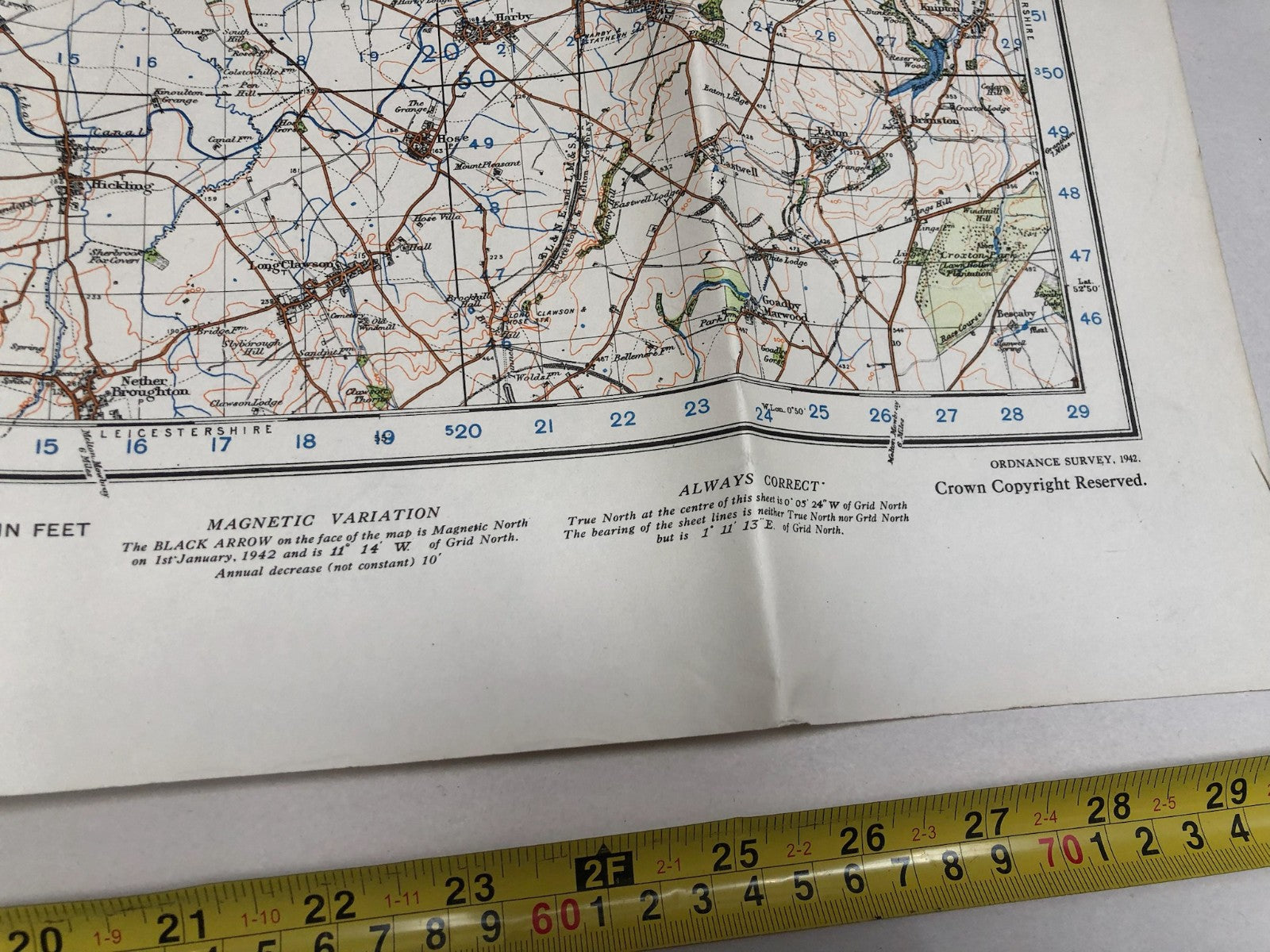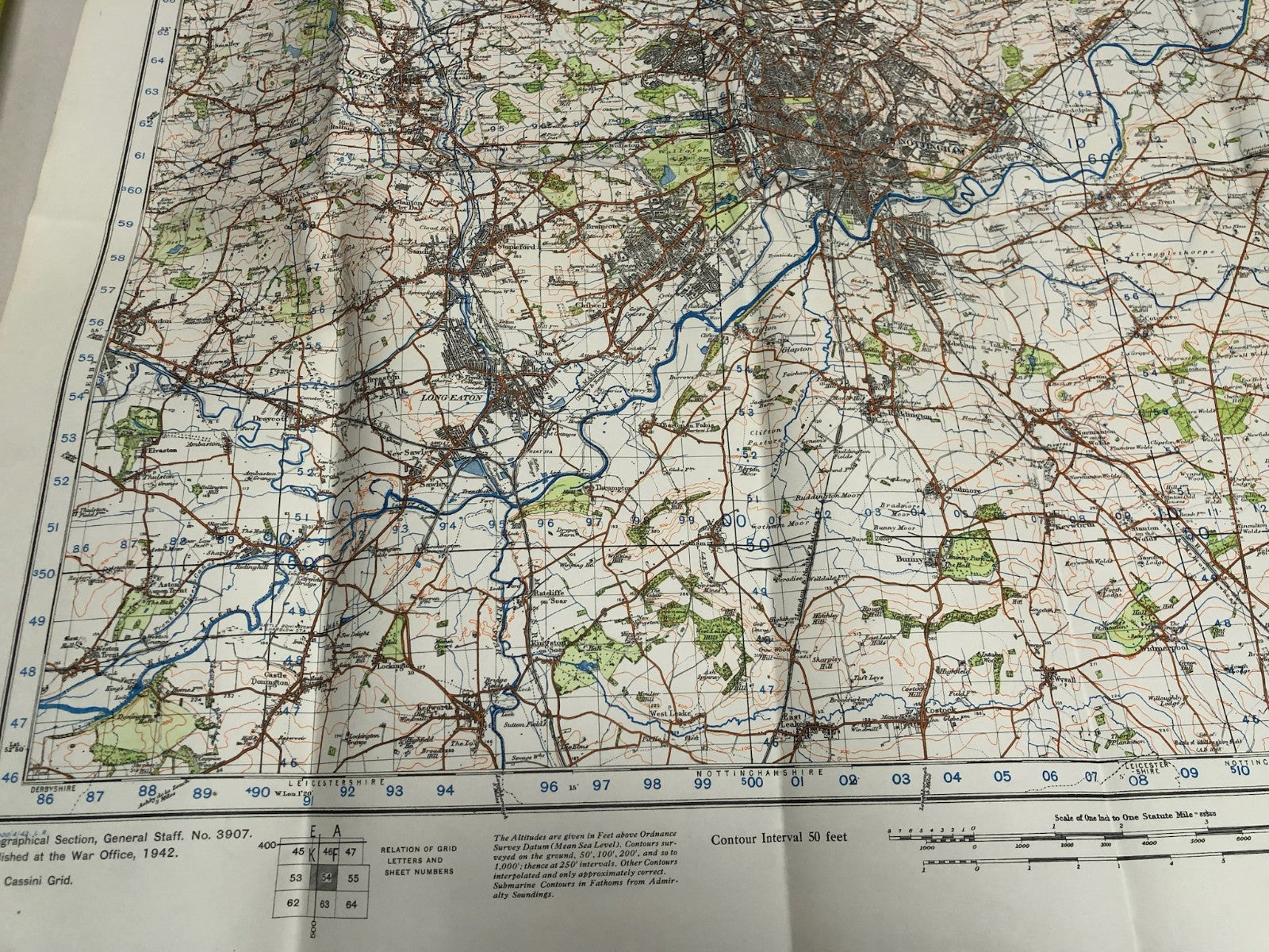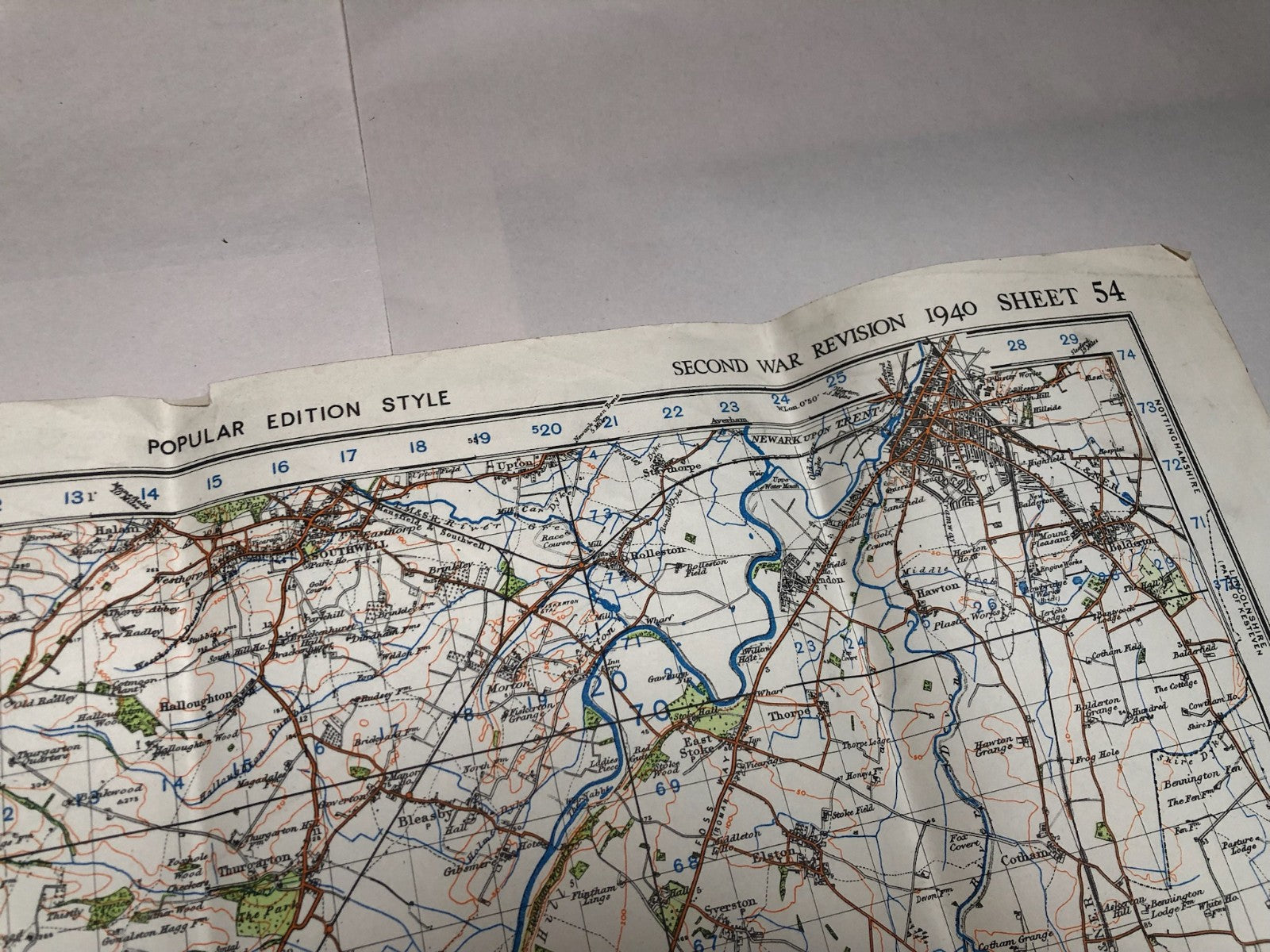 Original WW2 British Army Map of the UK - Nottingham