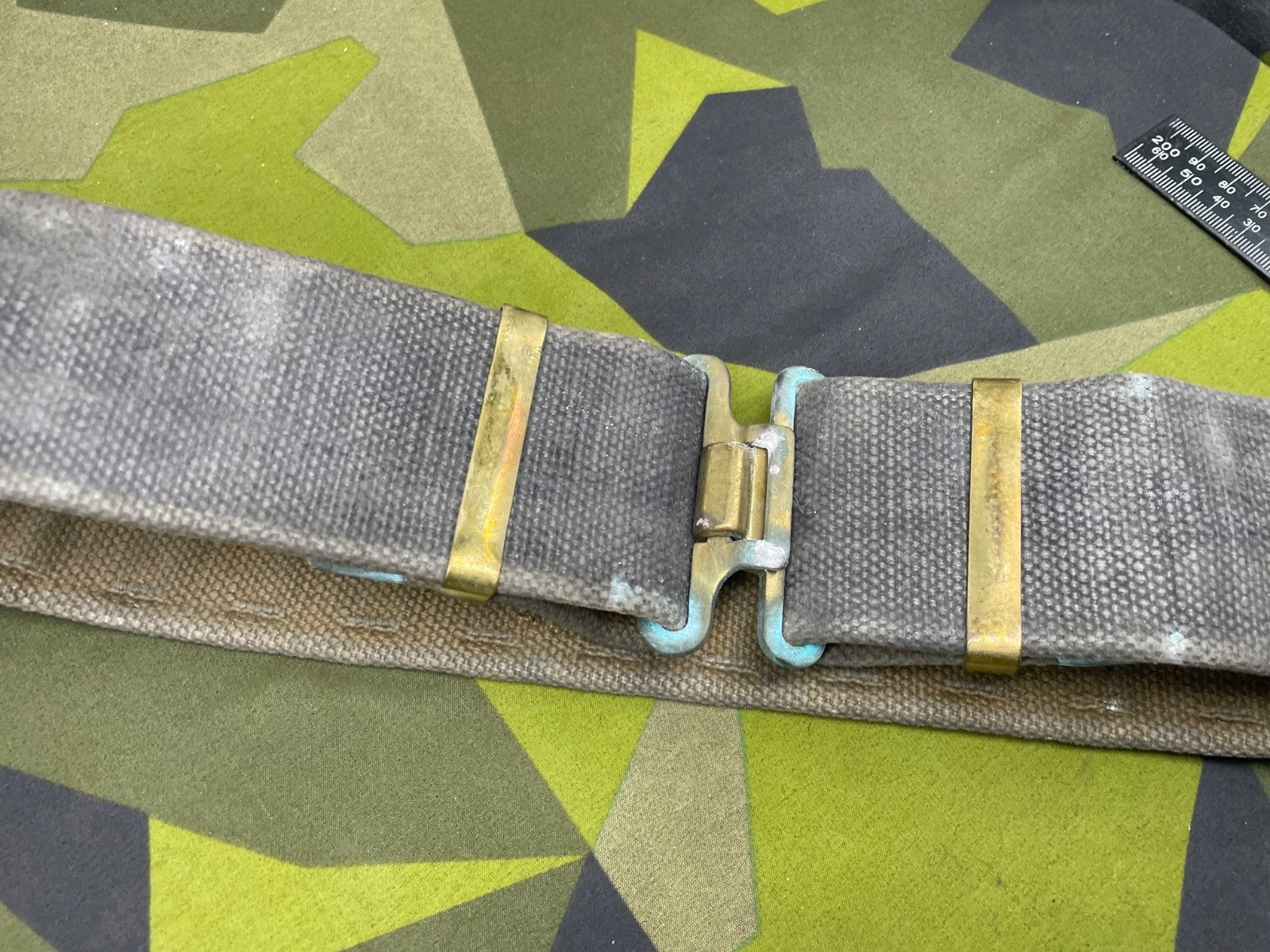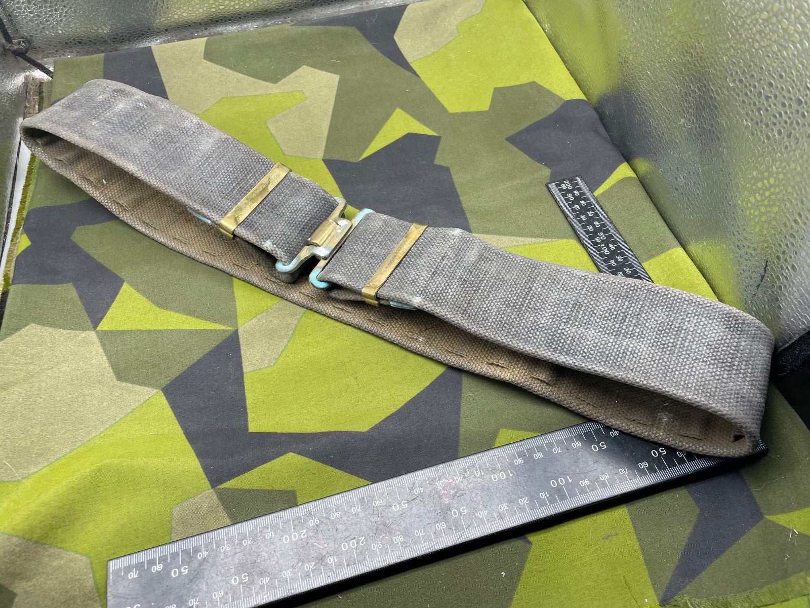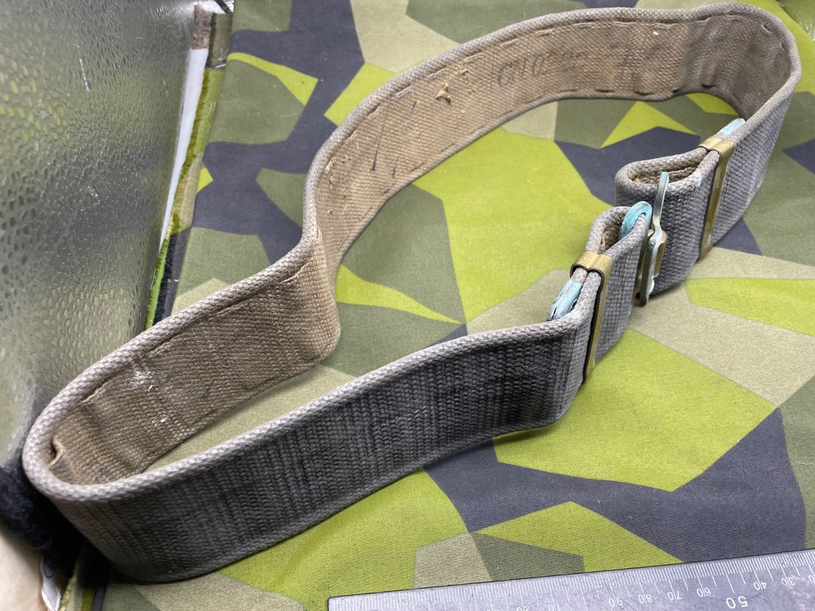Original WW2 British RAF Blue 37 Pattern Drivers' Webbing Belt - Size 36 Inch Waist. It has had the two rear buckles removed so they did not interfere with the drivers sitting down for long periods of time.