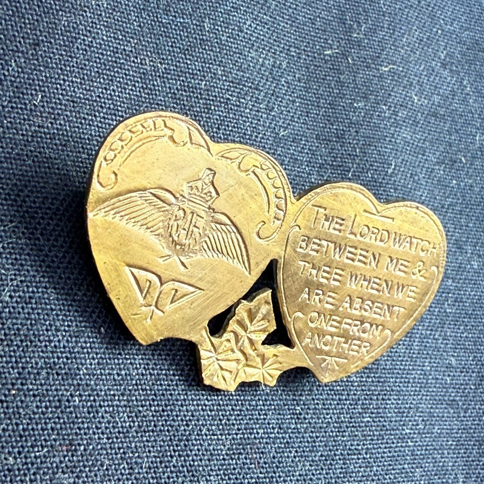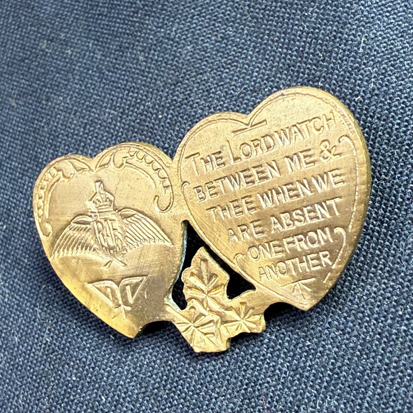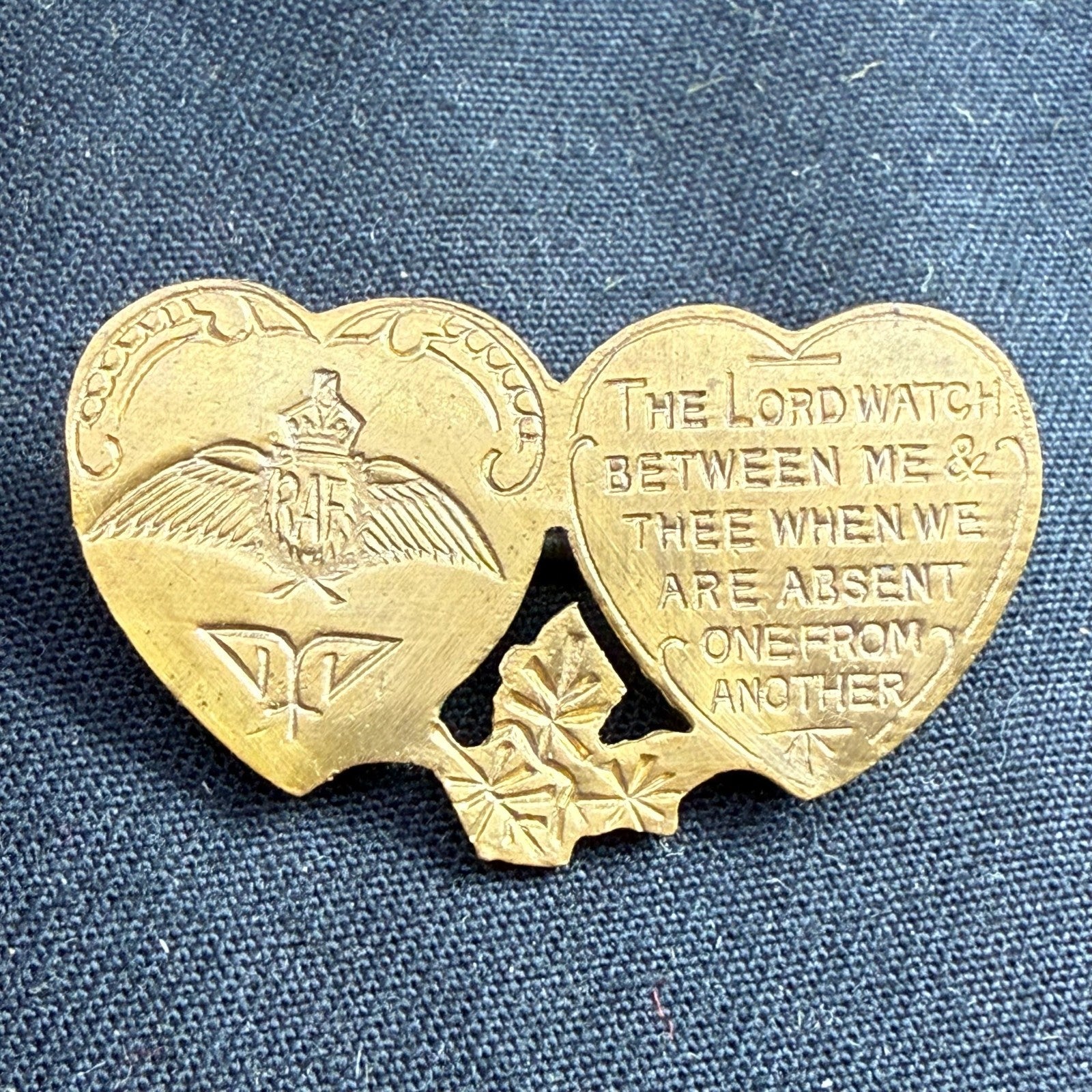 Original WW2 British RAF Royal Air Force Mizpah Double Heart Sweetheart Brooch