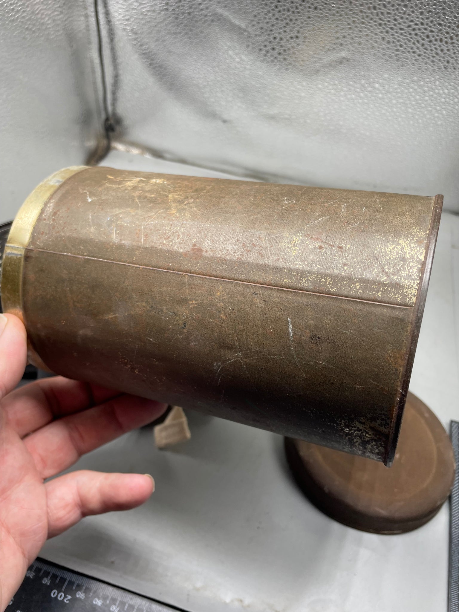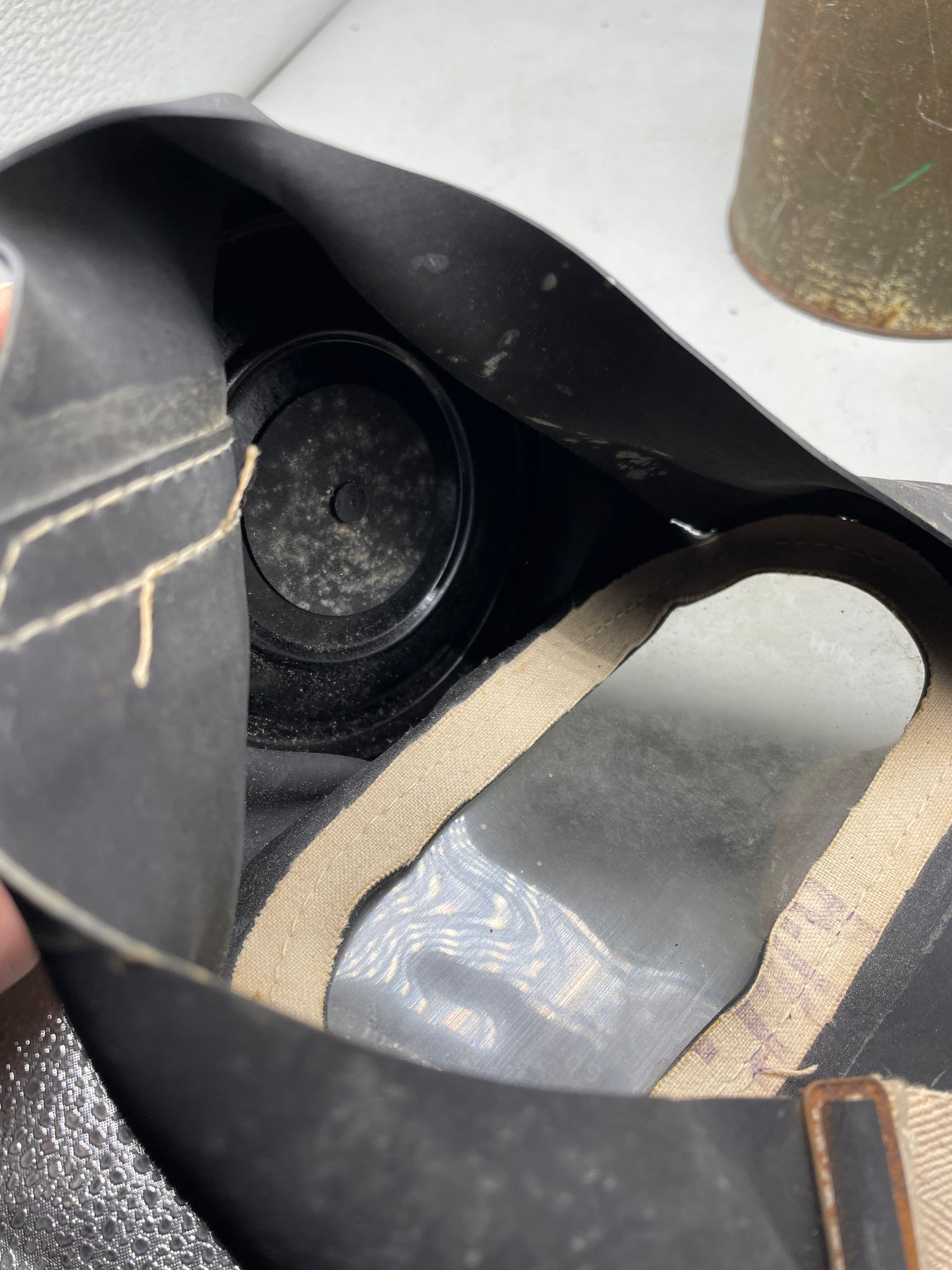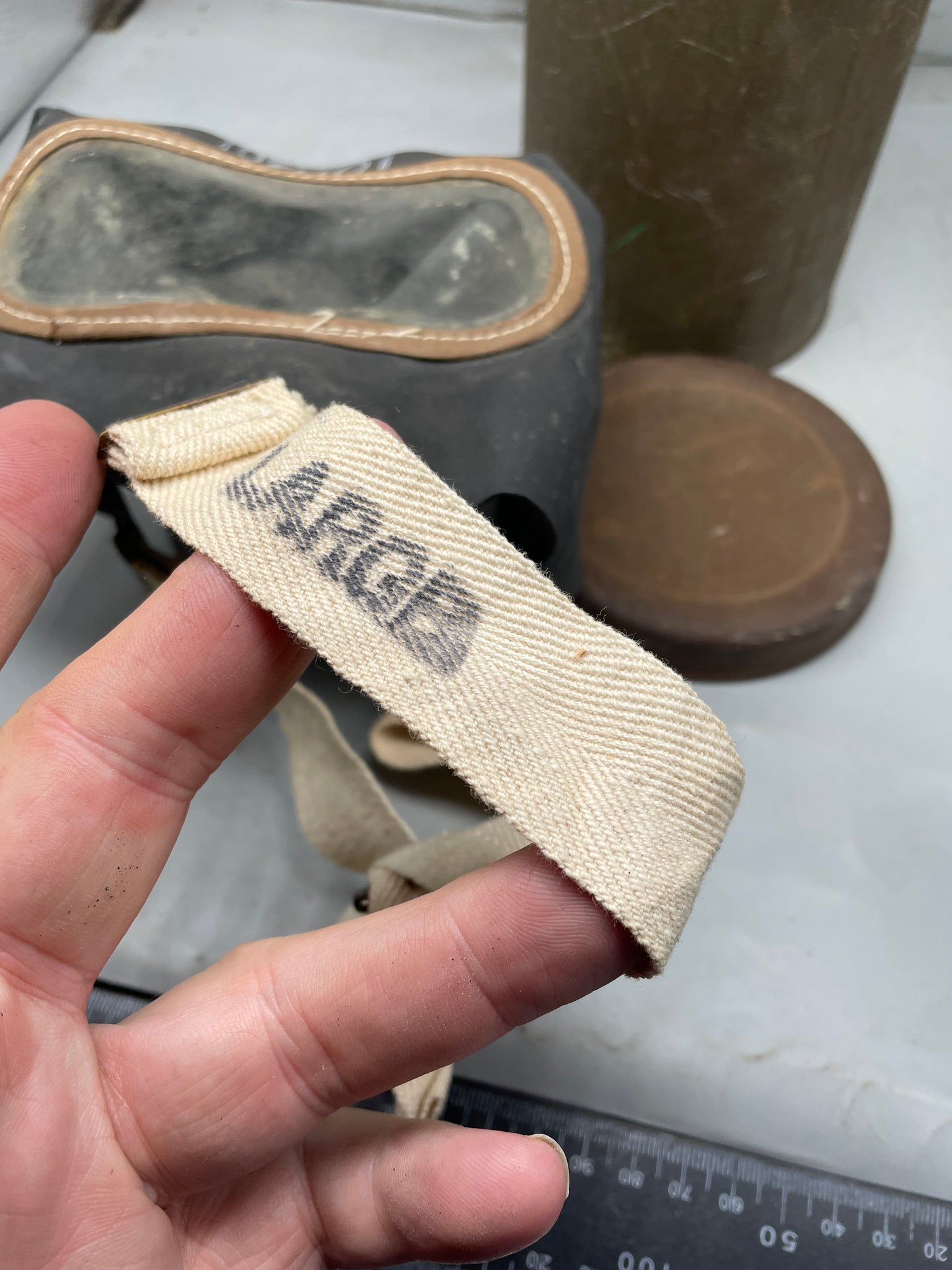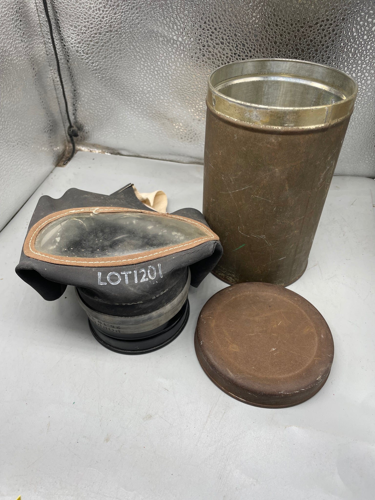 Everything is in good condition. Tin like this could be bought at shops during the war as an accessory to protect the gas mask from rain and dirt.