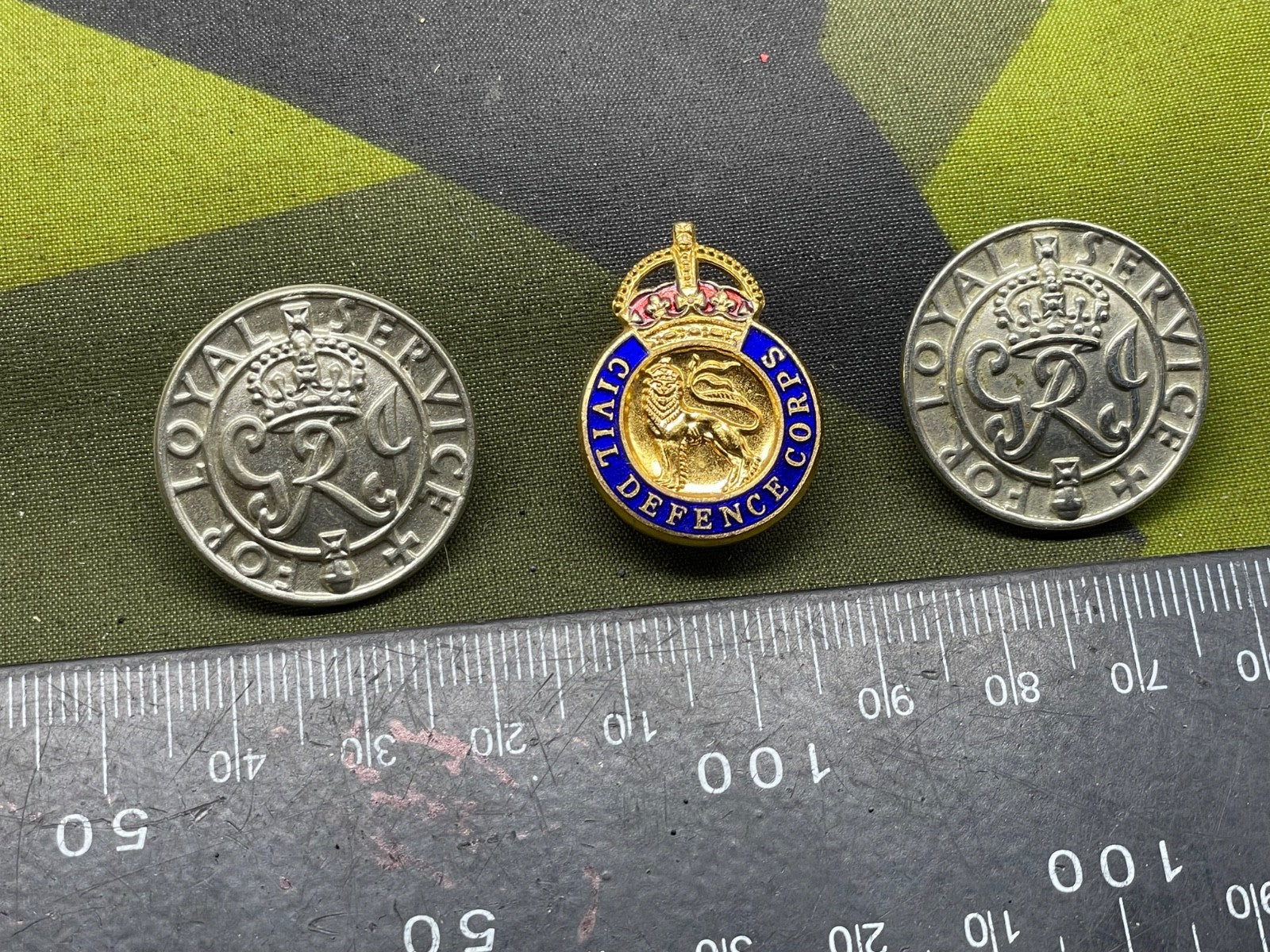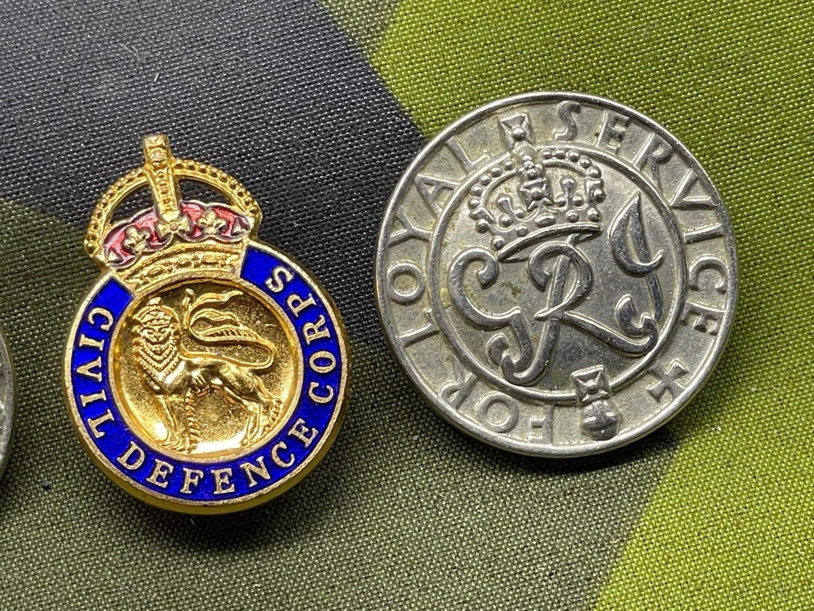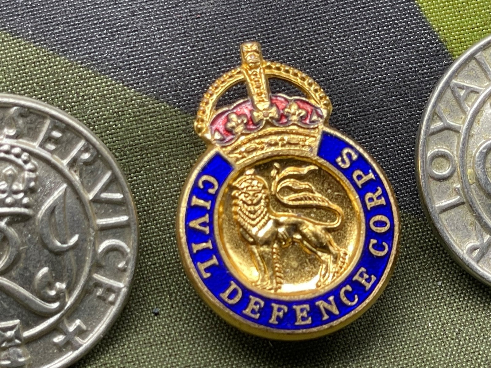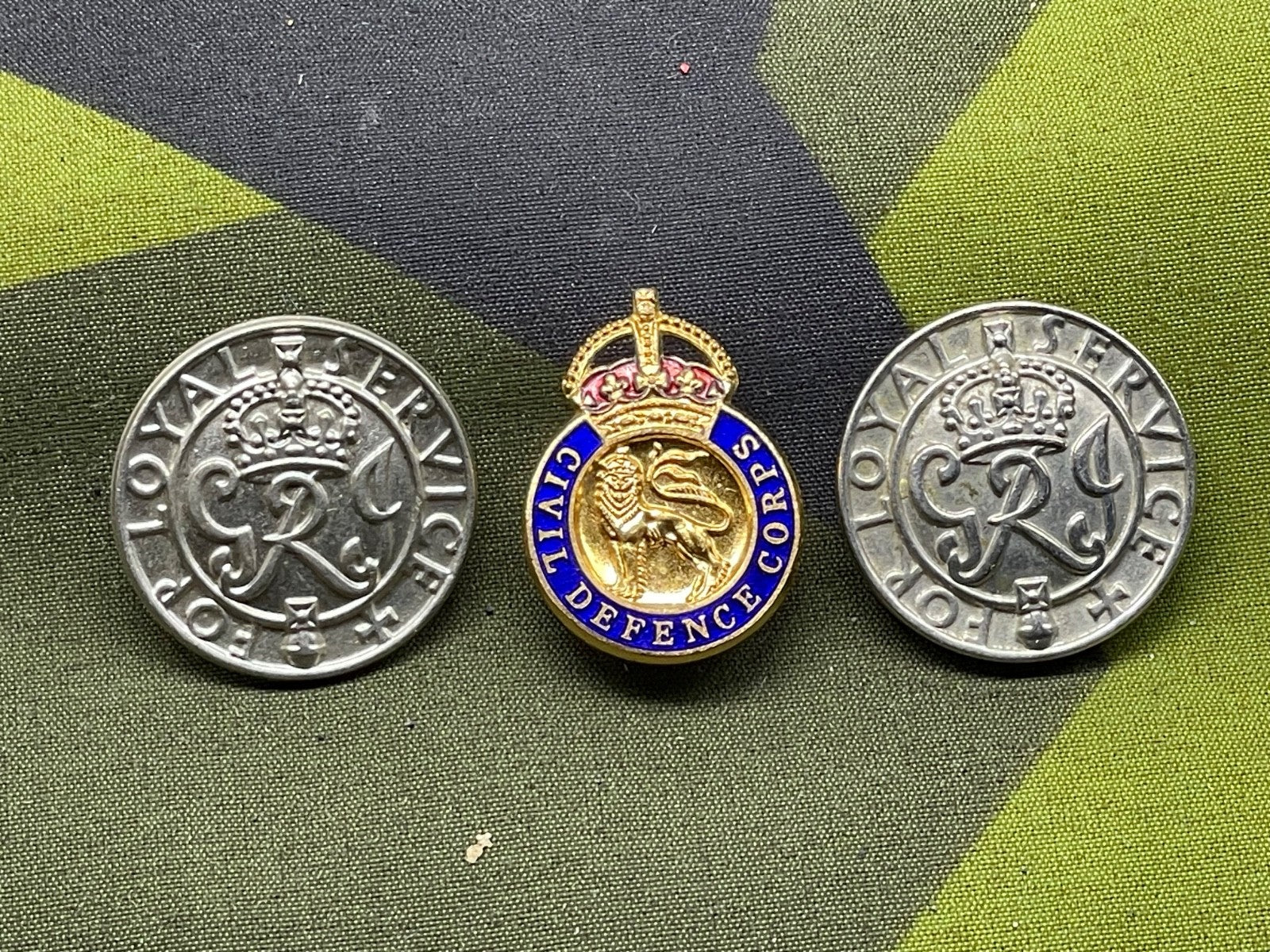 3 Original WW2 British Home Front Badges - Loyal Service & Civil Defence Corps