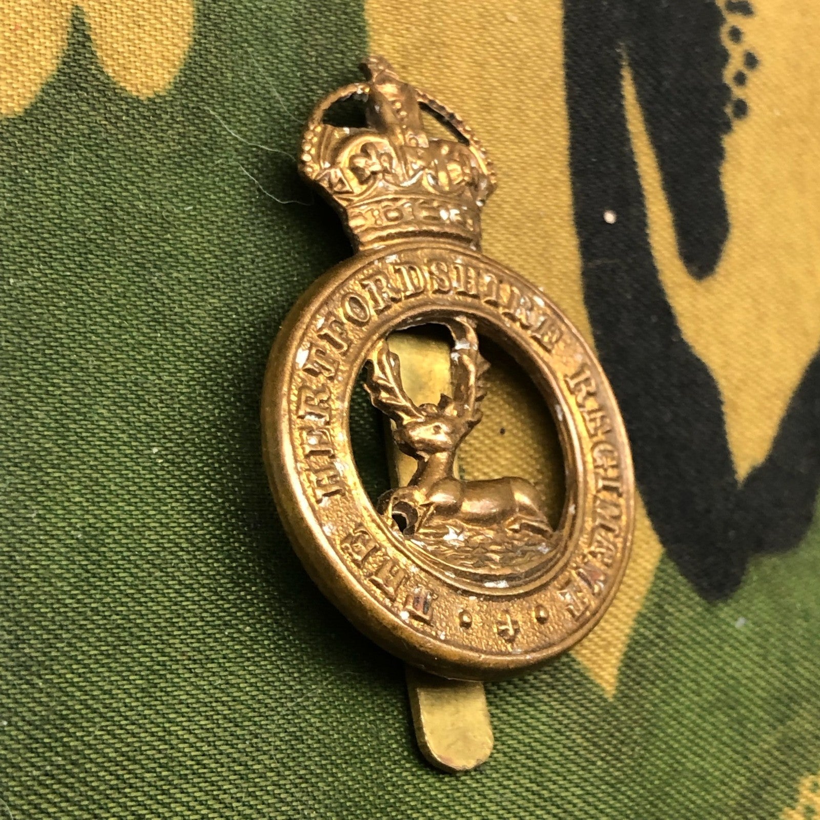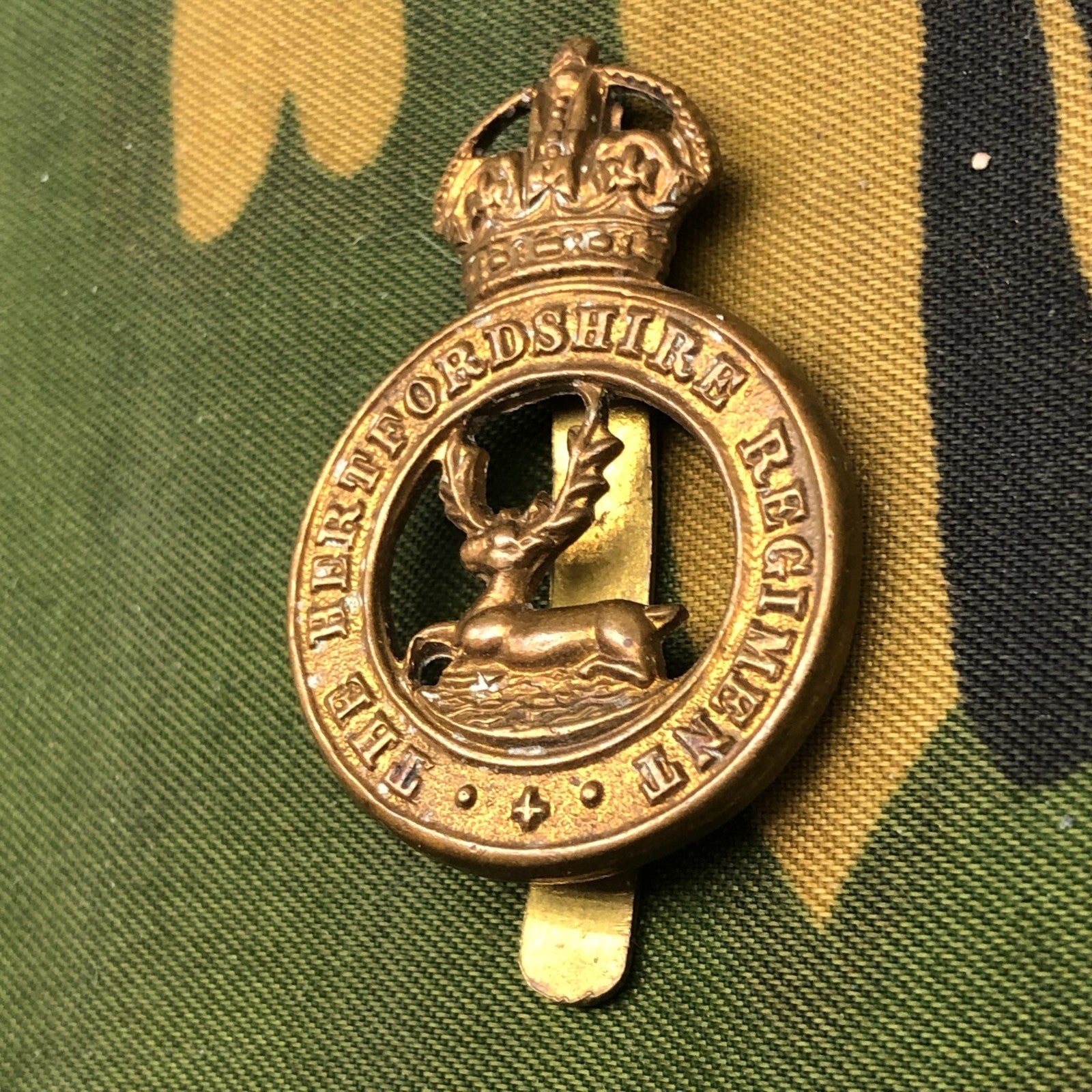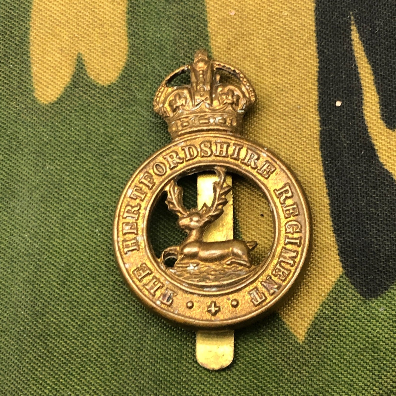 Hertfordshire Regiment Cap Badge - Original British Army WW2 Era