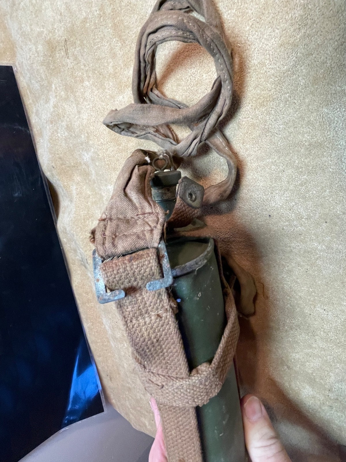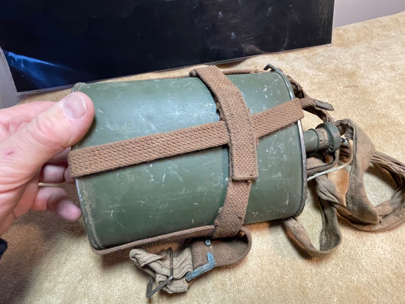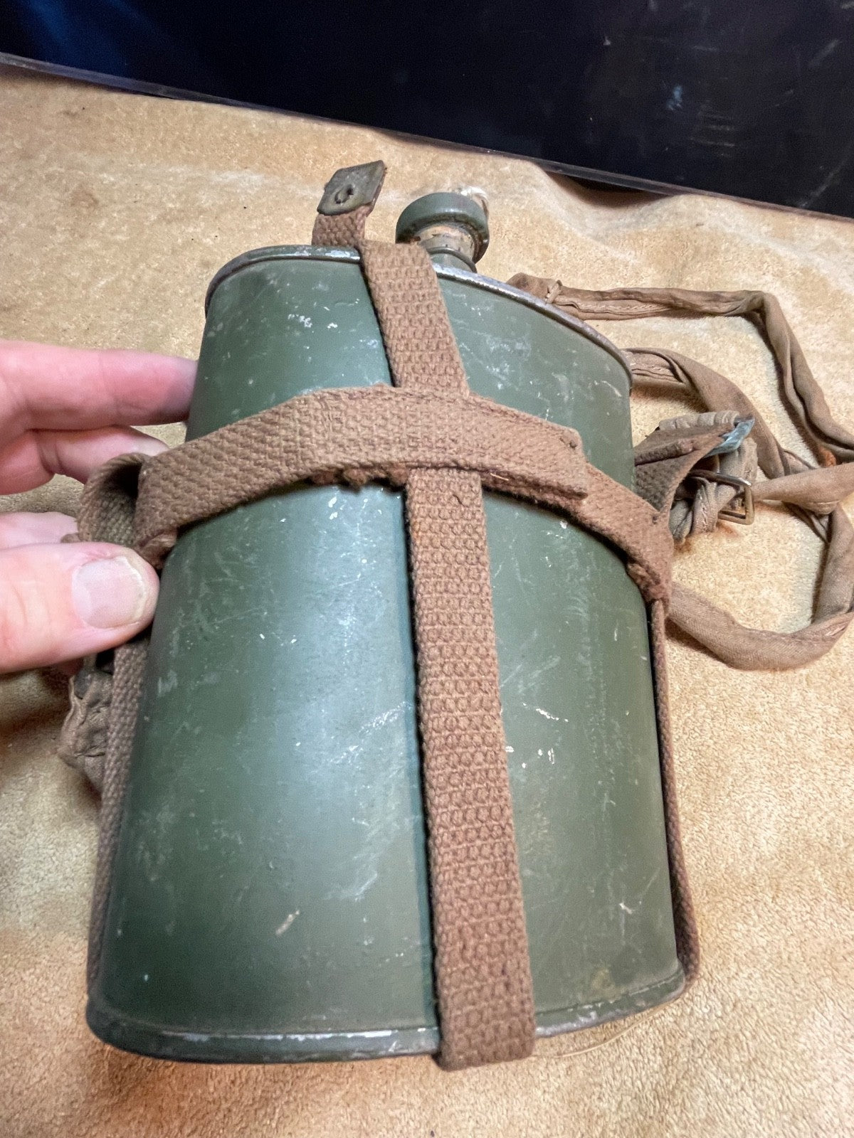 Original British Army Home Guard Pattern Lend Lease Waterbottle - 1943 - US Made with correct pattern shoulder strap.