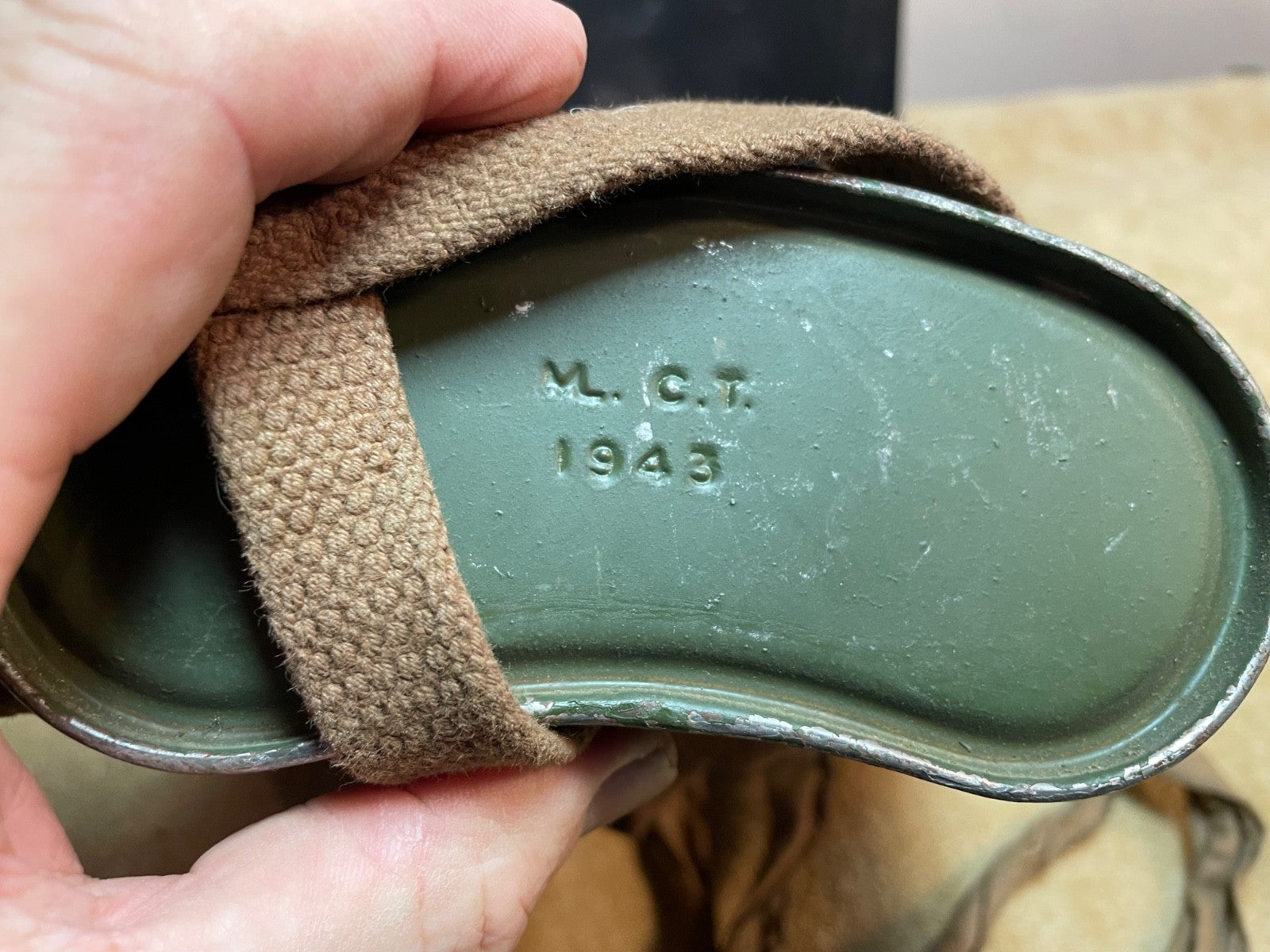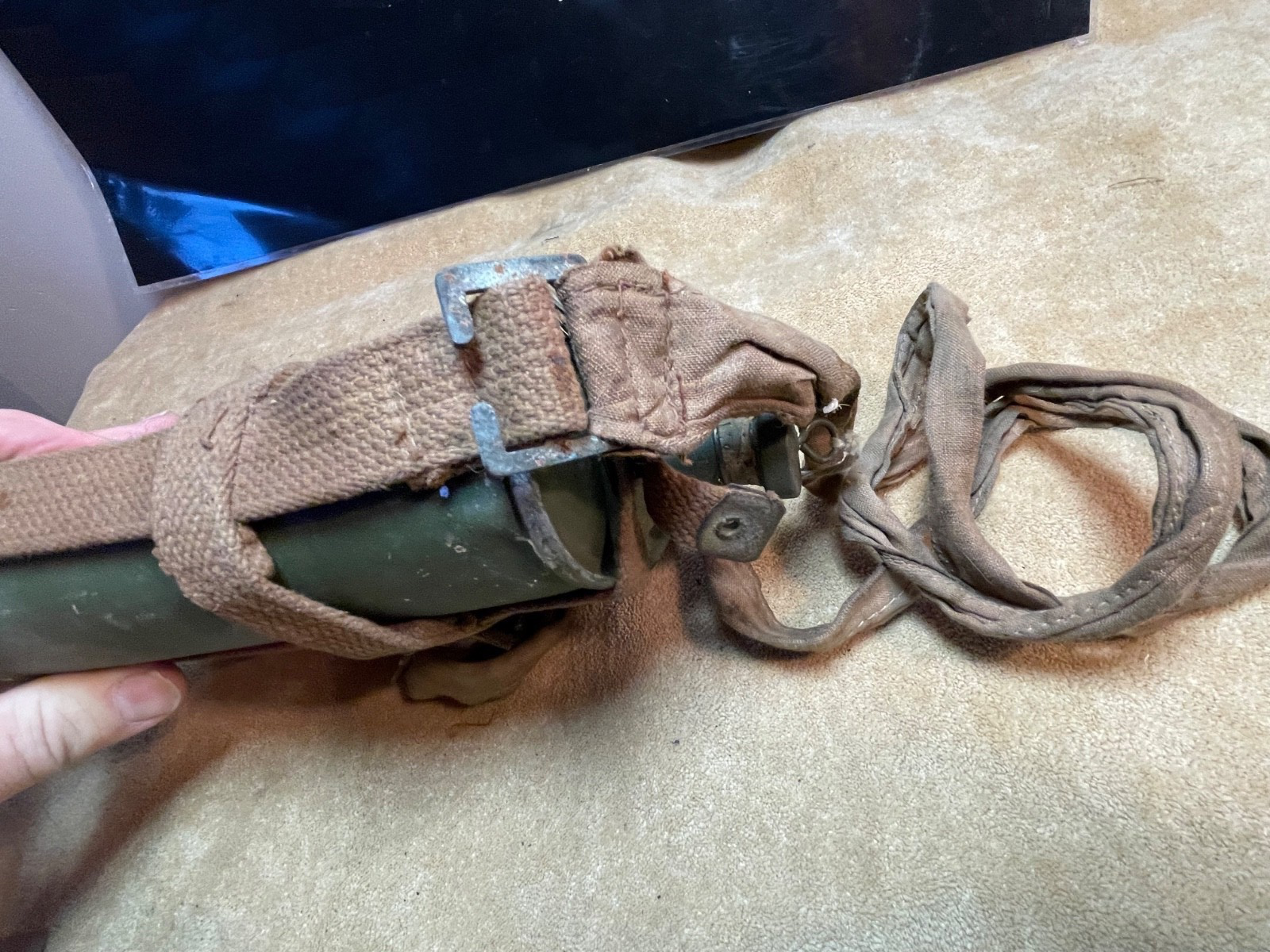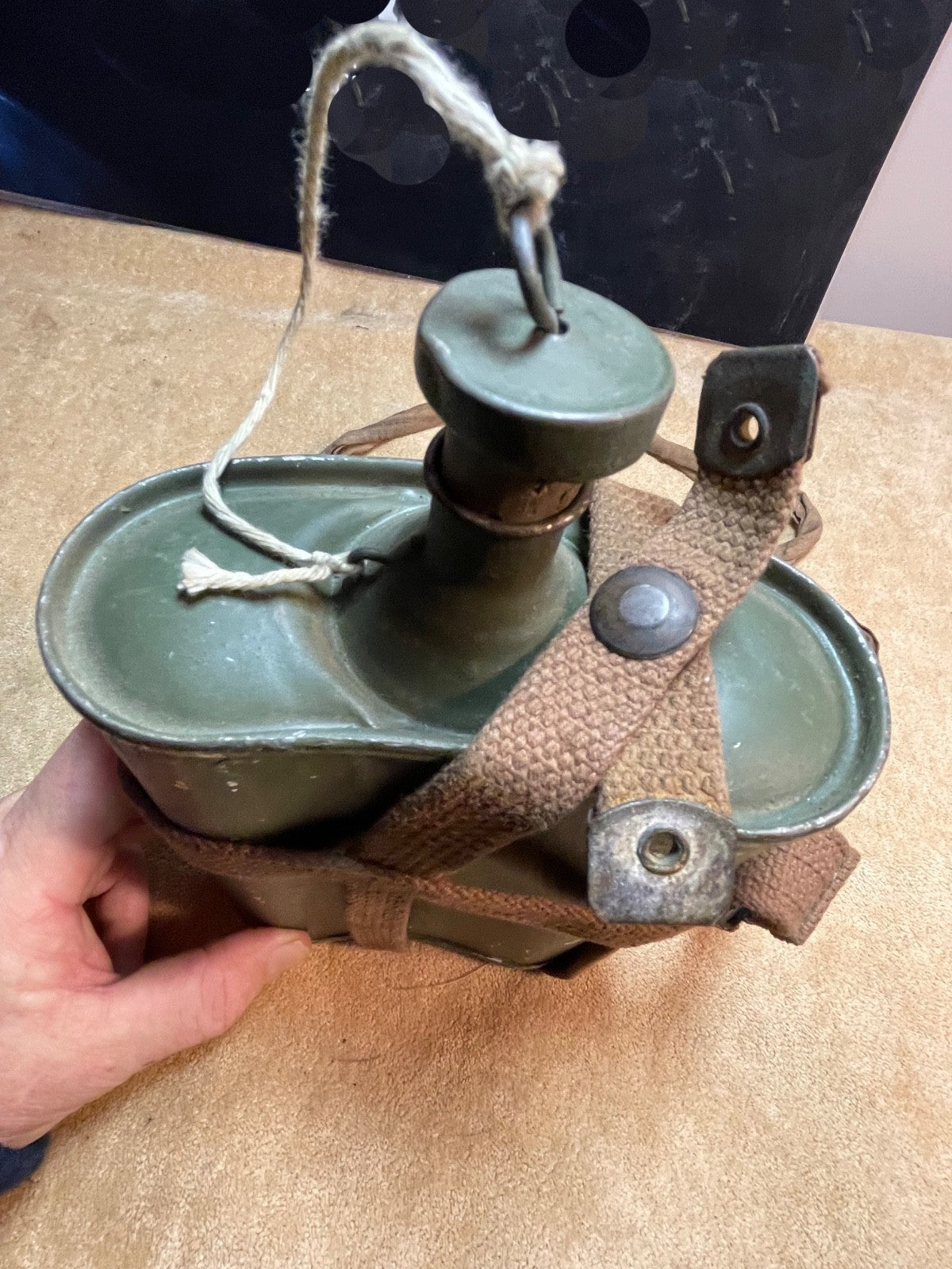 Original British Army Home Guard Pattern Lend Lease Waterbottle - 1943 - US Made with correct pattern shoulder strap.