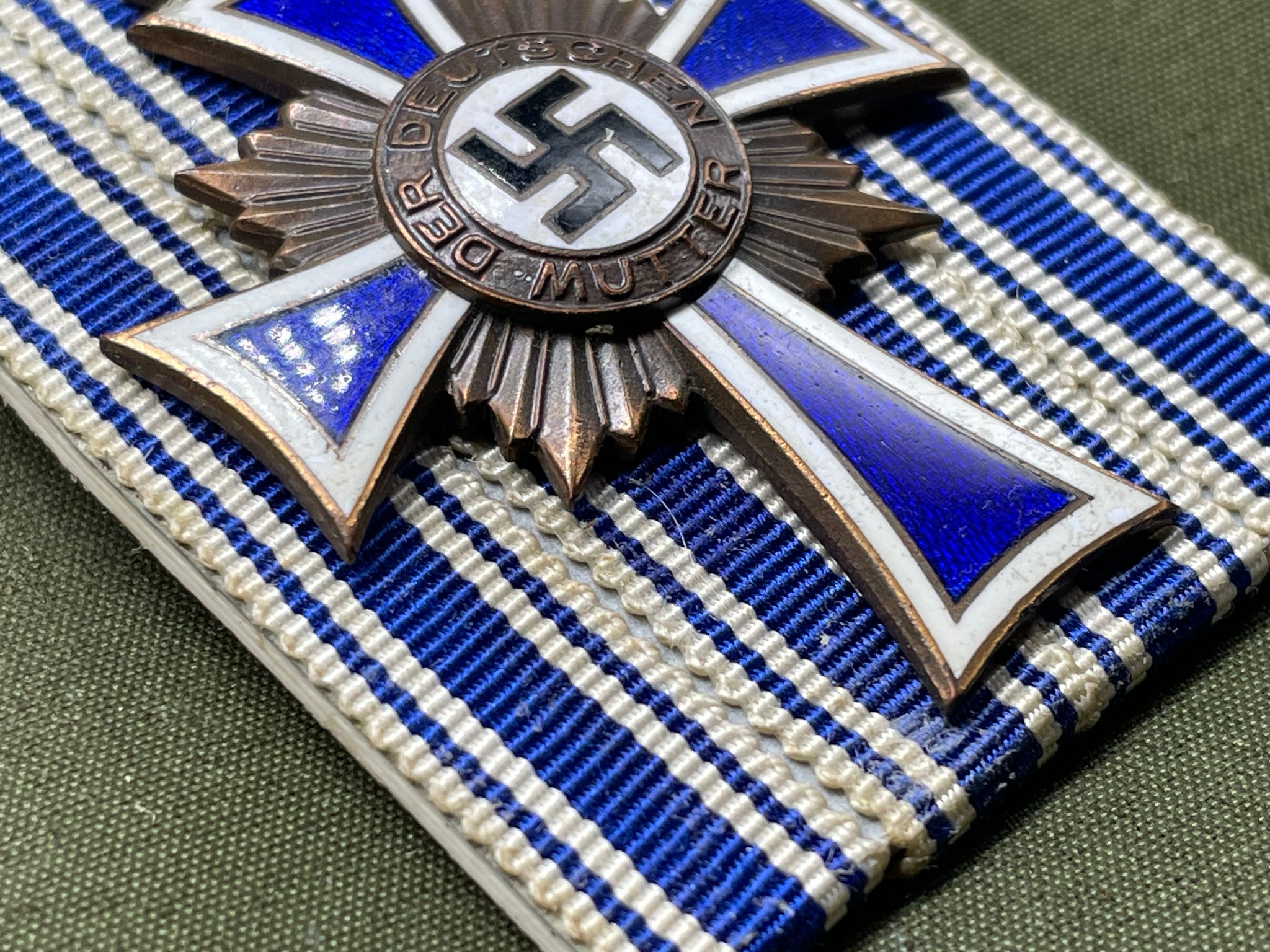 Original Third Reich Mother's Cross in Bronze - Court mounted by a collector for display.