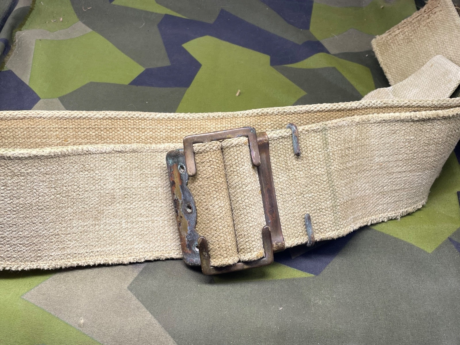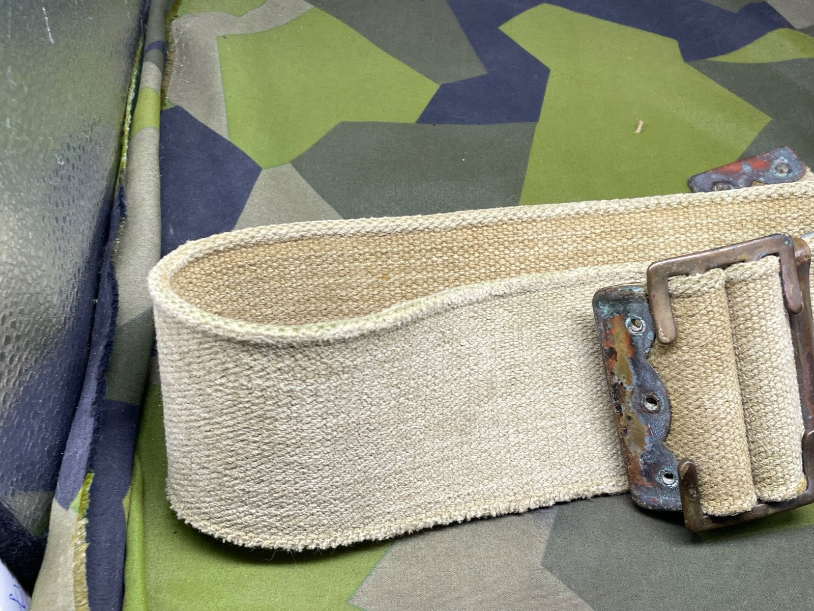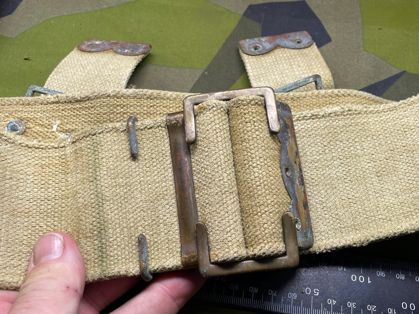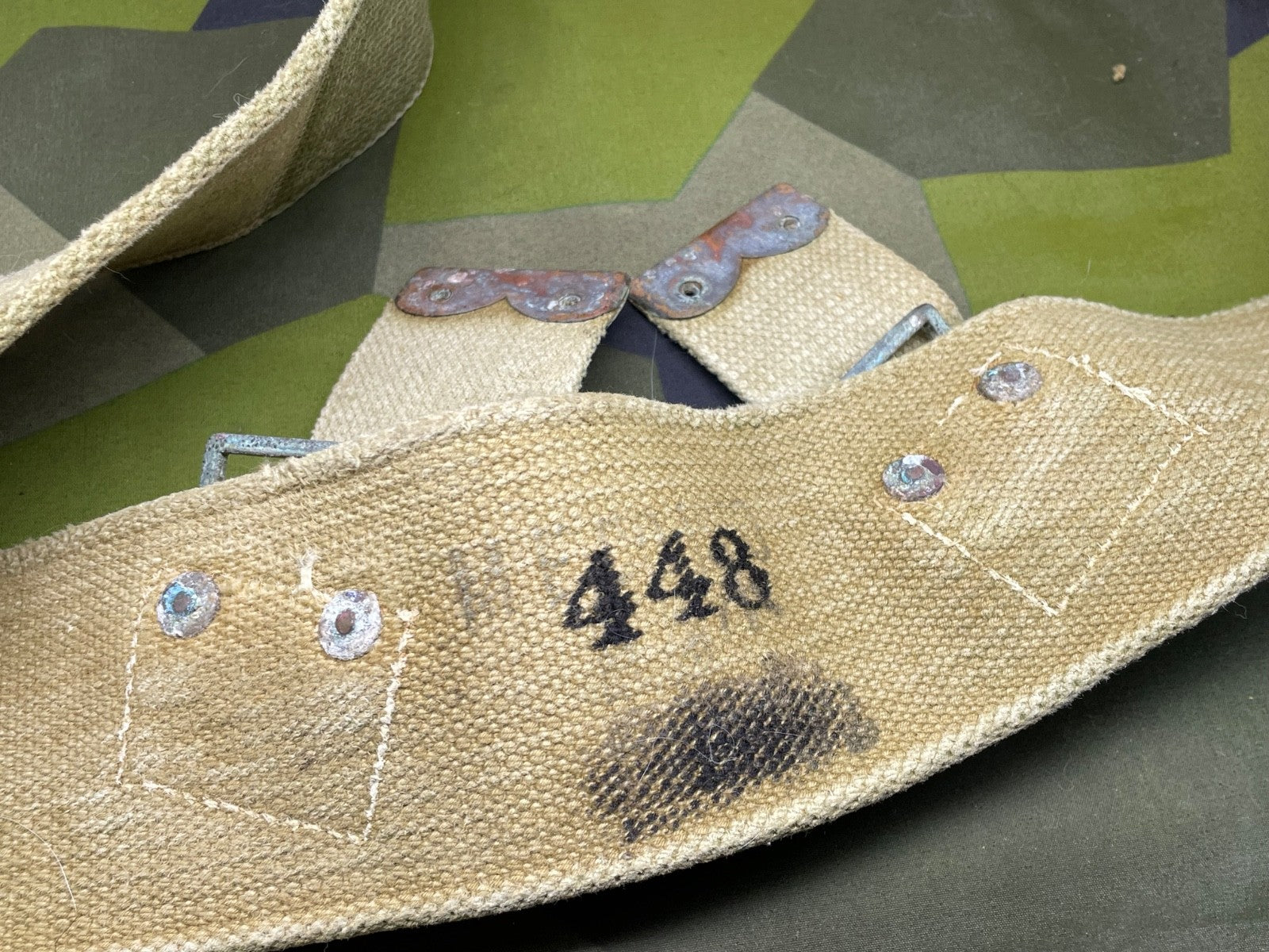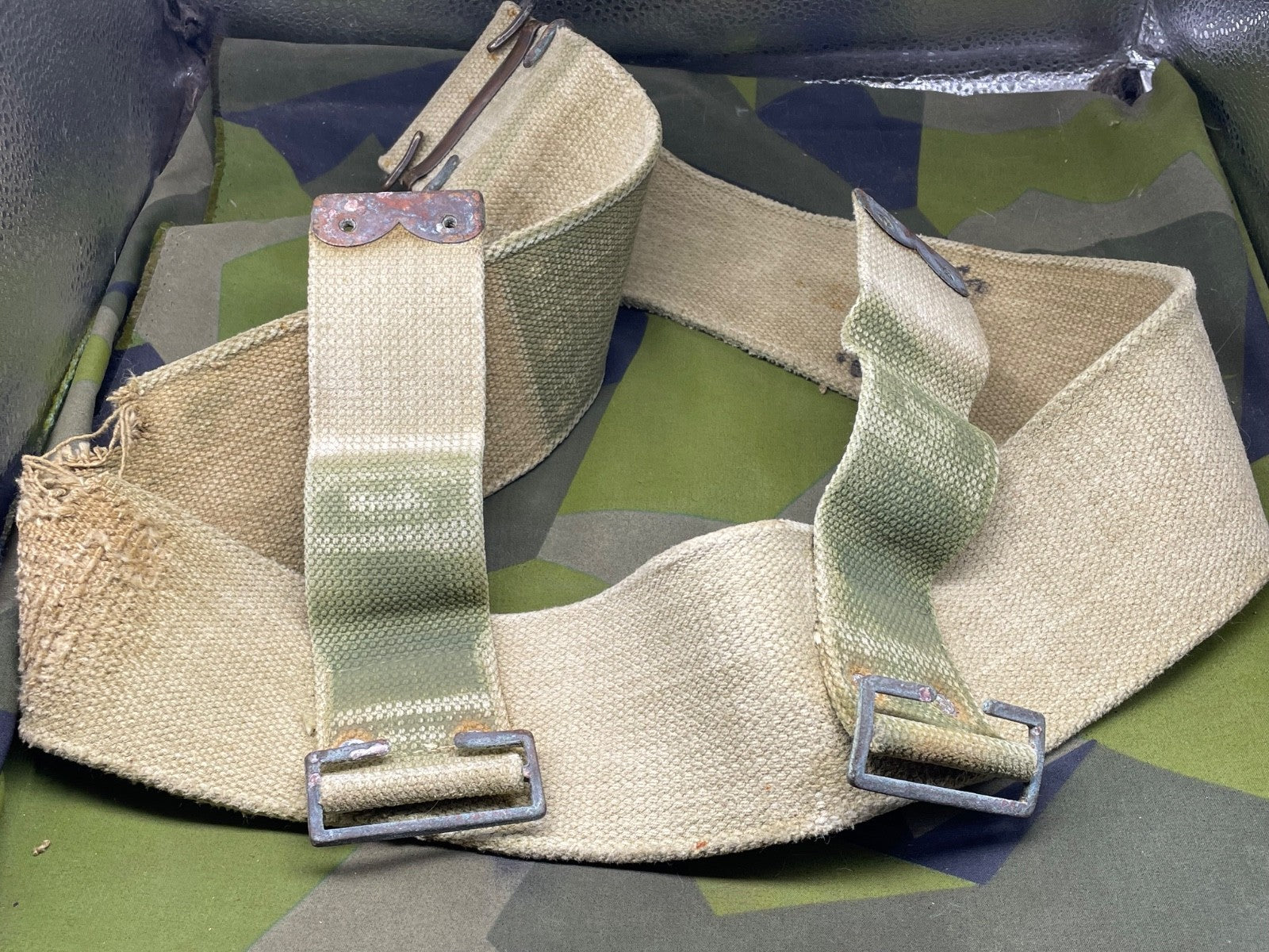 It has a lot of wear in one particular spot - probably from equipment rubbing against it. It could easily be hidden by an entrenching tool cover or a frog etc. It is priced accordingly.