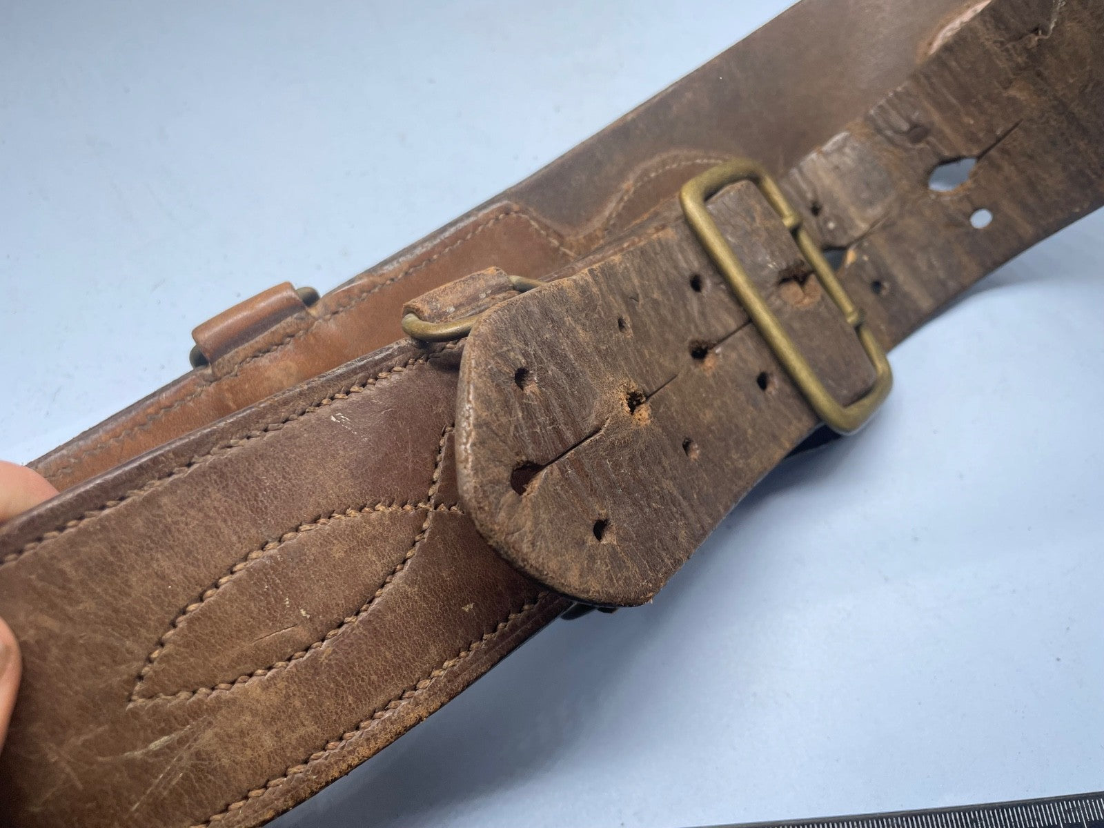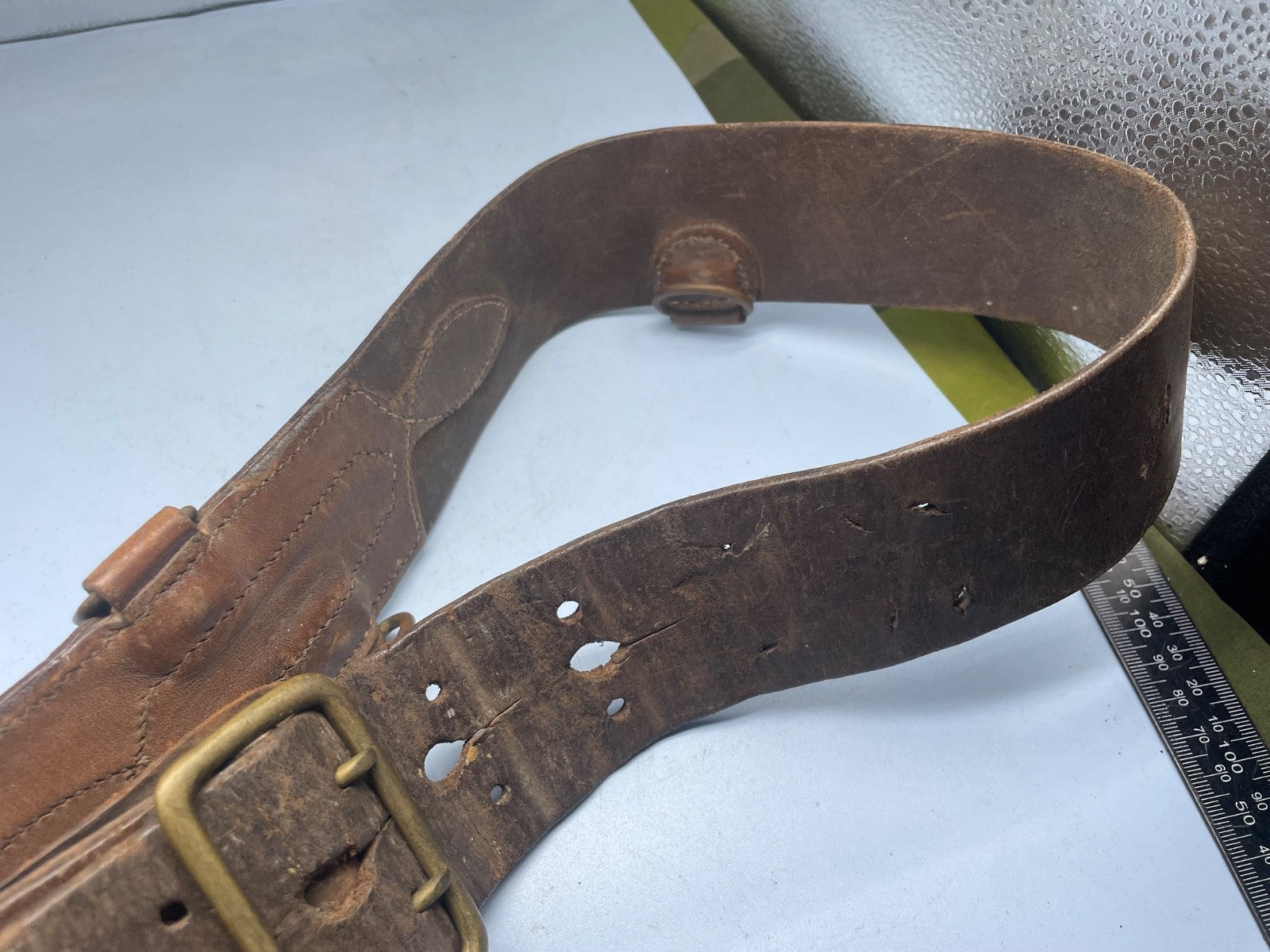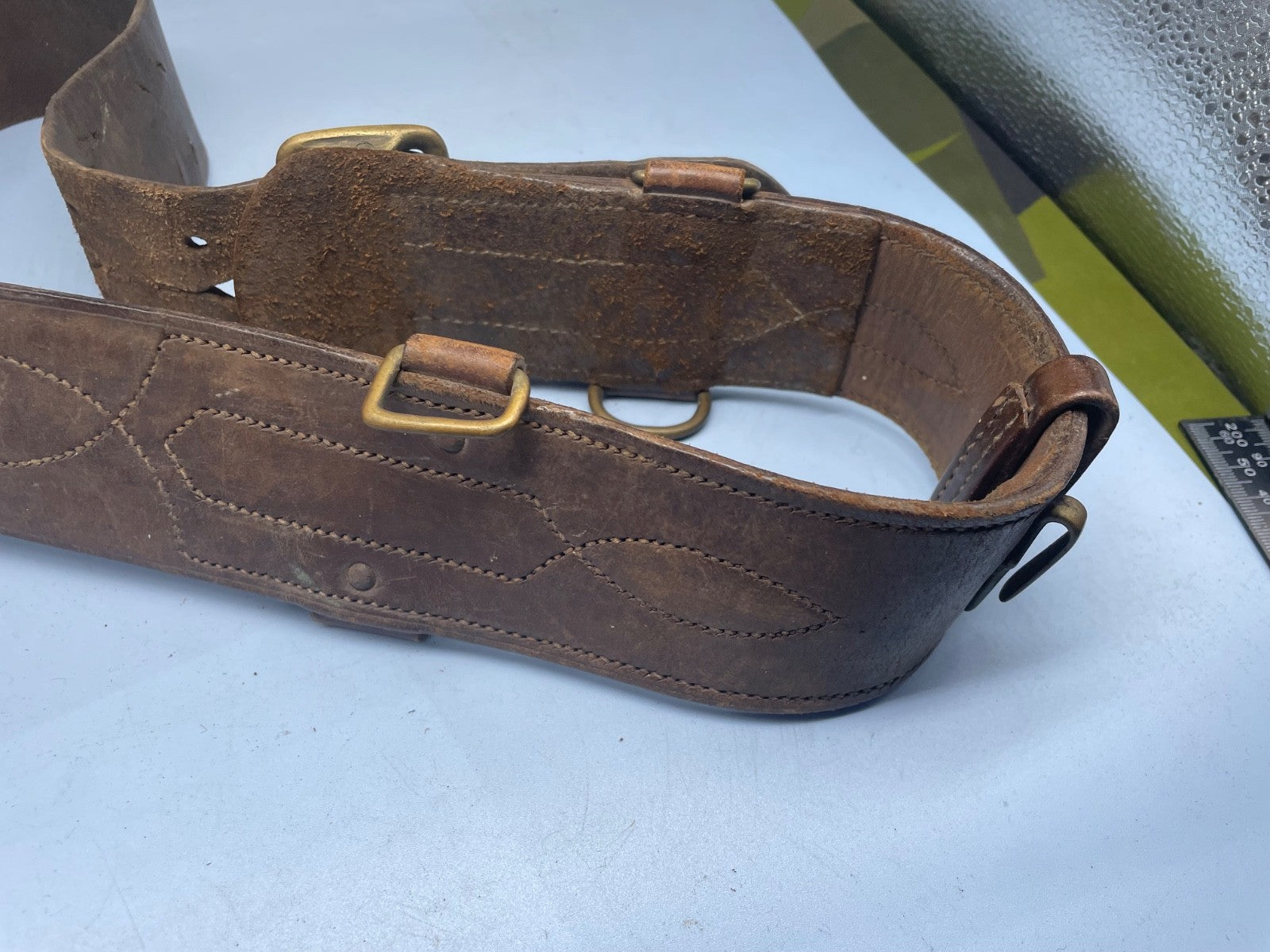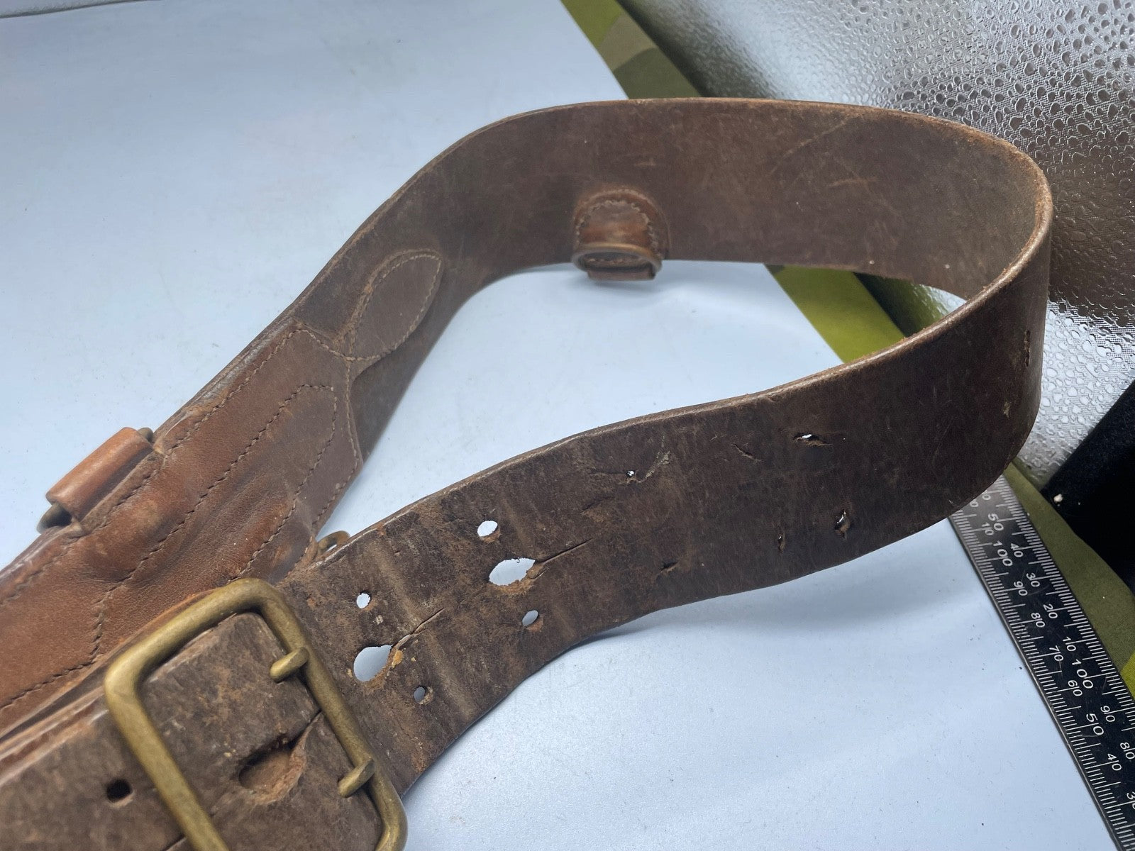 Original WW1 / WW2 British Army Officer's Sam Browne Leather Belt 35" Waist approx.