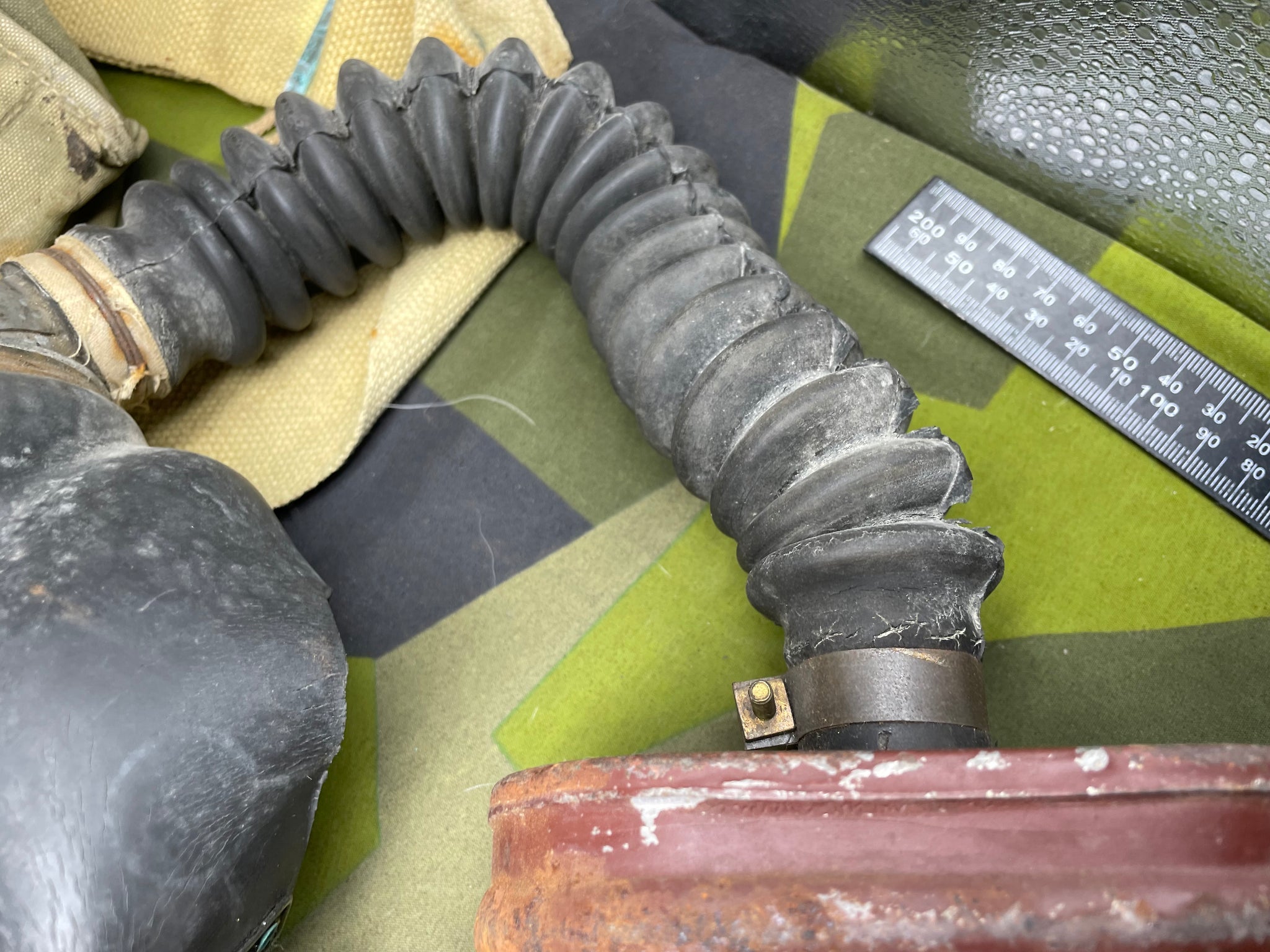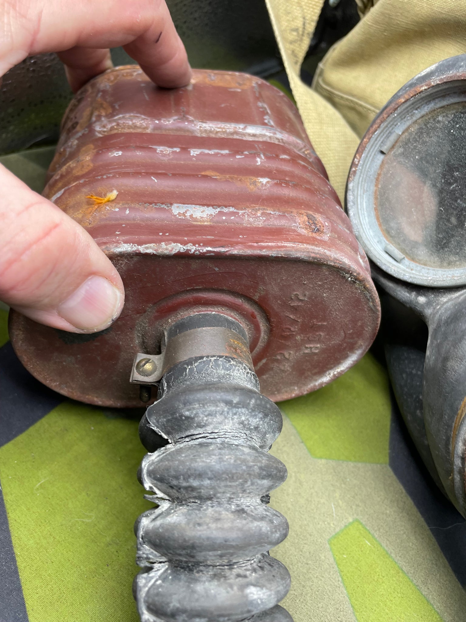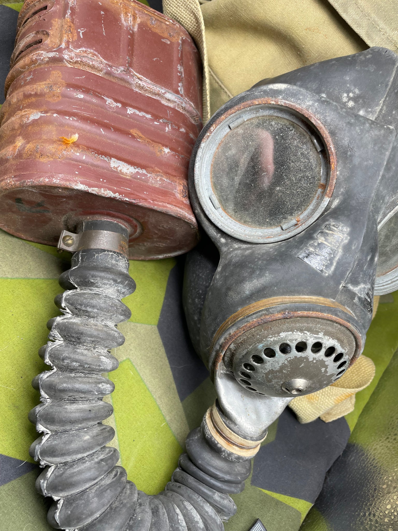 Original WW2 British Army GSR General Service Respirator Gas Mask Set - Dated 1942. It is dusty from storage.