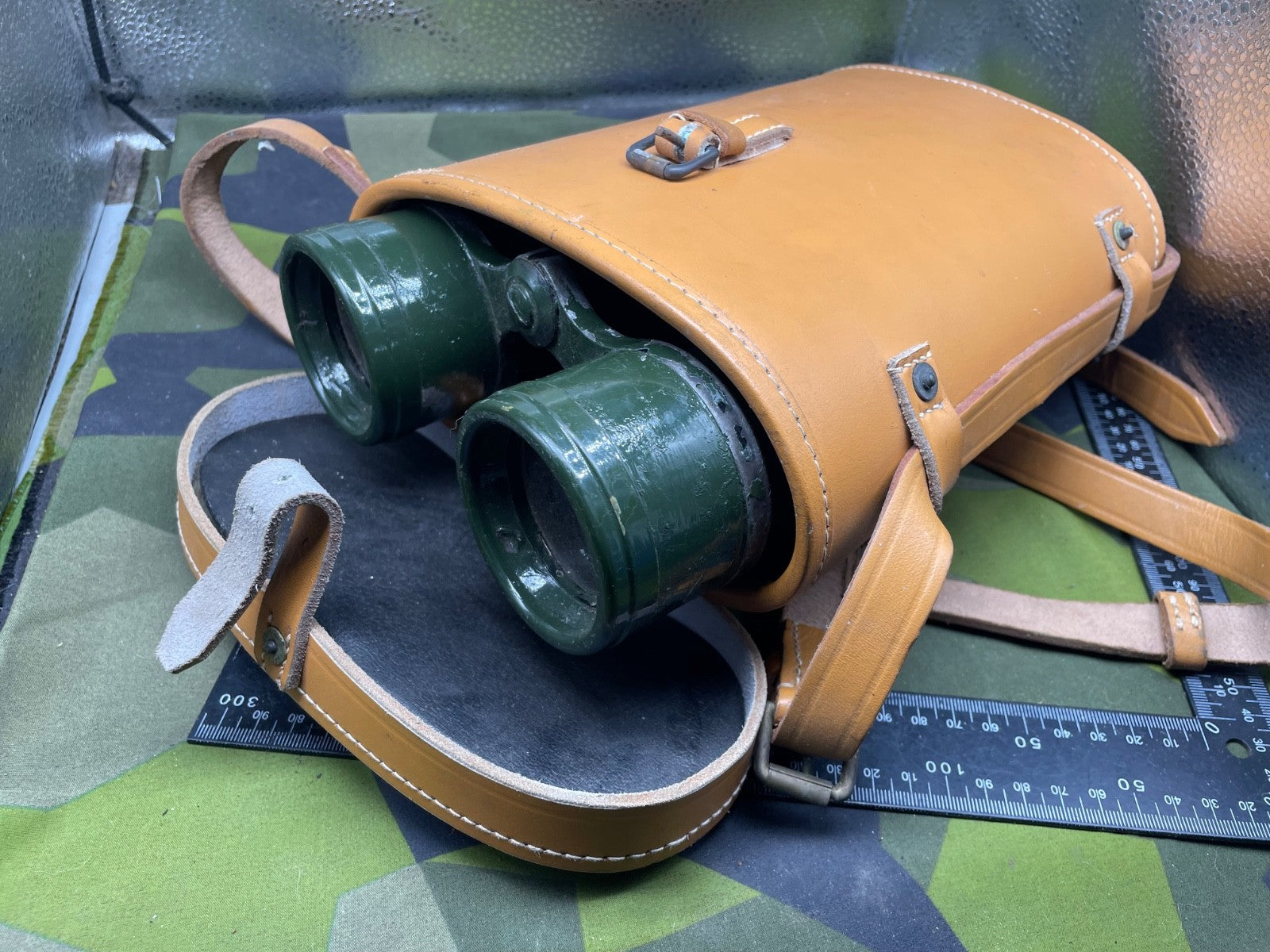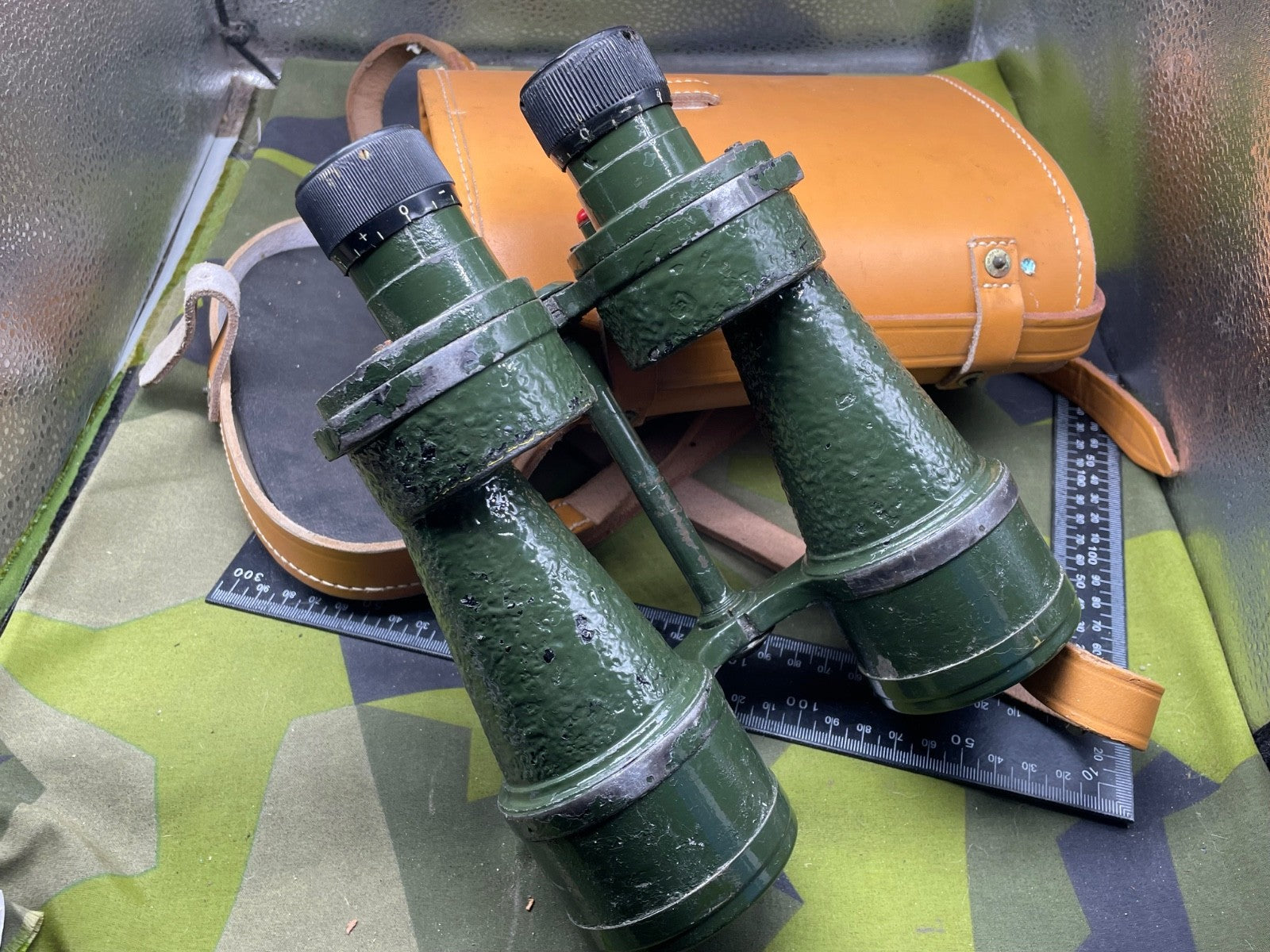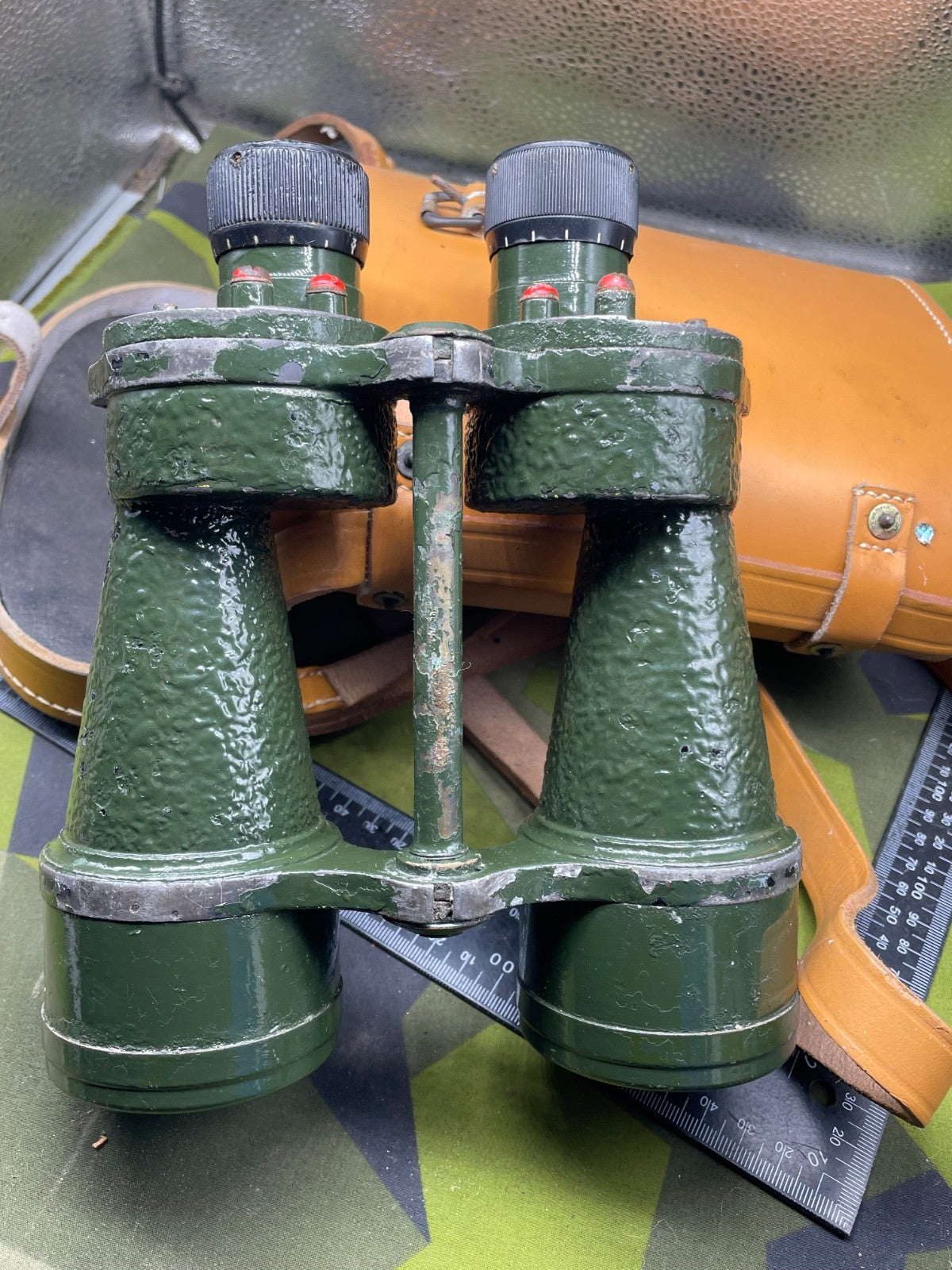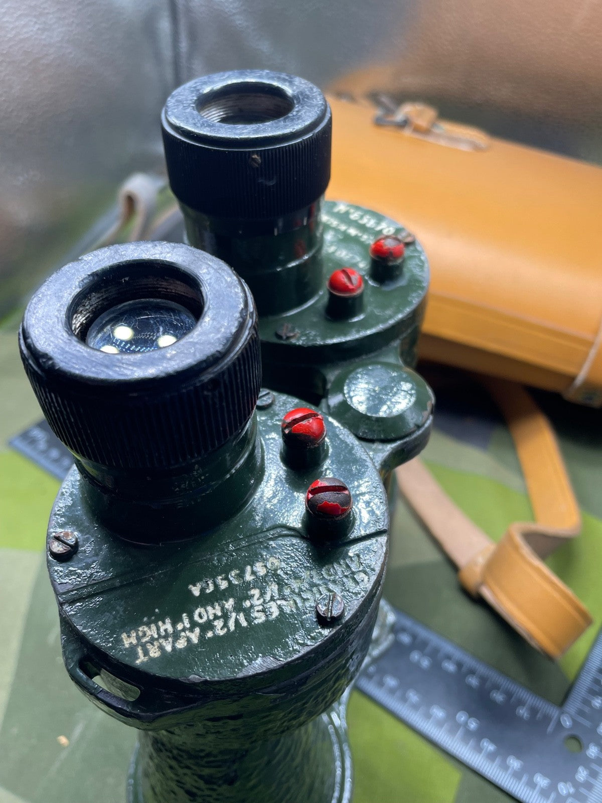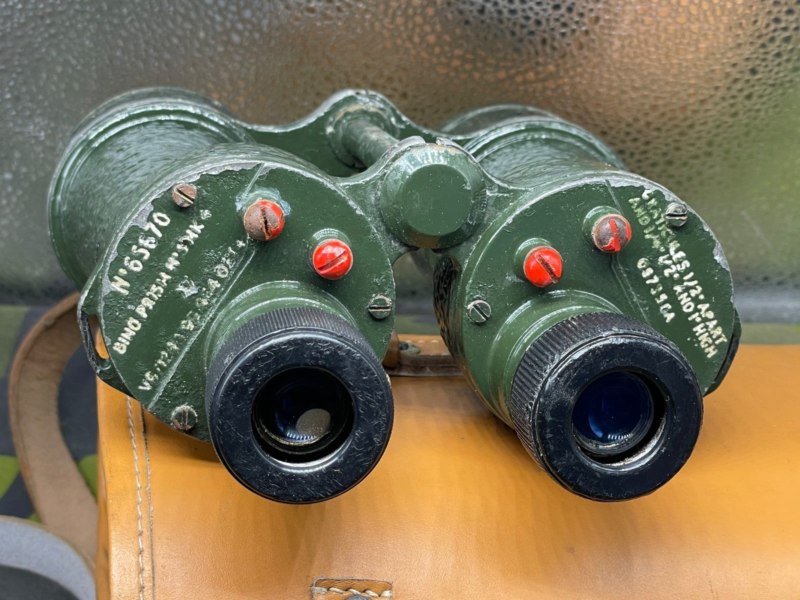 Original WW2 British Army Binoculars with Graticules in the lenses - in their original leather carrying case. They are in good condition.