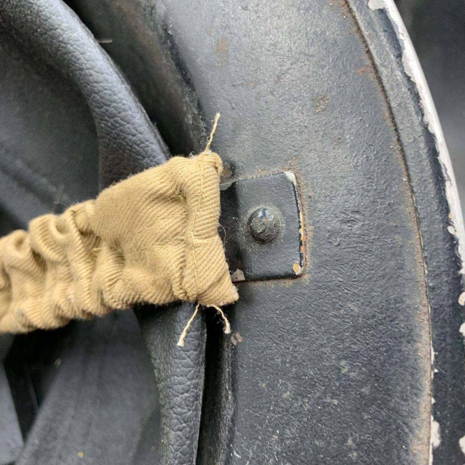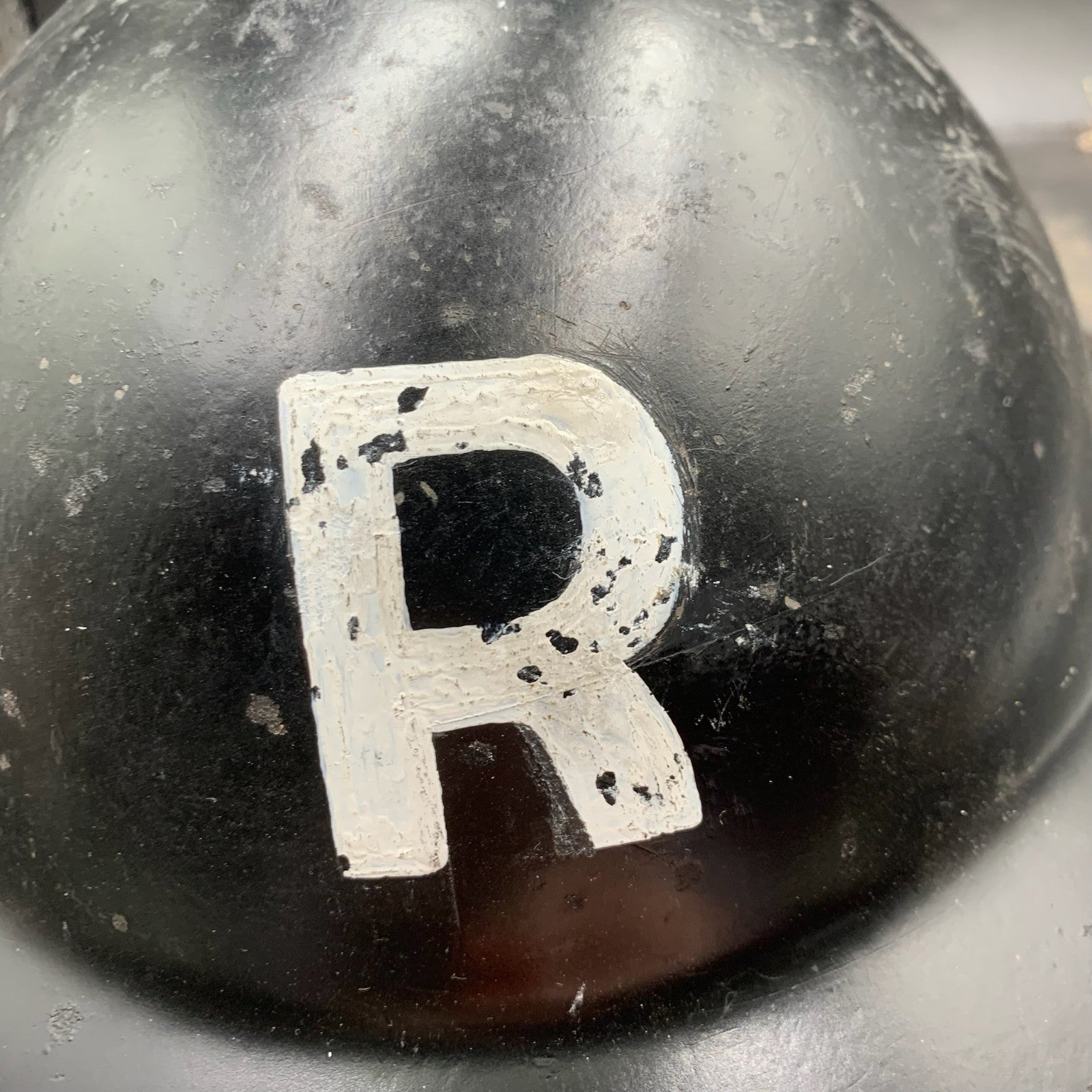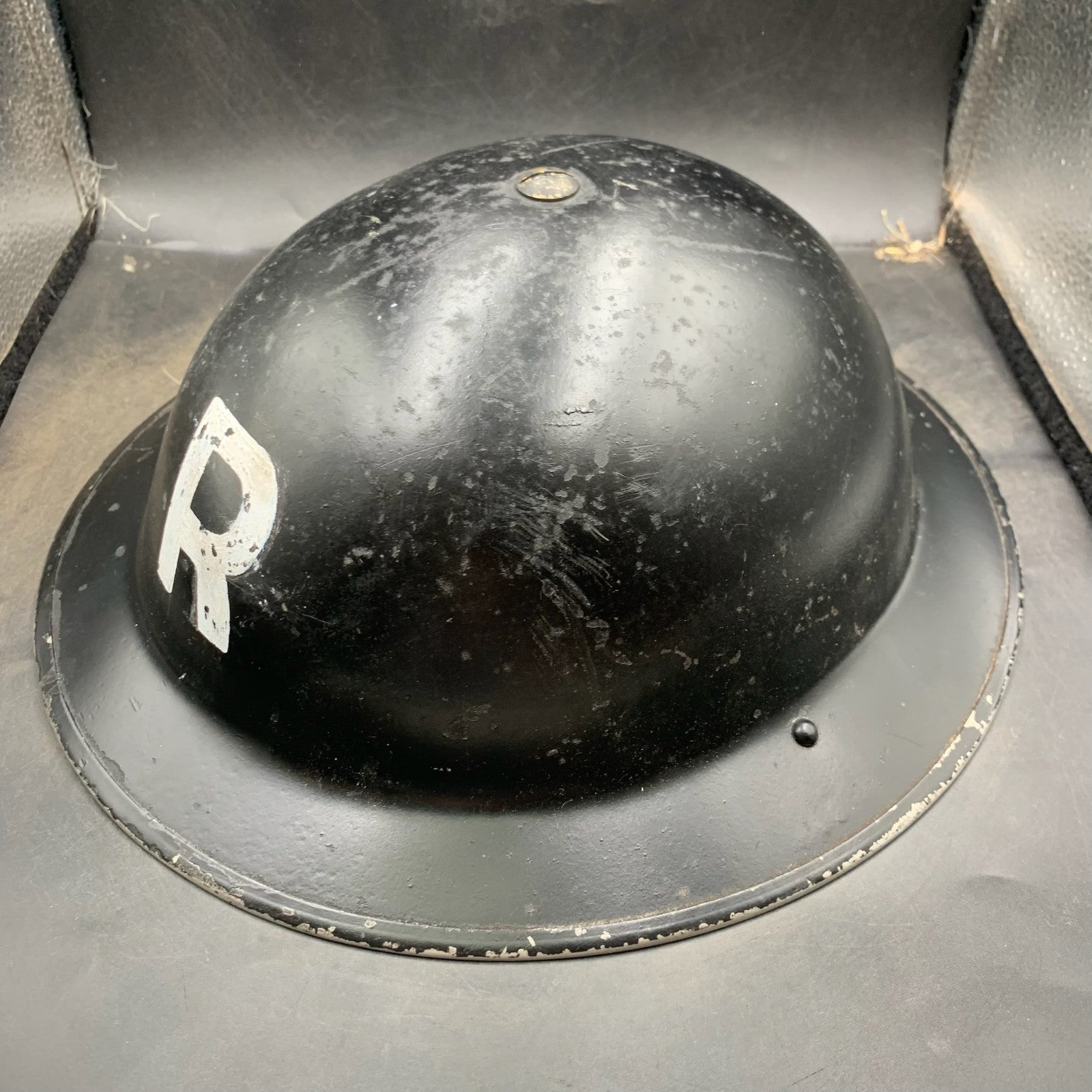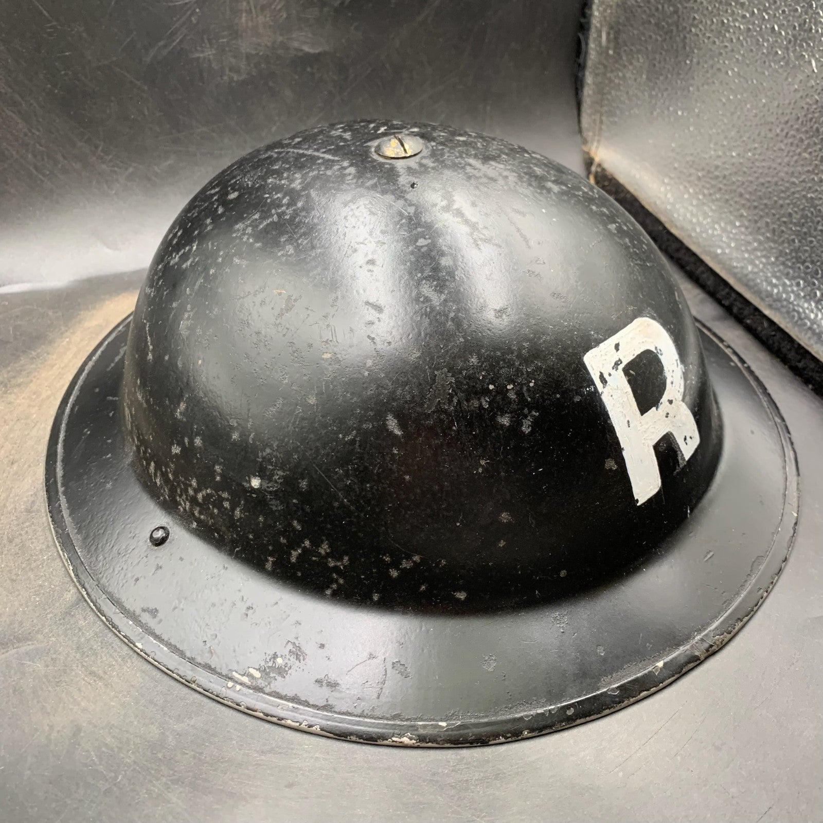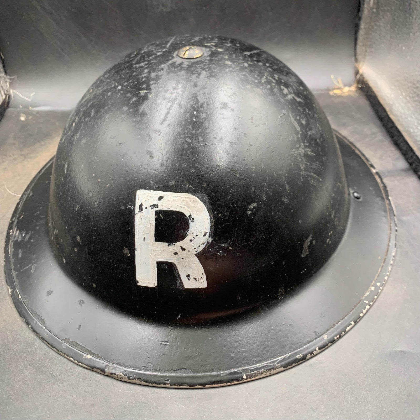 Original WW2 British Home Front Restored Rescue Helmet Complete with Liner - It has been restored and repainted with a new R added and a reproduction liner & chinstrap.
