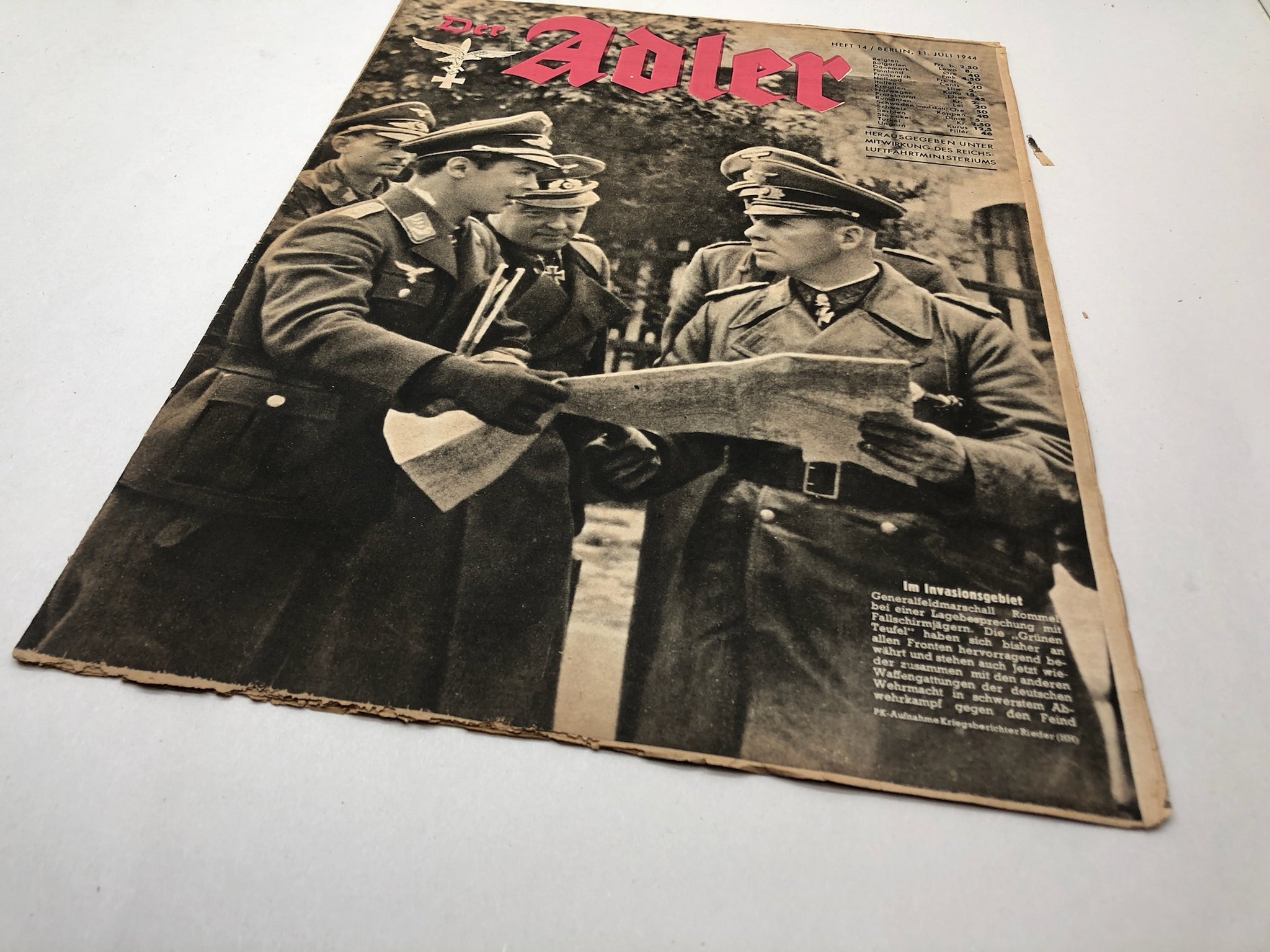 Original WW2 German Luftwaffe Der Adler Propaganda Magazine - 11th July 1944