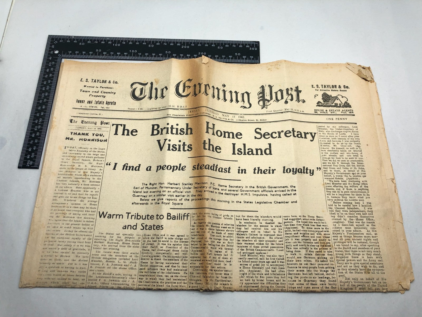 Vintage British Channel Islands Newspaper Post-Liberation - May 15, 1945