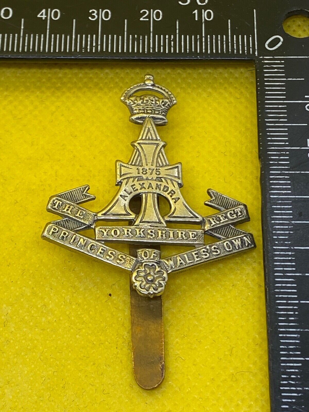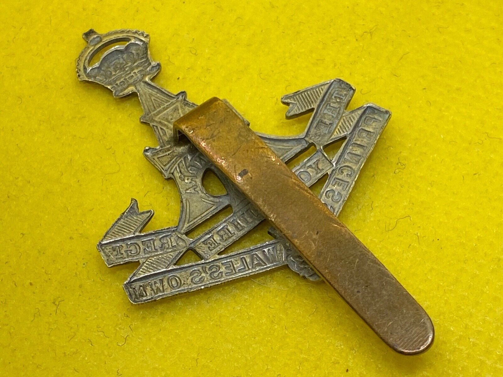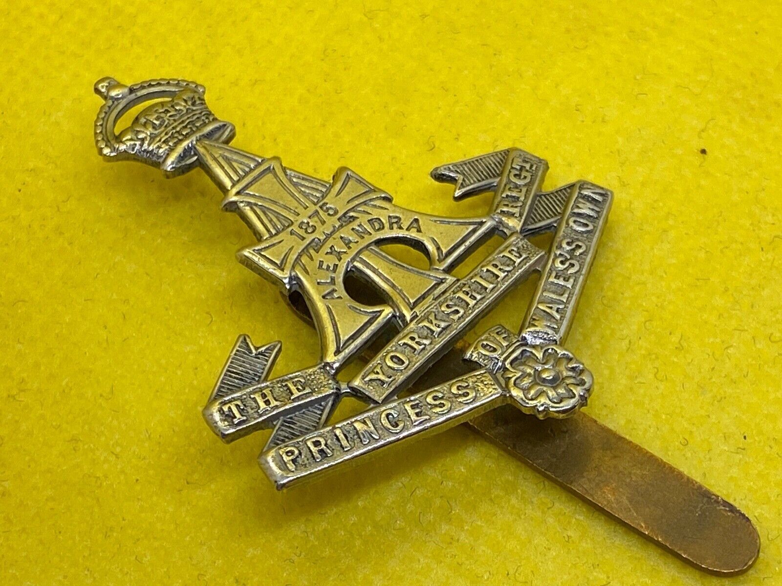 An original WW1 / WW2 British Army THE YORKSHIRE REGIMENT White Metal Cap Badge.