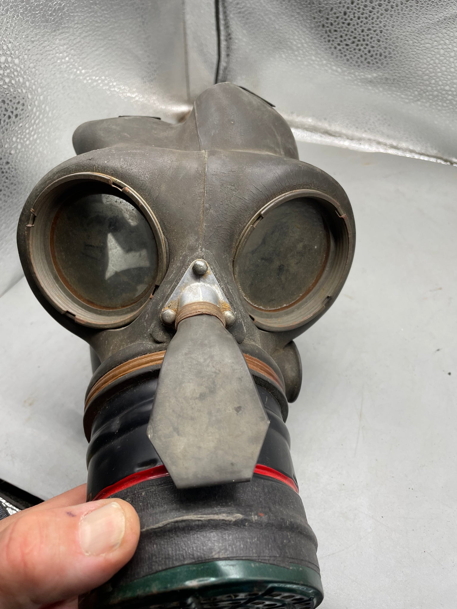 A British Army Home Front / Warden / Fire Watcher's Gas Mask. Home Office ARP 1938 dated.