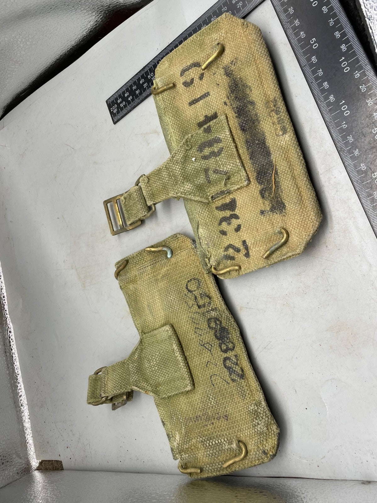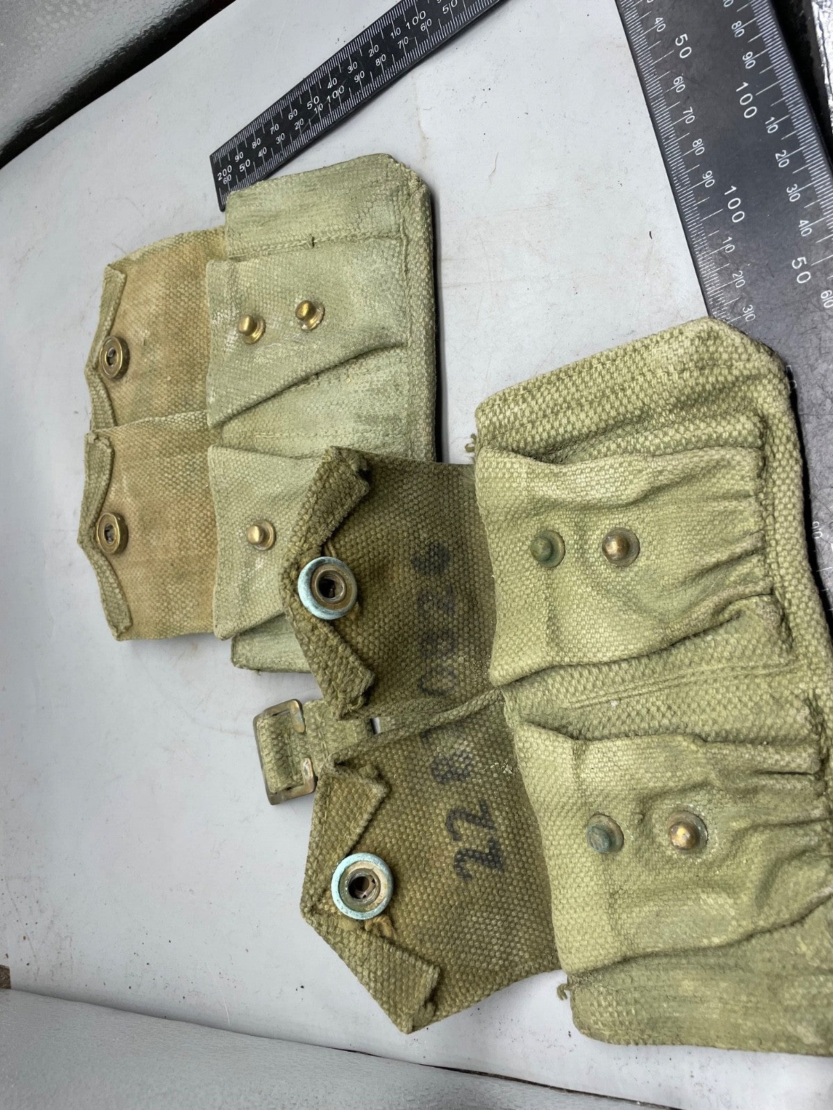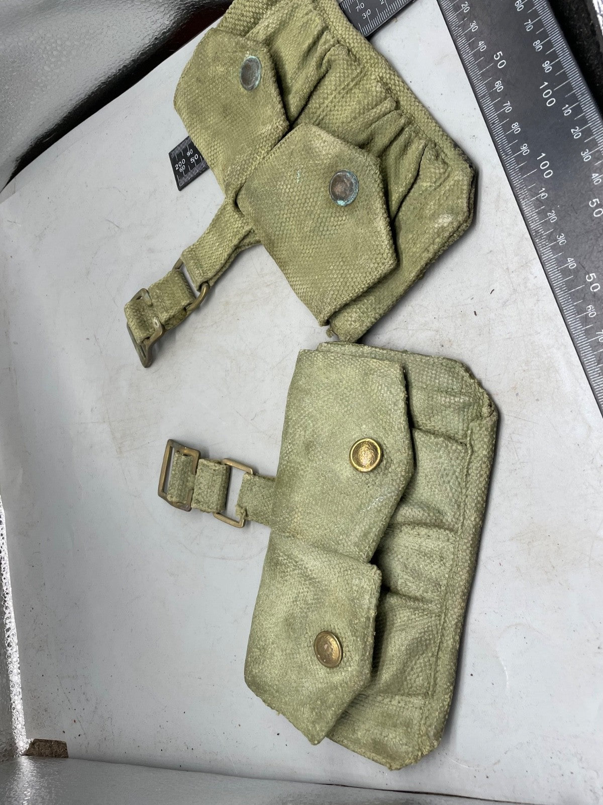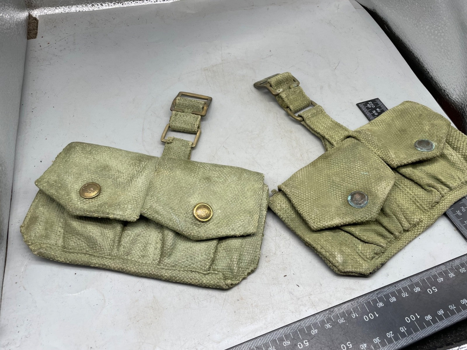 A pair of 37 Pattern webbing British Army patrol pouches.