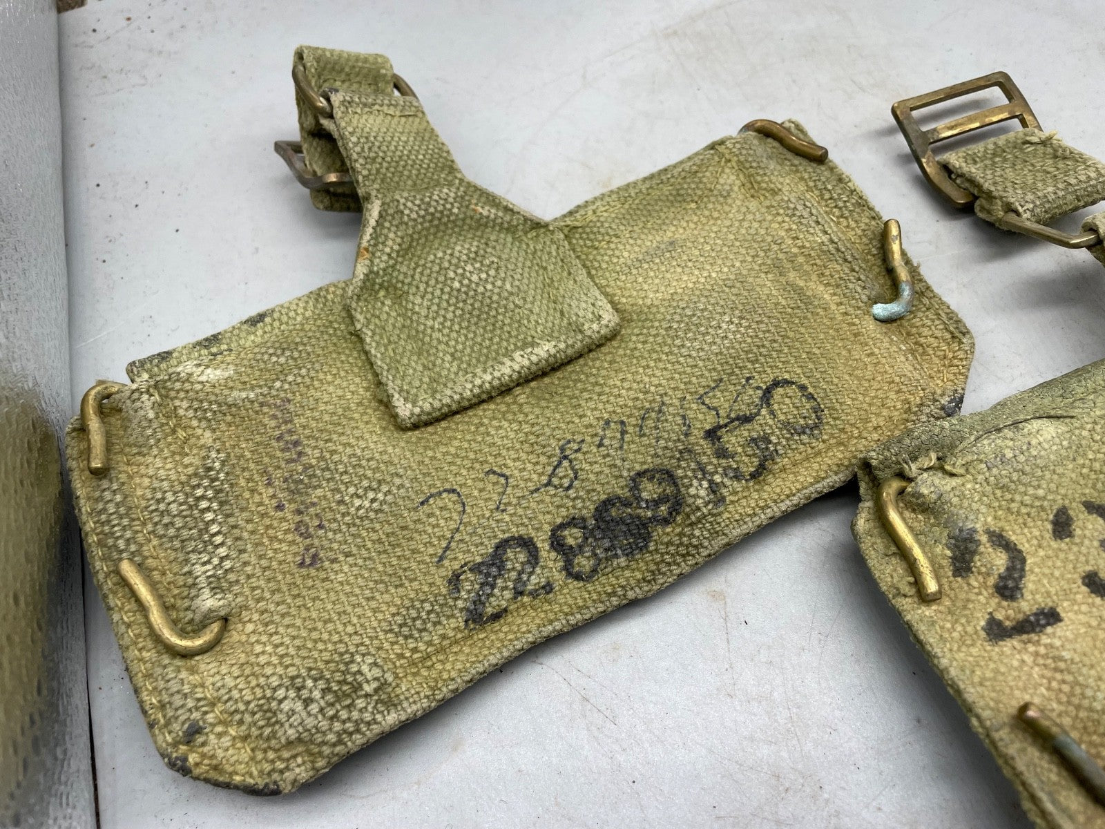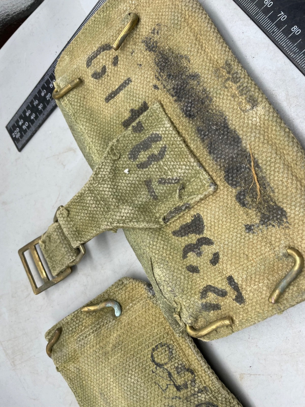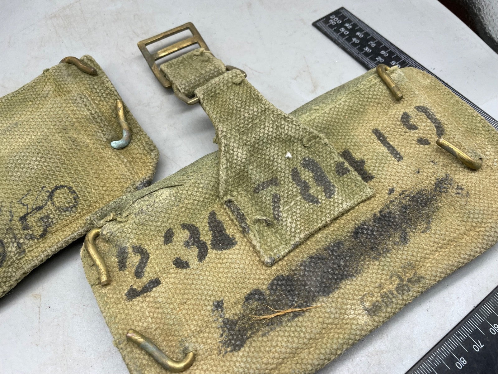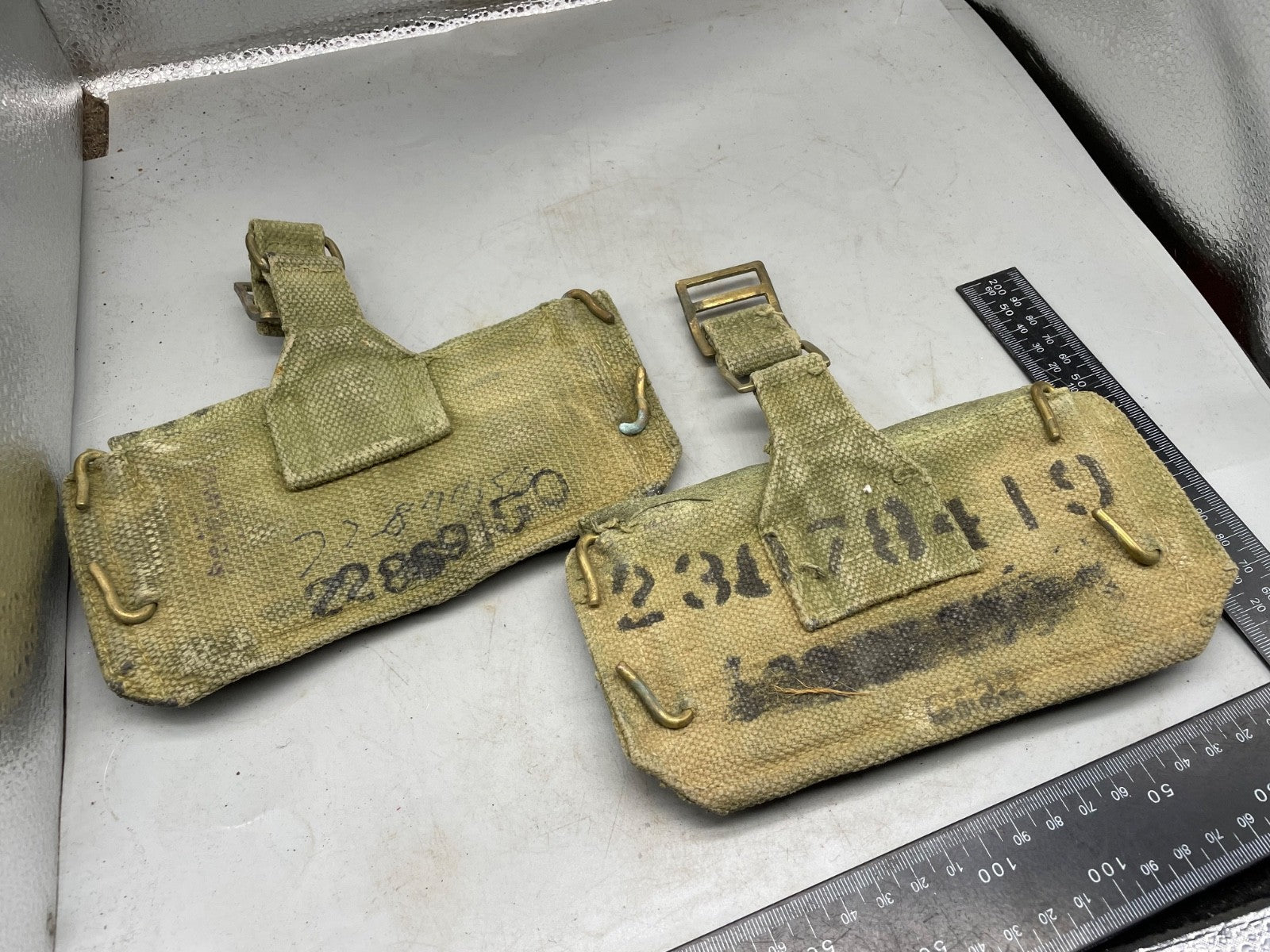 A pair of 37 Pattern webbing British Army patrol pouches.