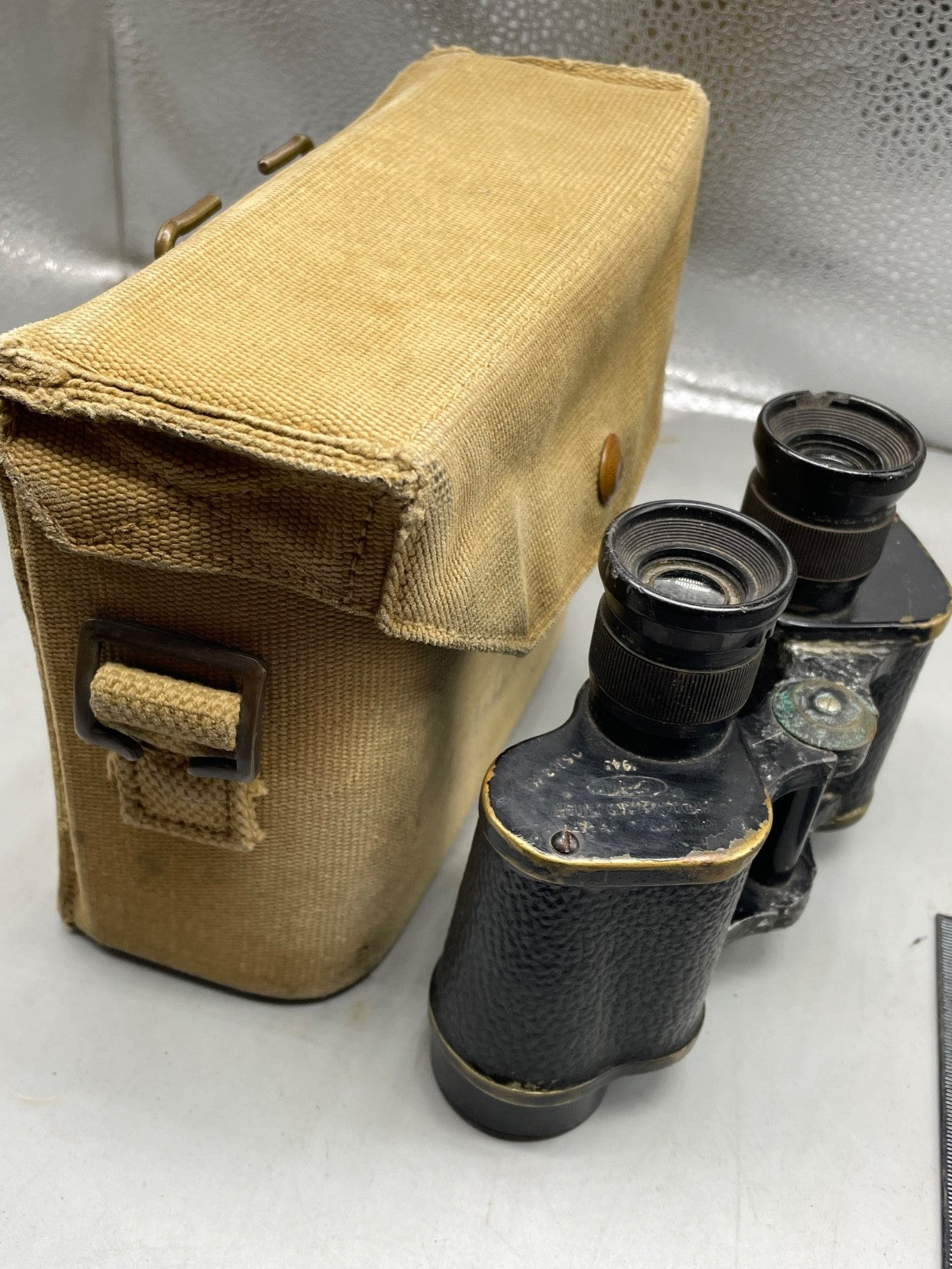 British Army Binoculars in 37 Pattern Case - WW2 Issue - 1943 Dated & Named