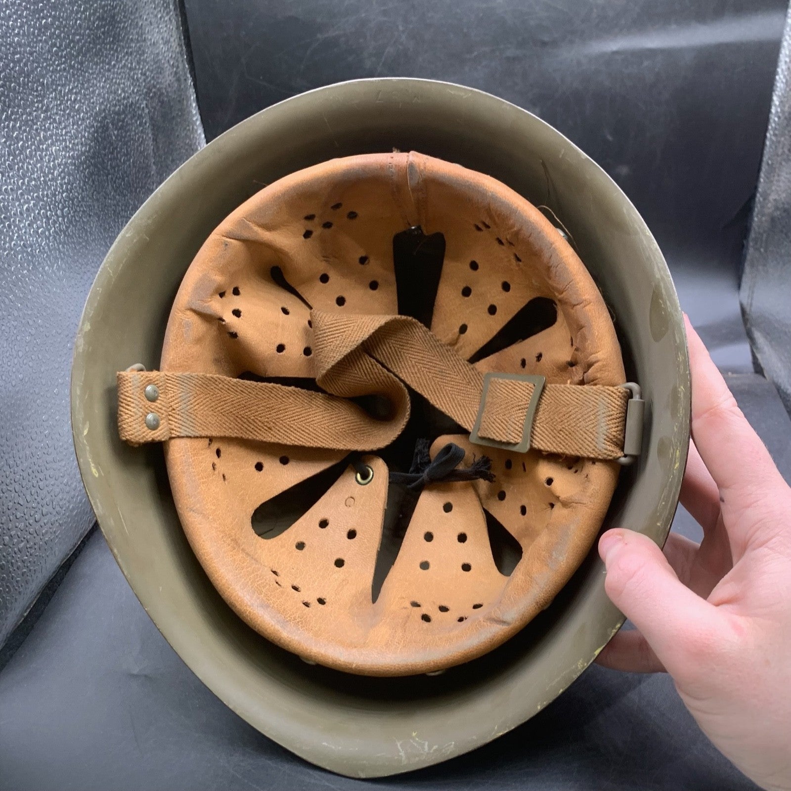 Italian Army M33 Helmet - Original with Liner & Chinstrap - An untouched original in need of a clean!