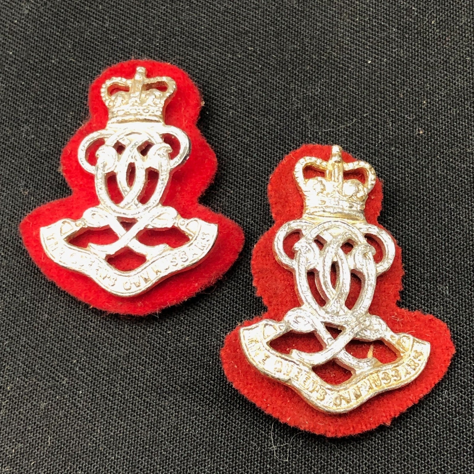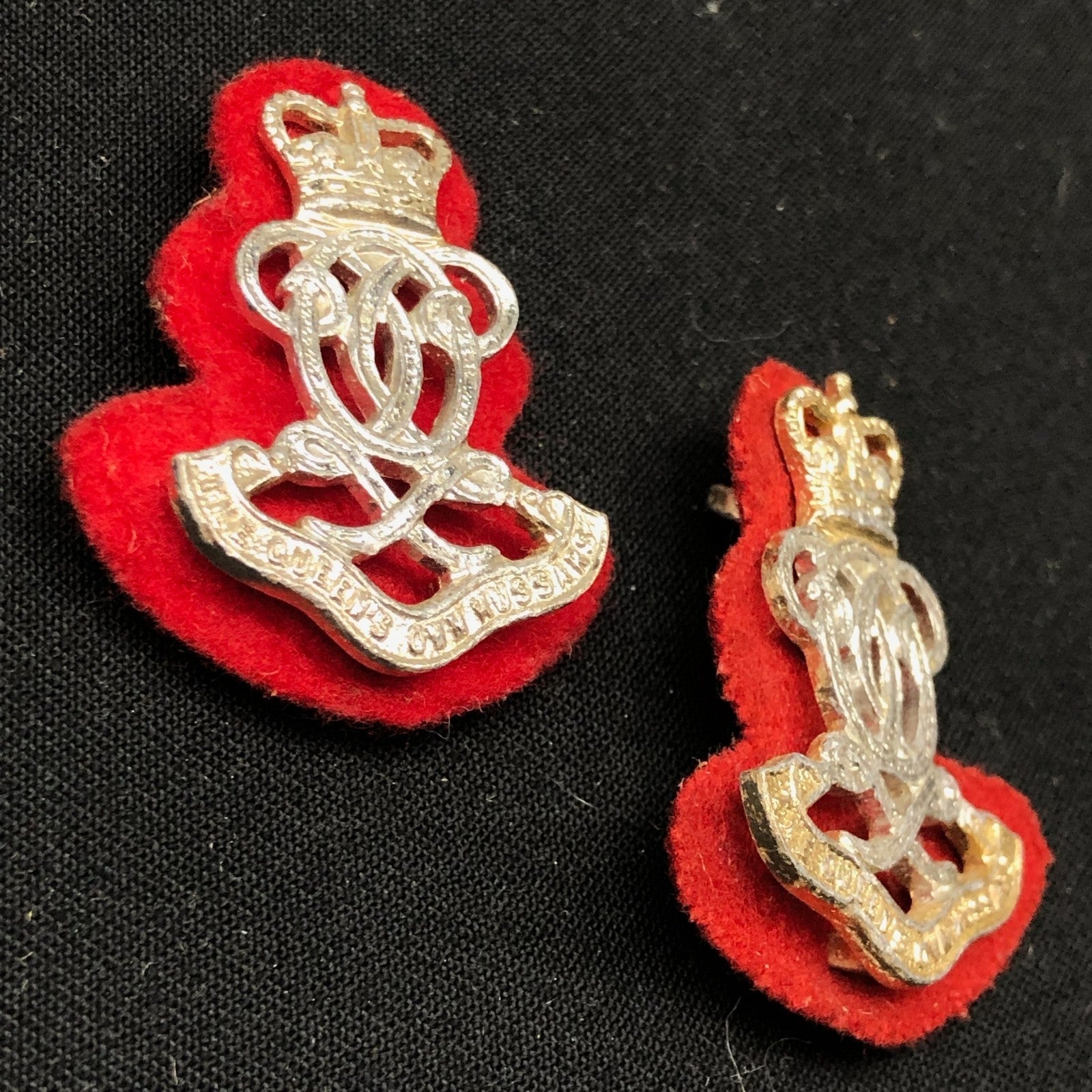 Original British Army Collar Badge Pair - Queen's Own Hussars