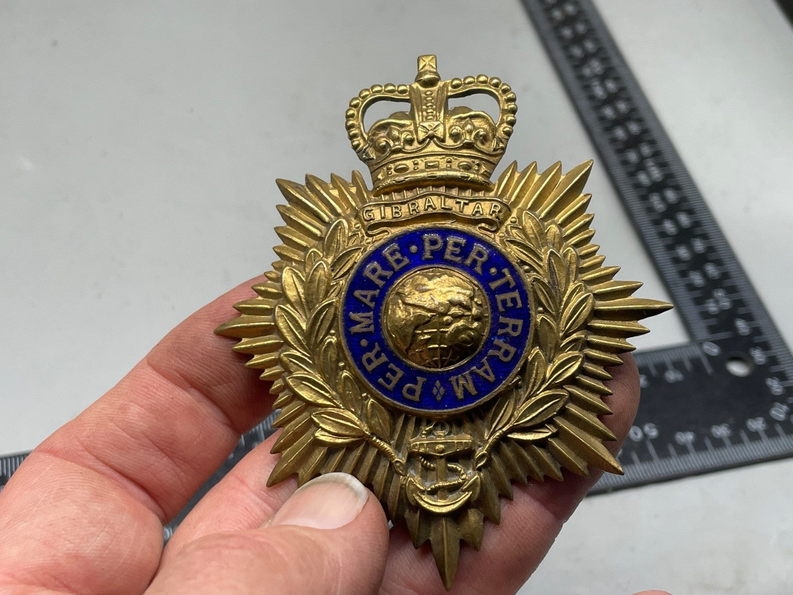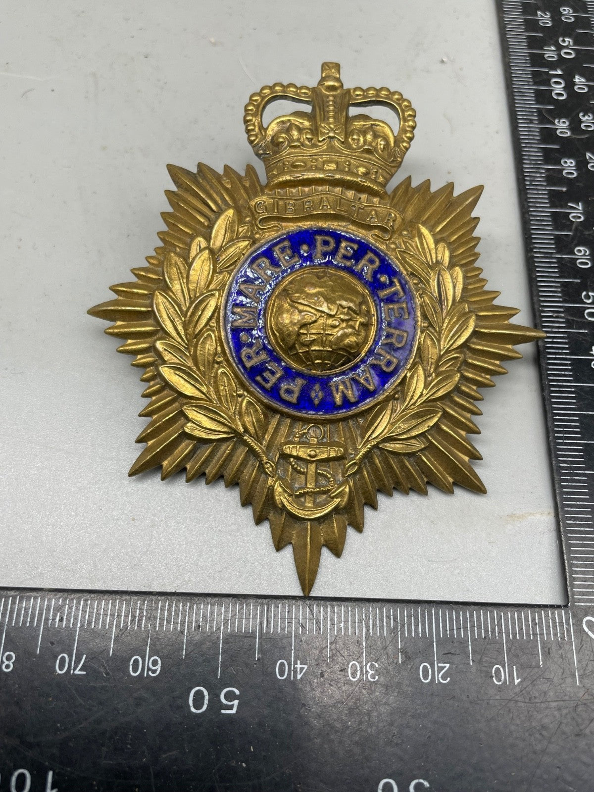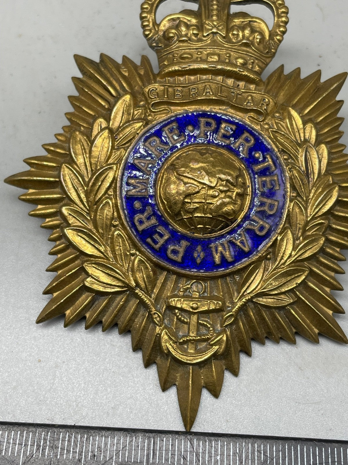 Original British Army Royal Marines Bandsman's Helmet Badge.
