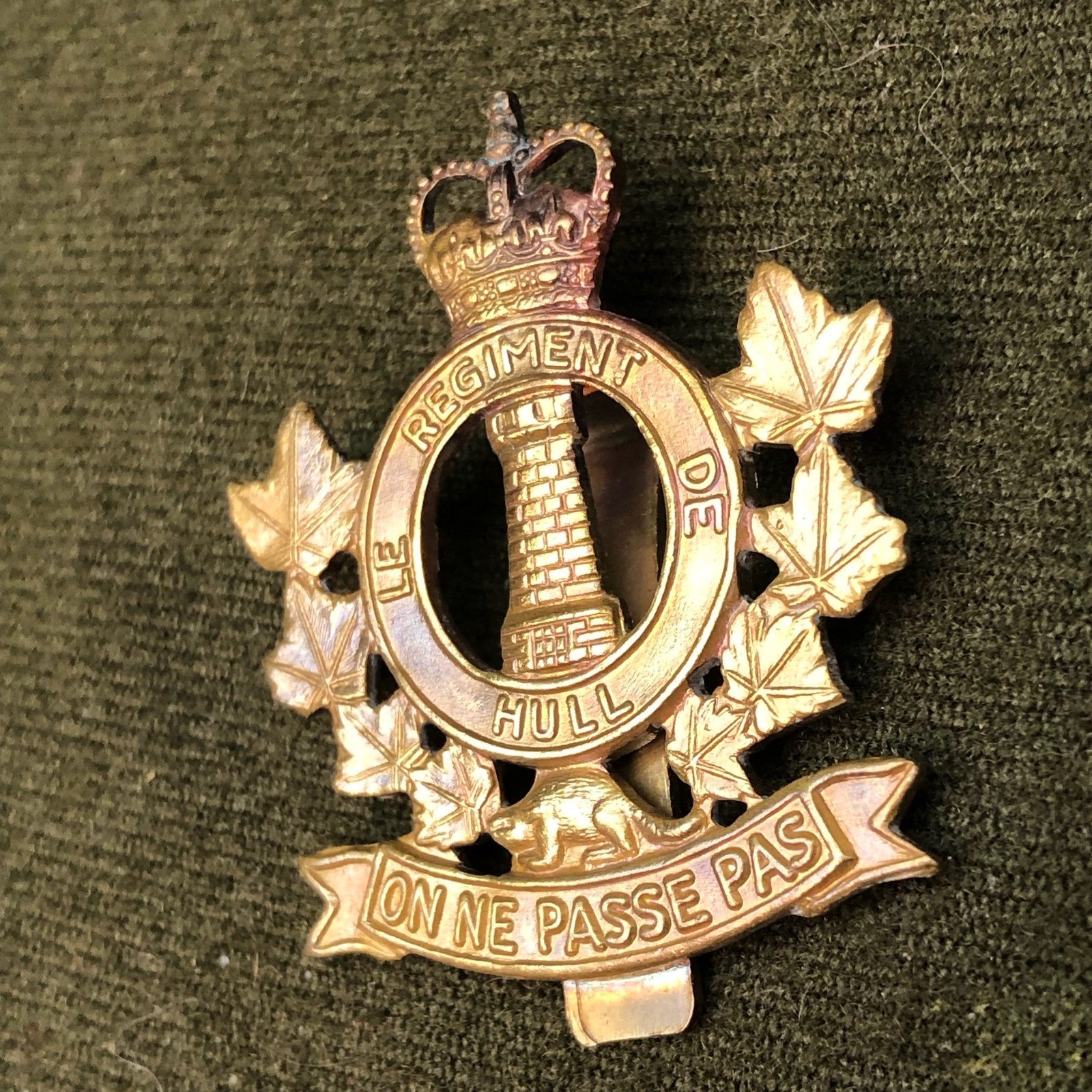 Original Canadian Army Cap Badge - Régiment de Hull