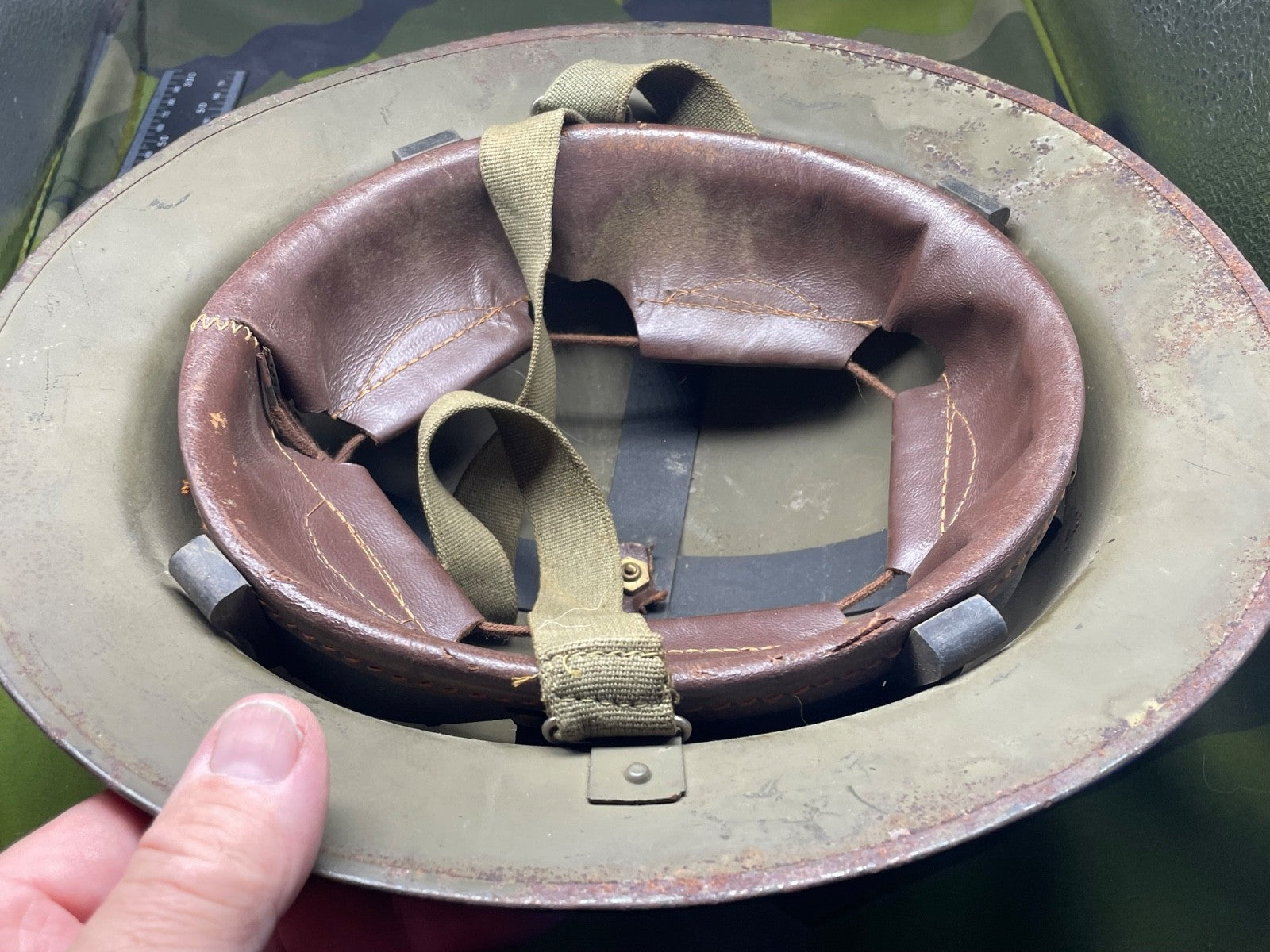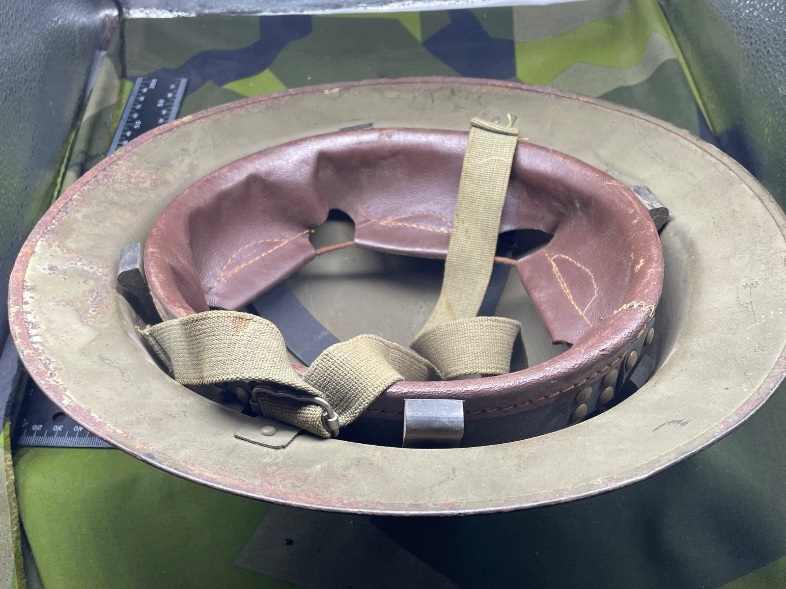 Original Post WW2 Belgium Army Helmet with Liner & Chinstrap