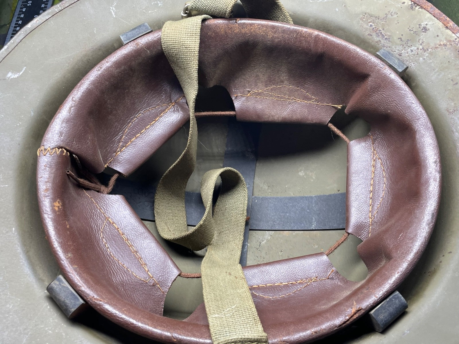 Original Post WW2 Belgium Army Helmet with Liner & Chinstrap in good condition.