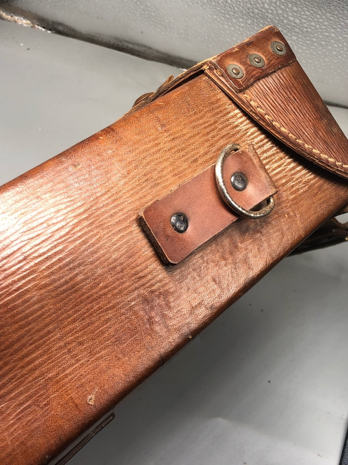 This is the larger size and wider than the more common Bren pouch. This is a lot rarer and was designed to fasten vertically through the shoulder straps and not around the waist. It could also be optionally used with a shoulder strap.