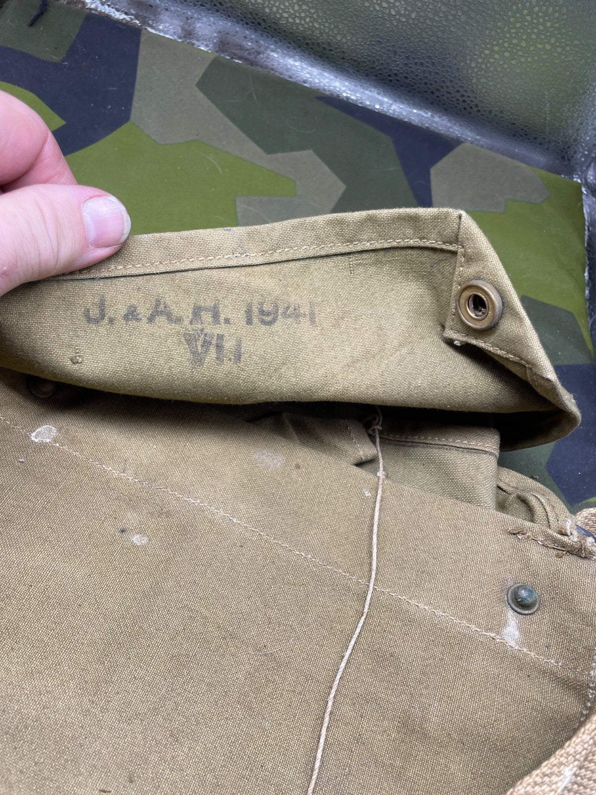 Original WW2 British Army Canvas Mask Bag - 1941 Dated.