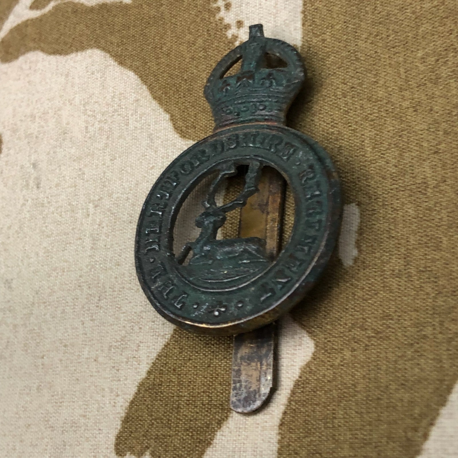Original WW2 British Army Cap Badge - Hertfordshire Regiment