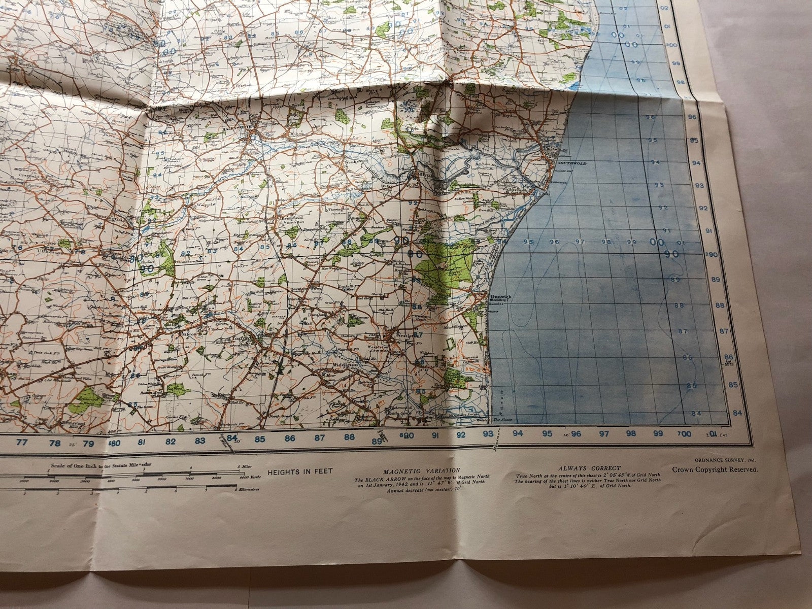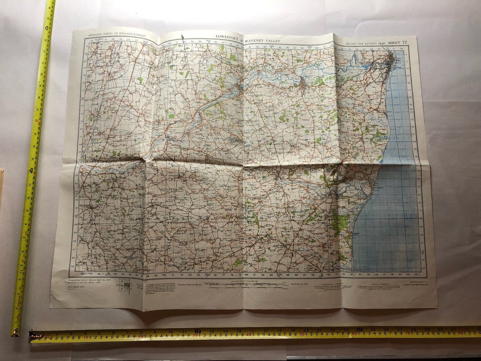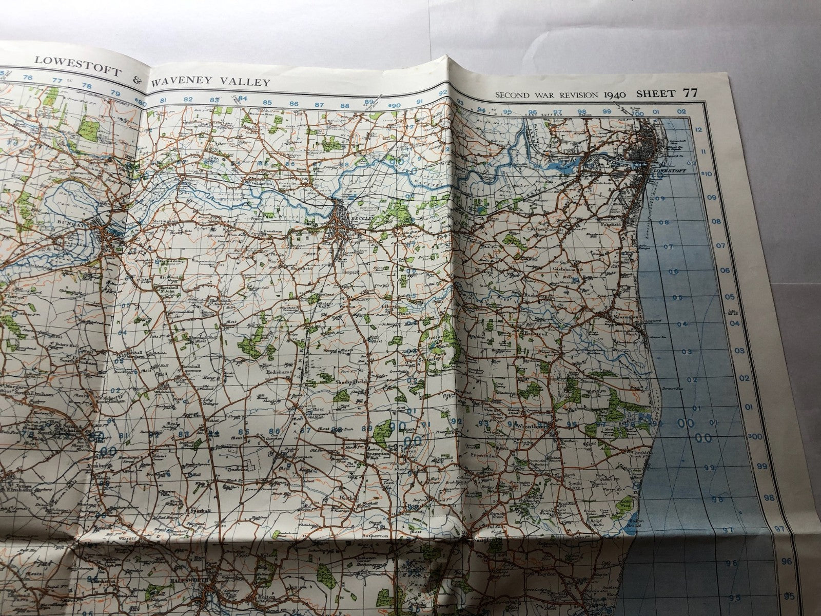 Original WW2 British Army GSGS Map of the UK - Lowestoft & Waveney Valley