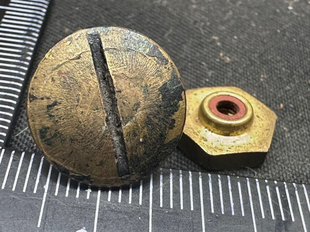 Original WW2 British Army Helmet Liner Early Pattern Dome Screw & Nut Set