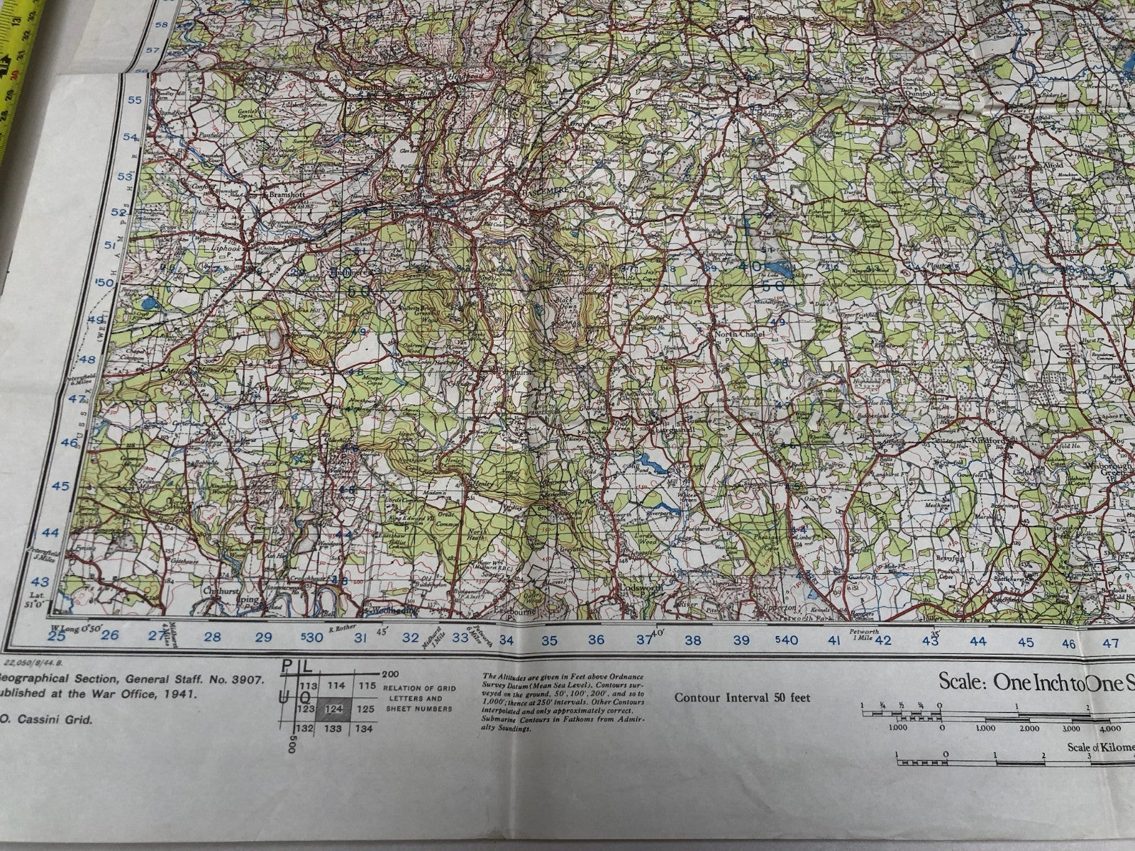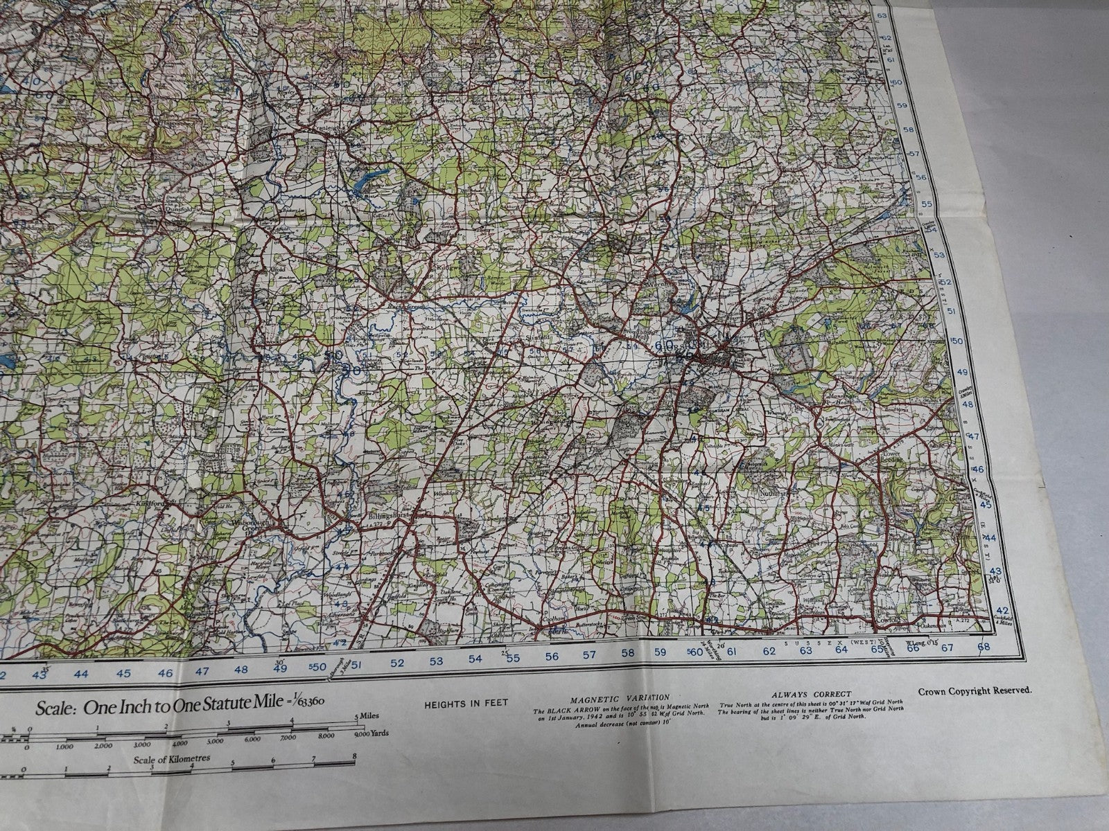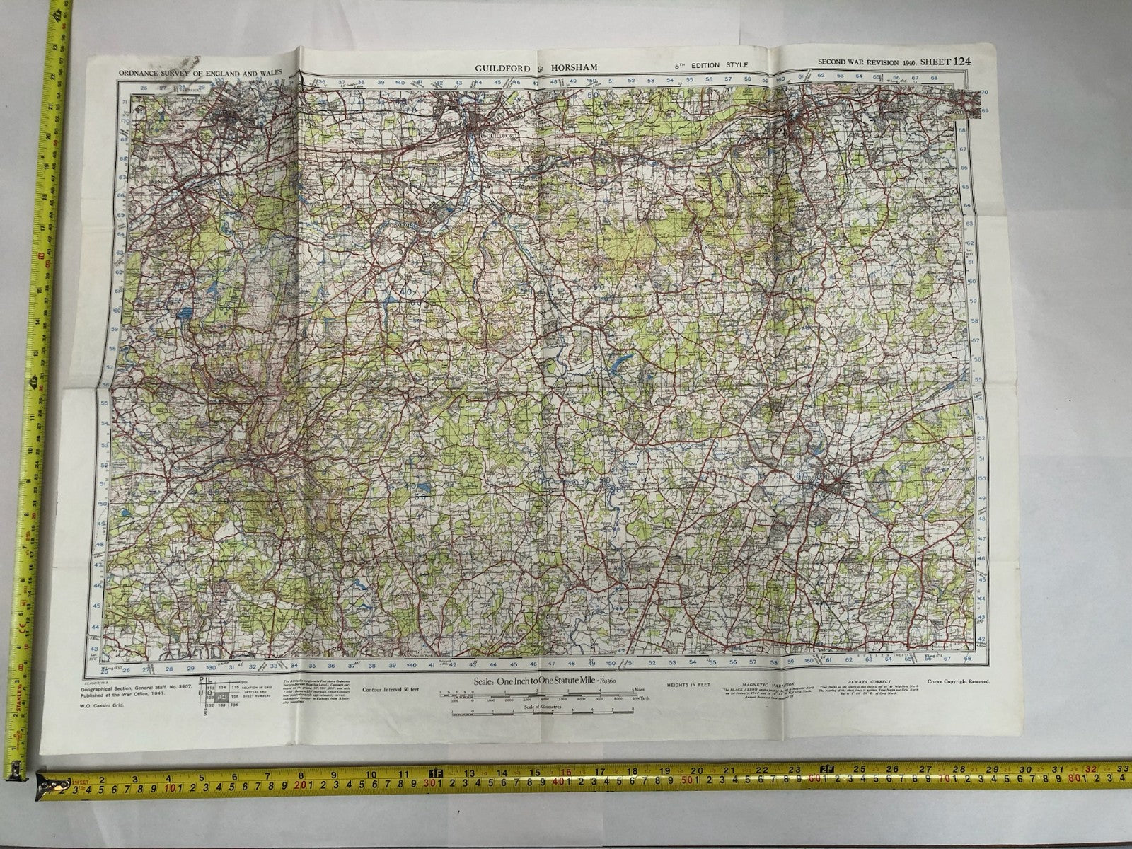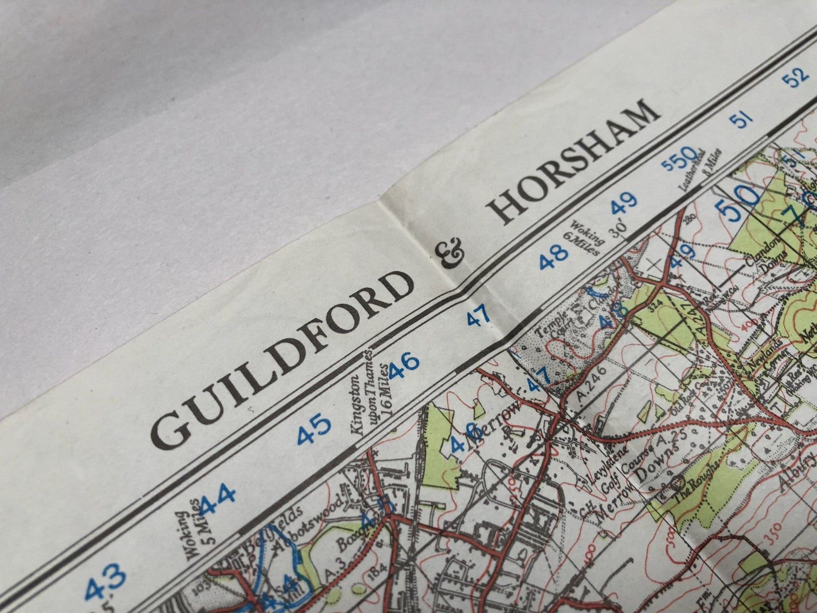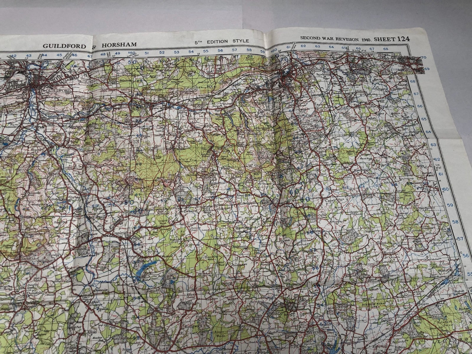 Original WW2 British Army Map of the UK - Guildford & Horsham