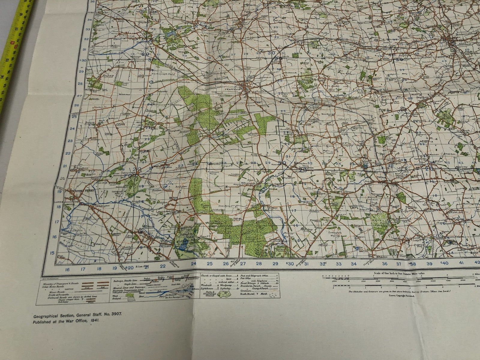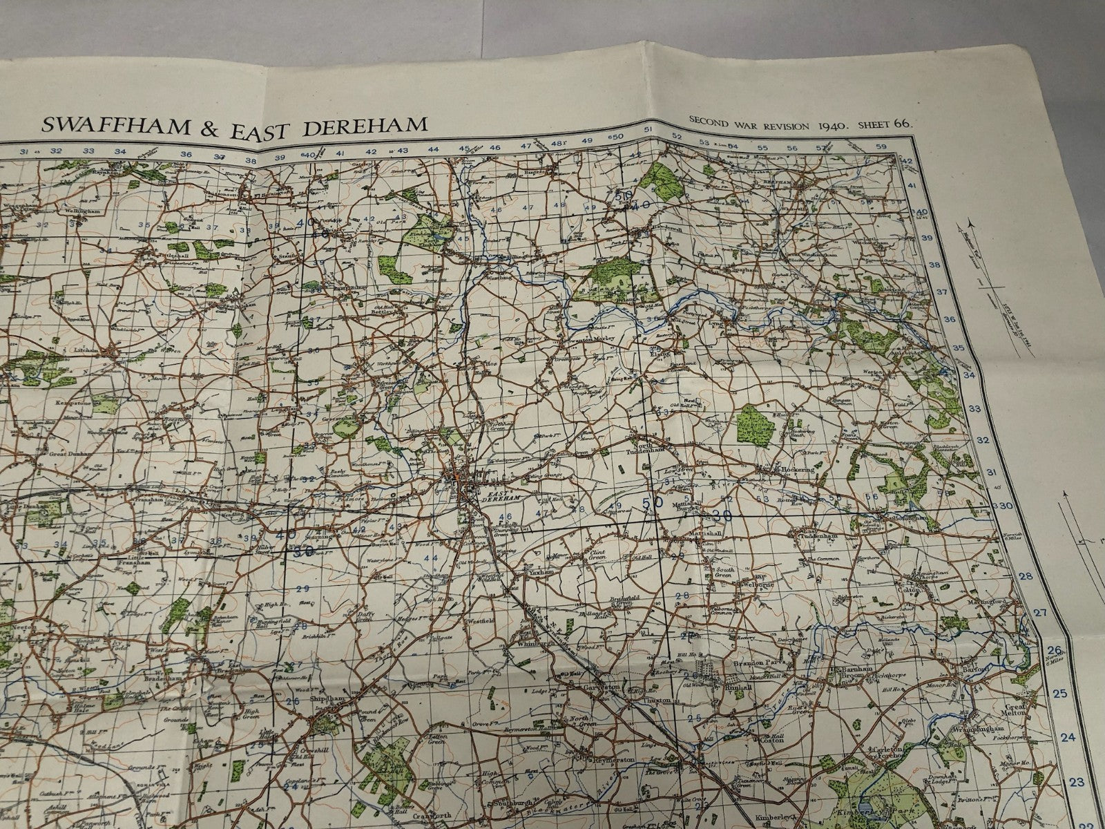 Original WW2 British Army Map of the UK - Swaffham & East Dereham