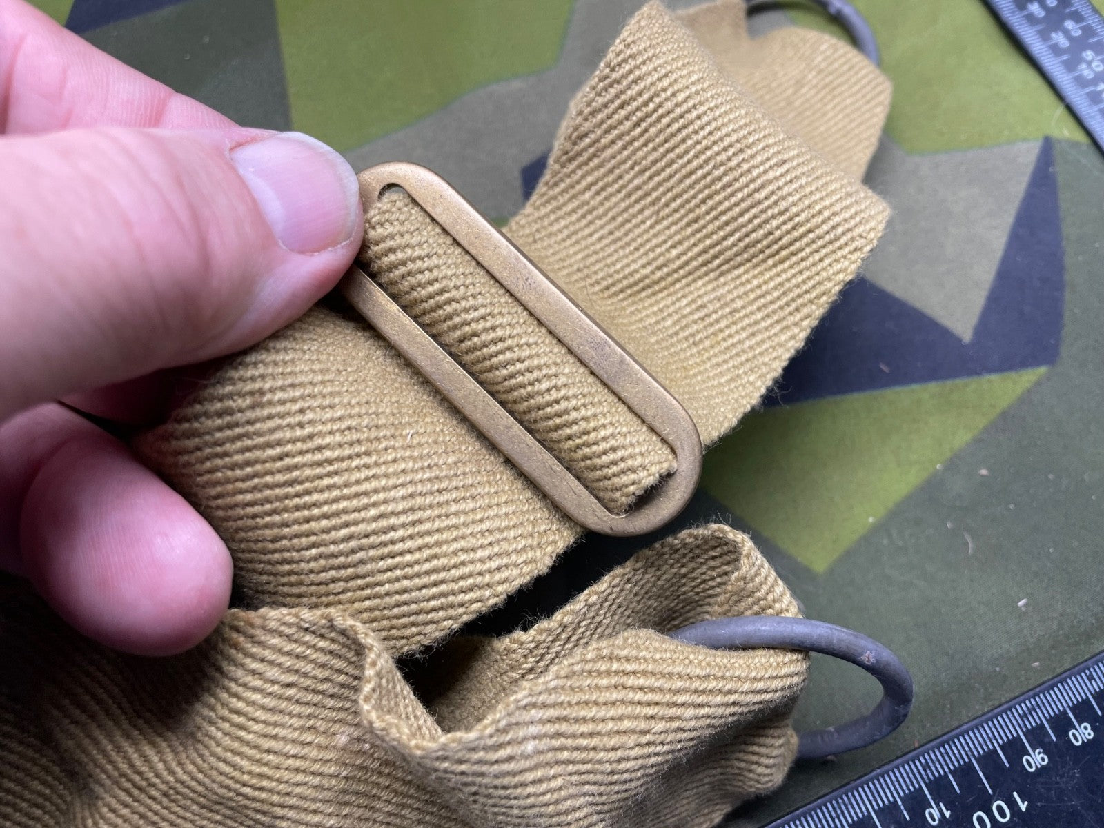 Original WW2 British Army Canvas Mask Bag Shoulder Strap in lightly used condition.
