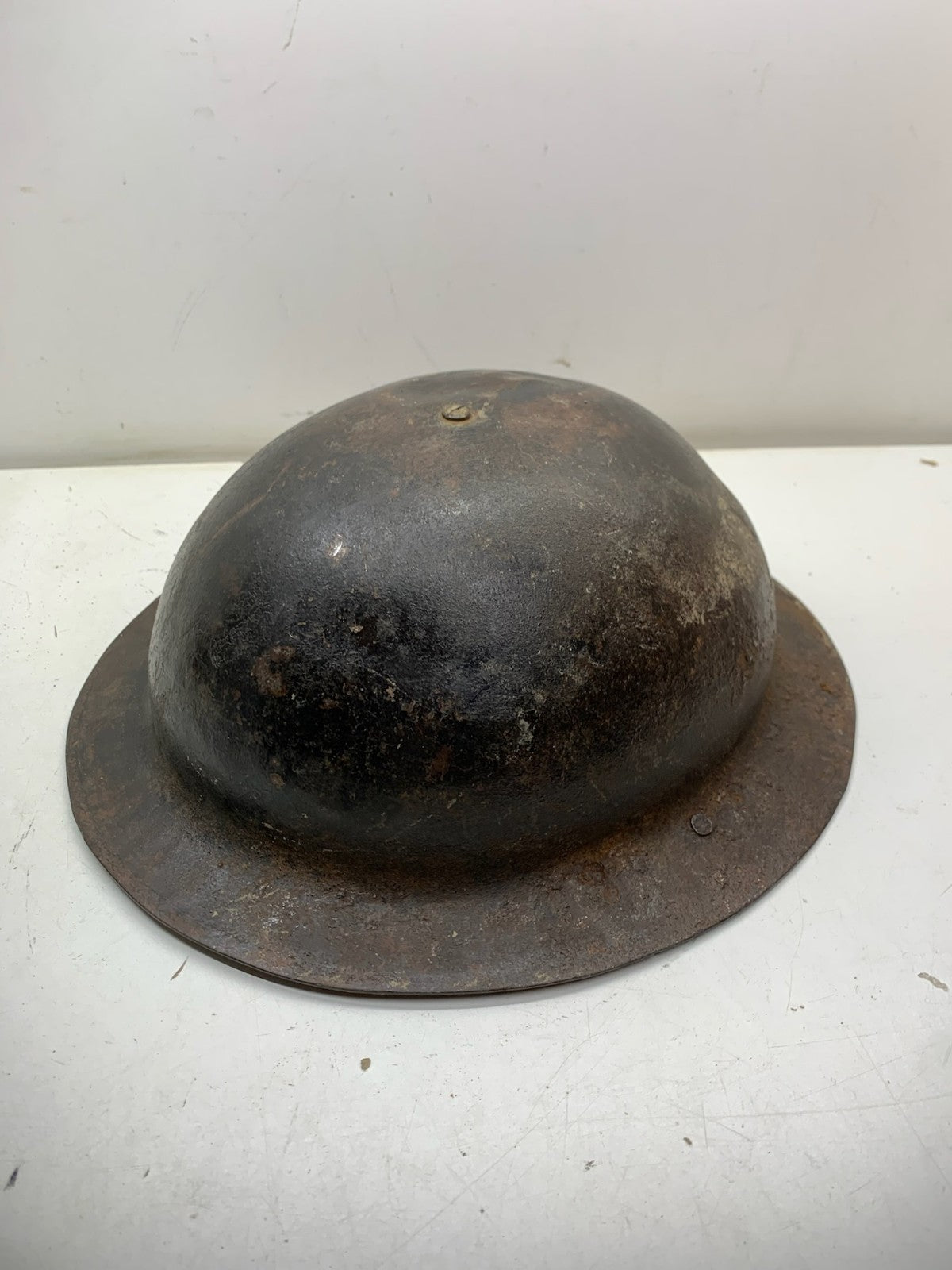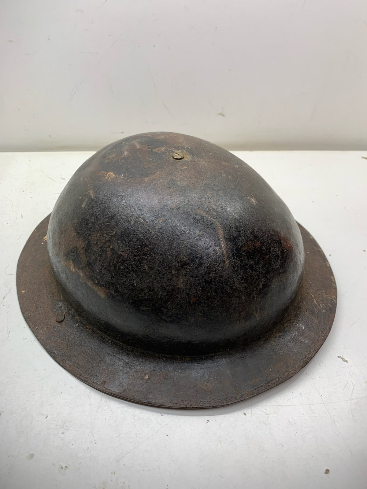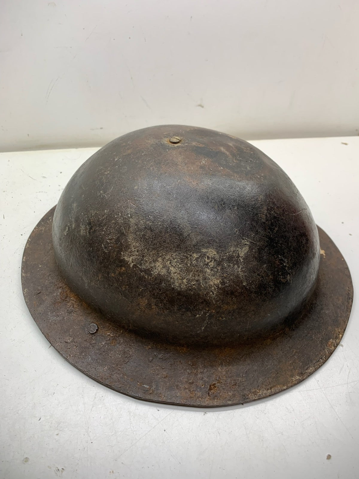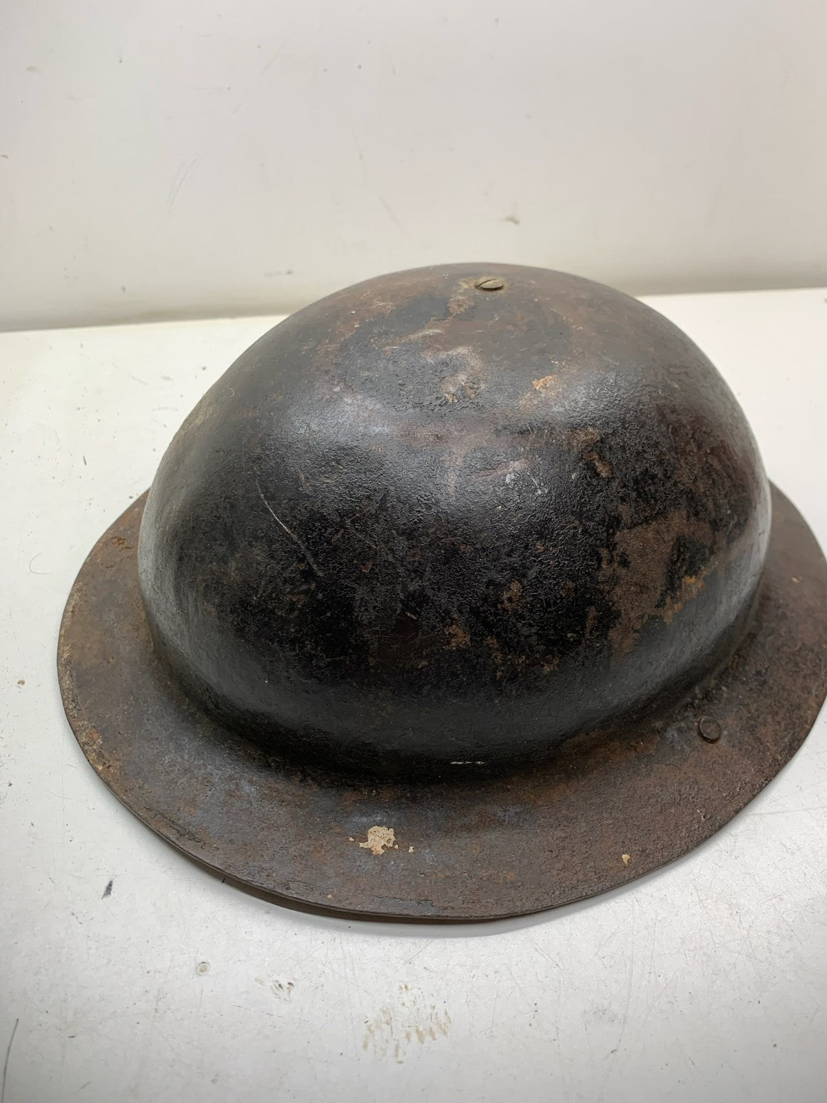 Original WW2 British Army Brodie Combat Helmet Shell & WW2 reissue economy liner that has sadly seen better days.