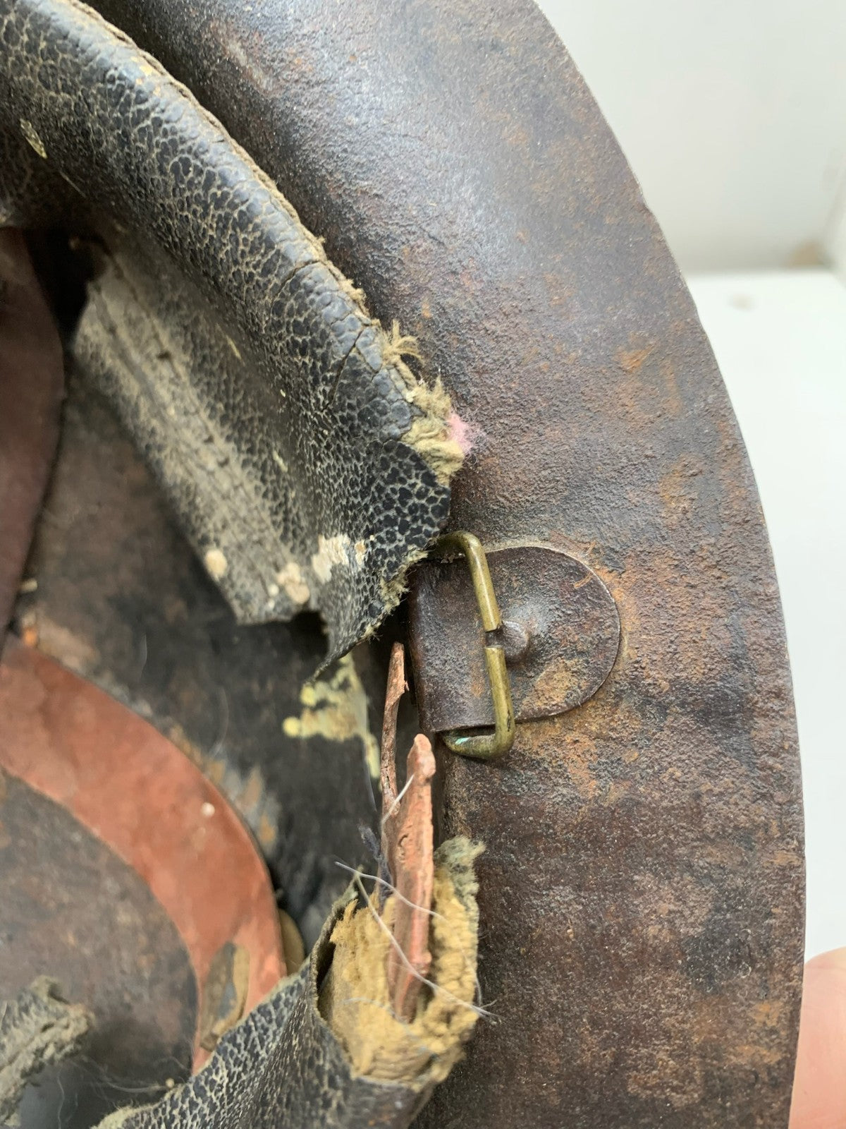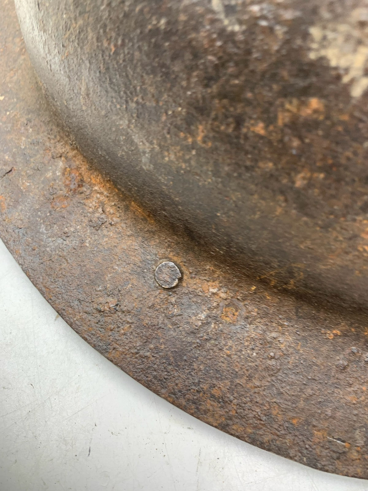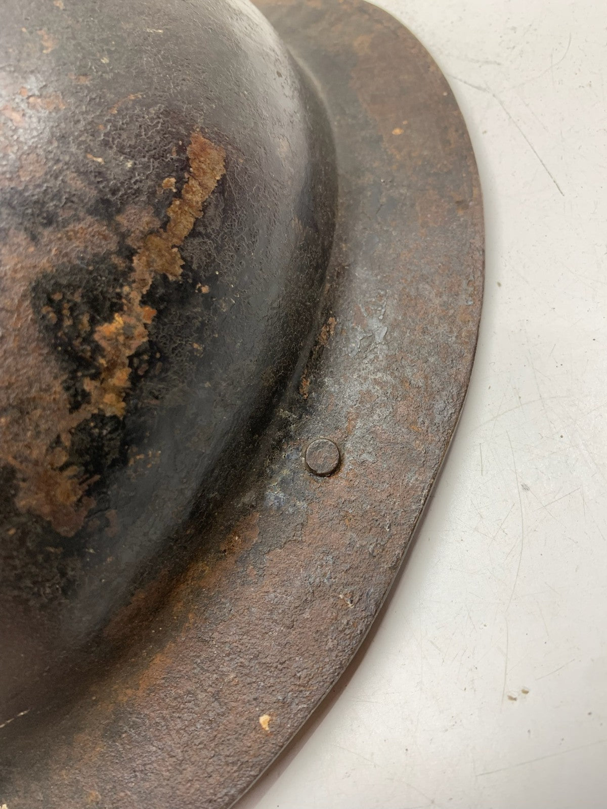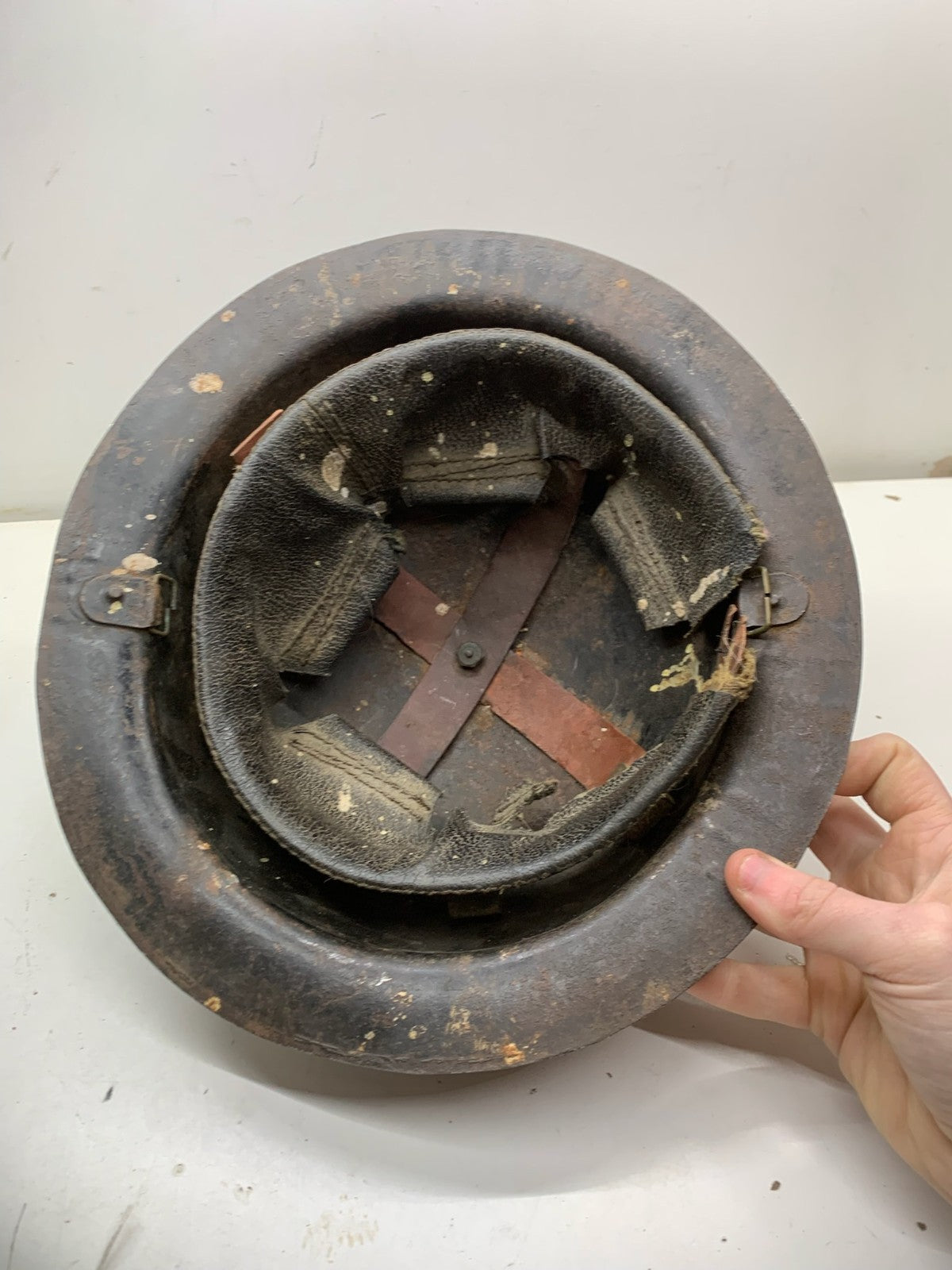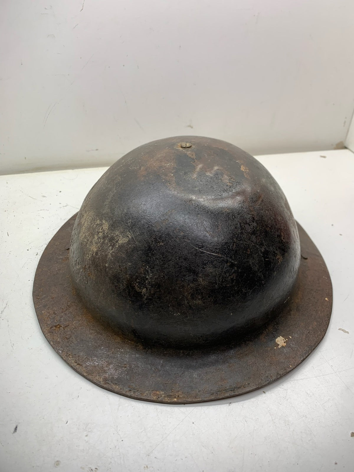 Original WW2 British Army Brodie Combat Helmet Shell & WW2 reissue economy liner that has sadly seen better days.