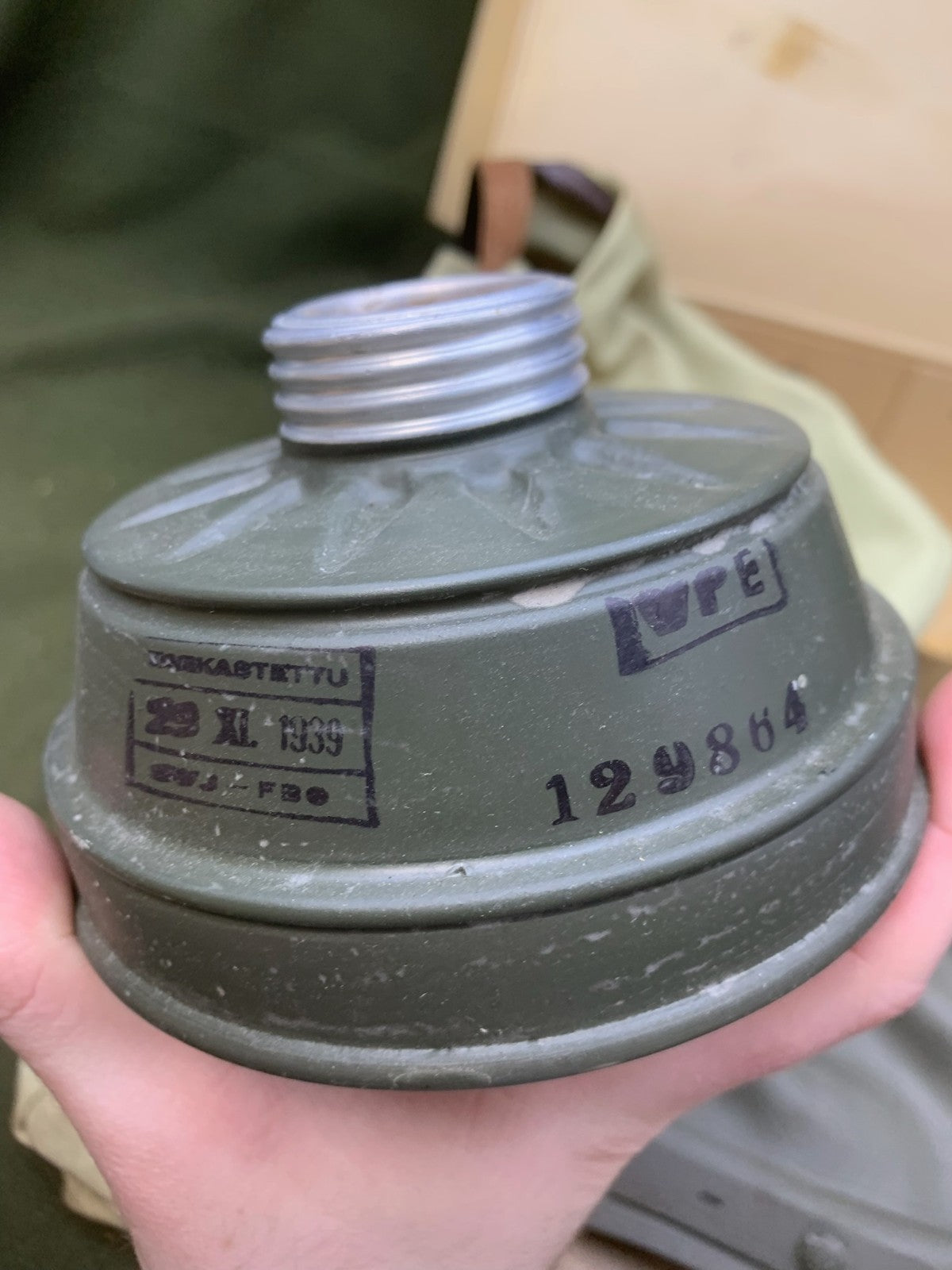 Original WW2 Finish / German Home Front Civilian Gas Mask M39 1939 - Complete - Ideal for WW2 German displays as the pattern is so similar to the luftshutz pattern.