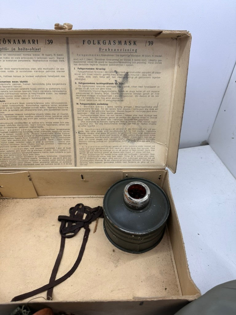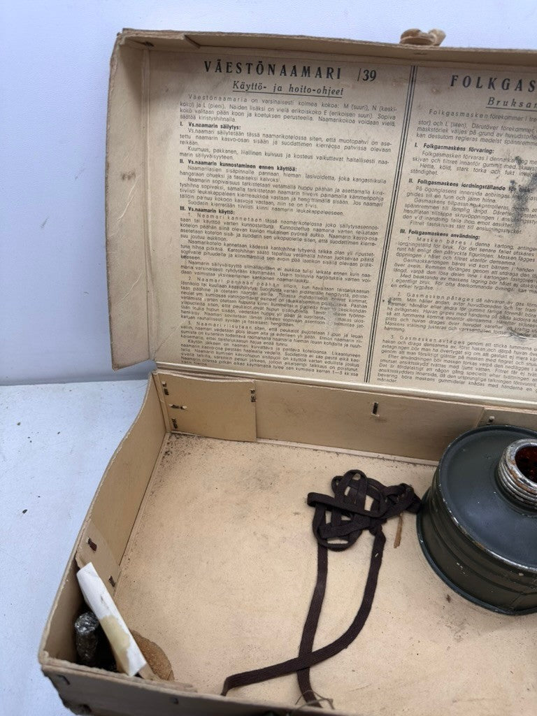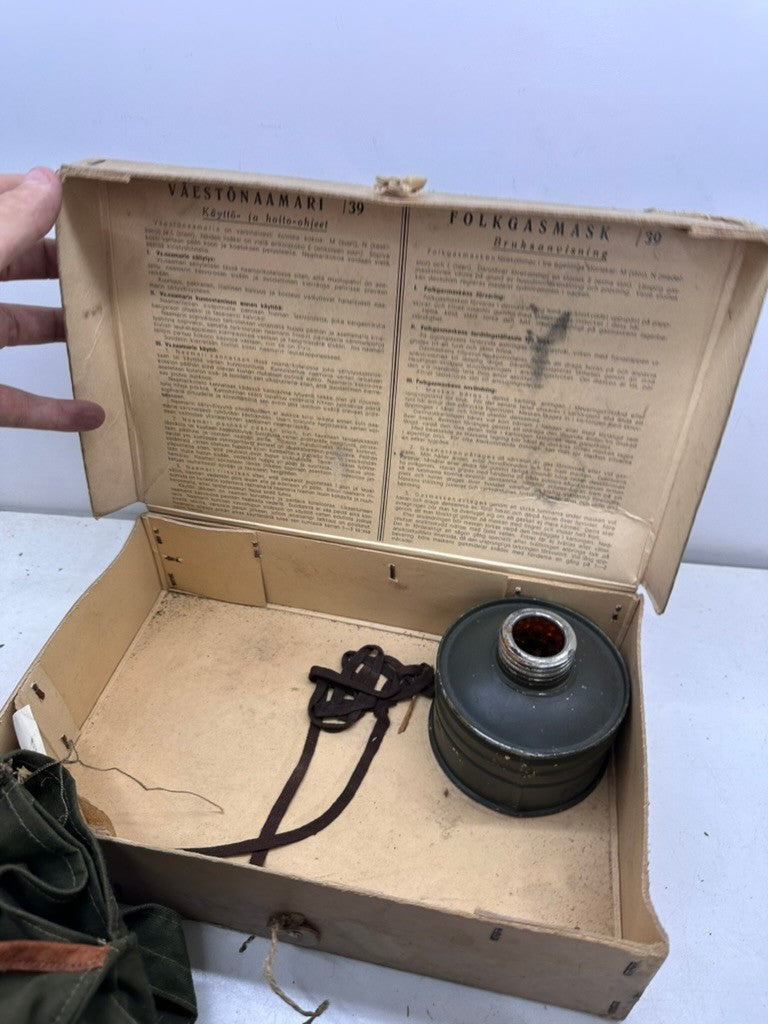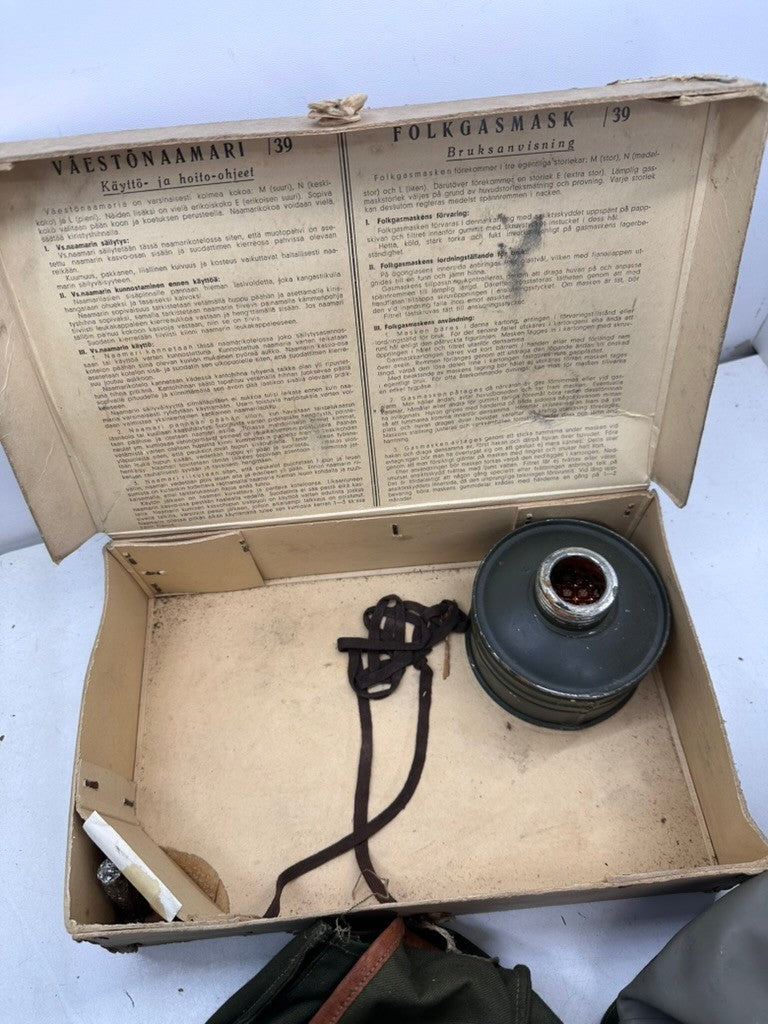 Original WW2 Finnish / German Home Front Civilian Mask Set M39 1939 - Complete