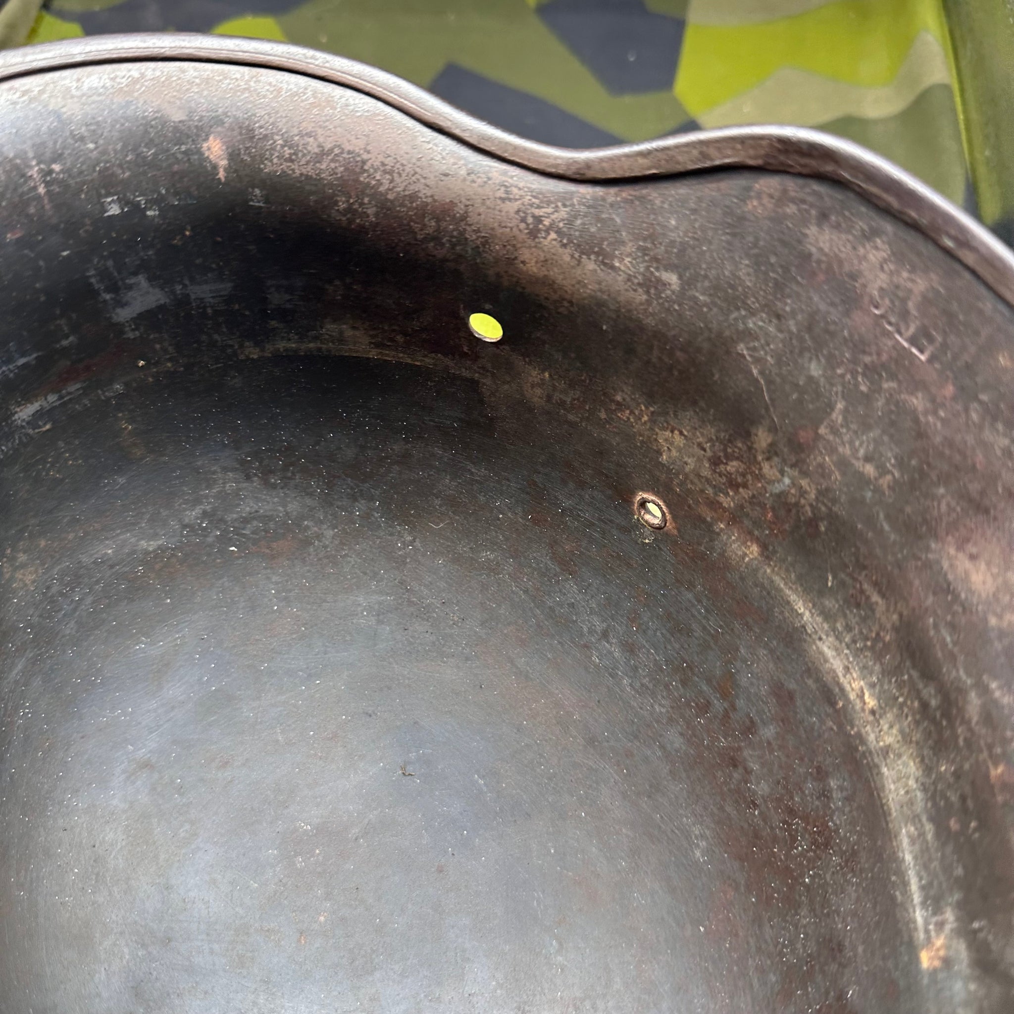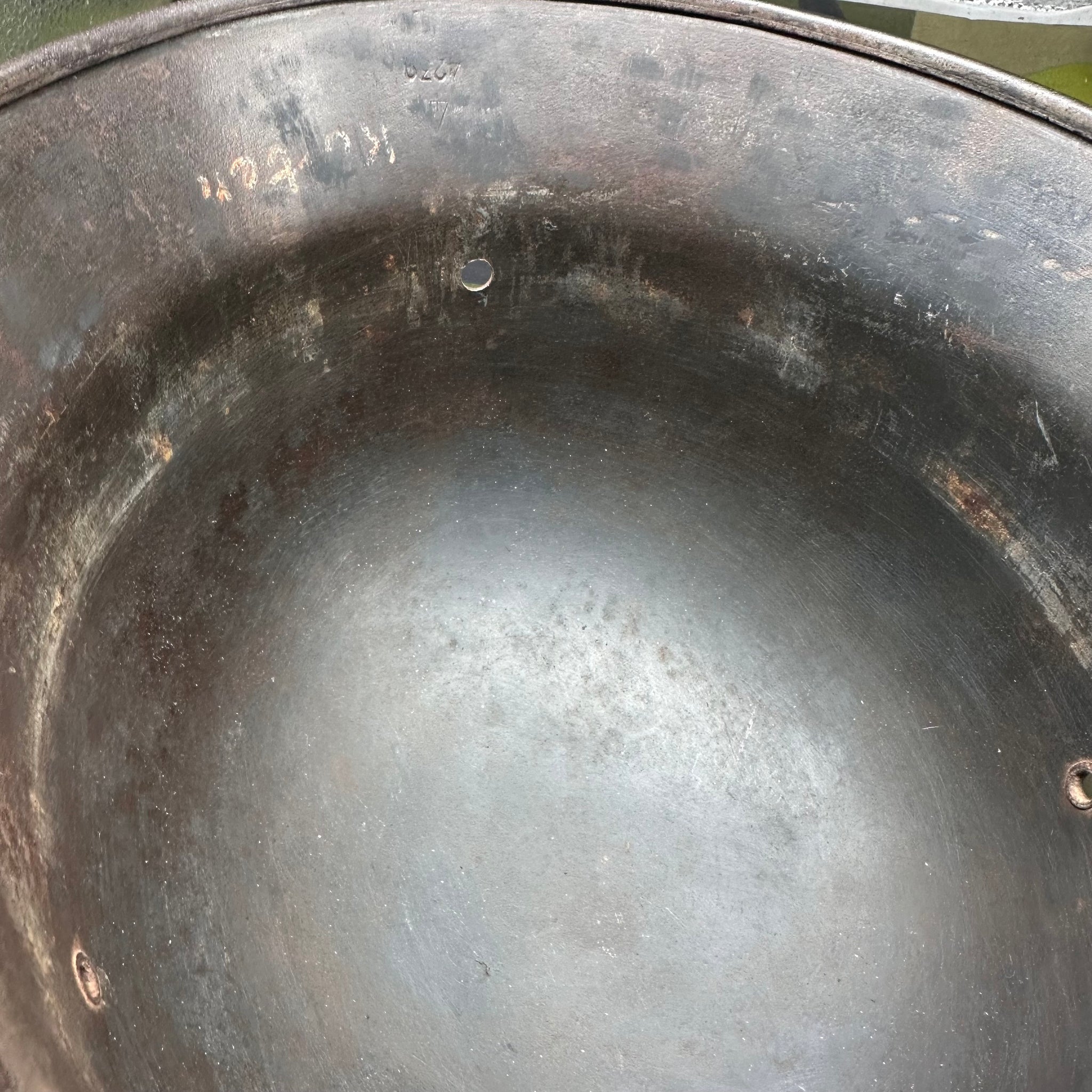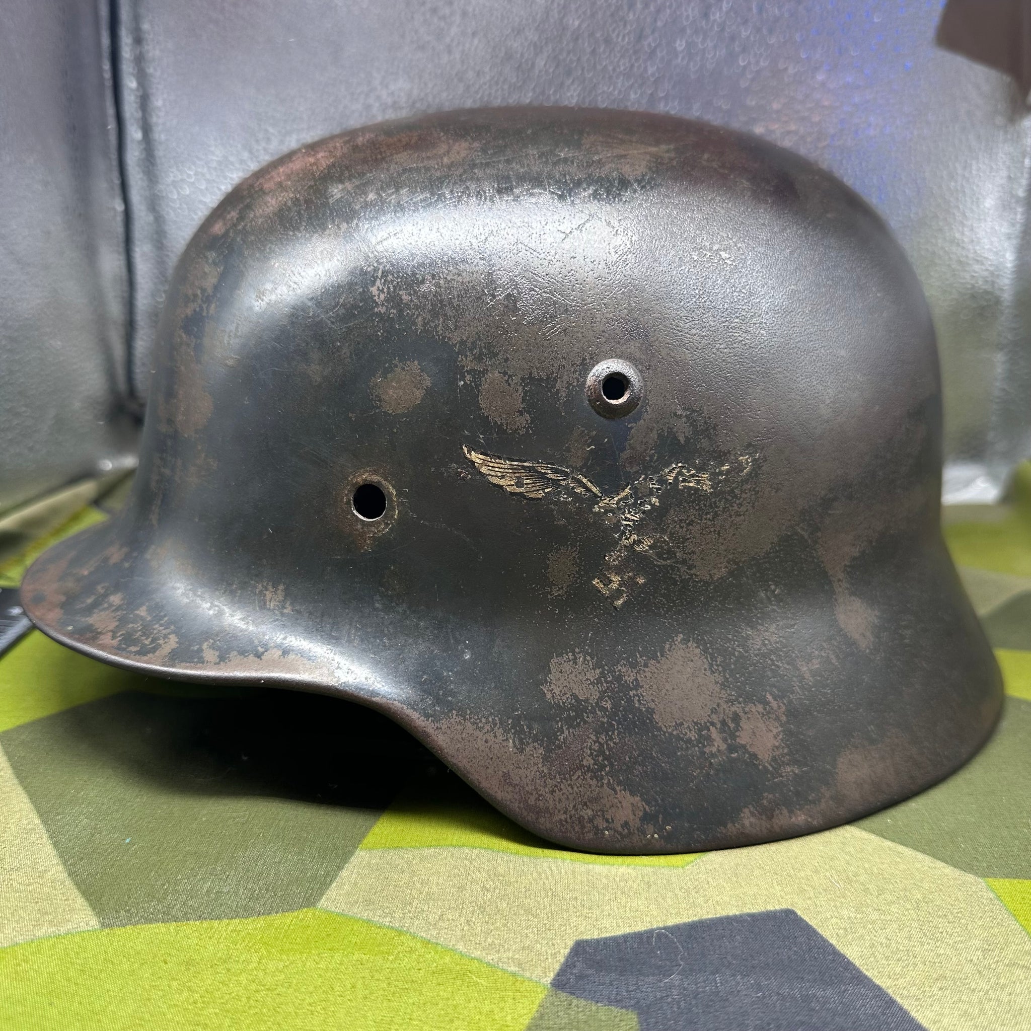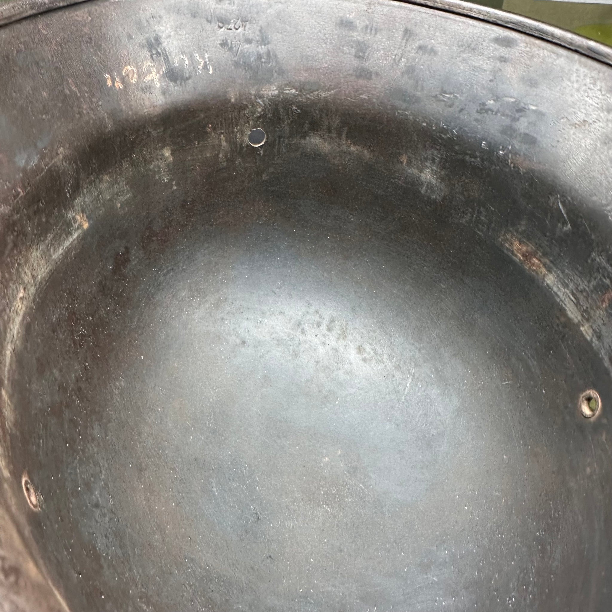 Original WW2 German Luftwaffe Double Decal Helmet - M35 Early Blue colour and it has the owners name on the inside rim. This is a nice original helmet.