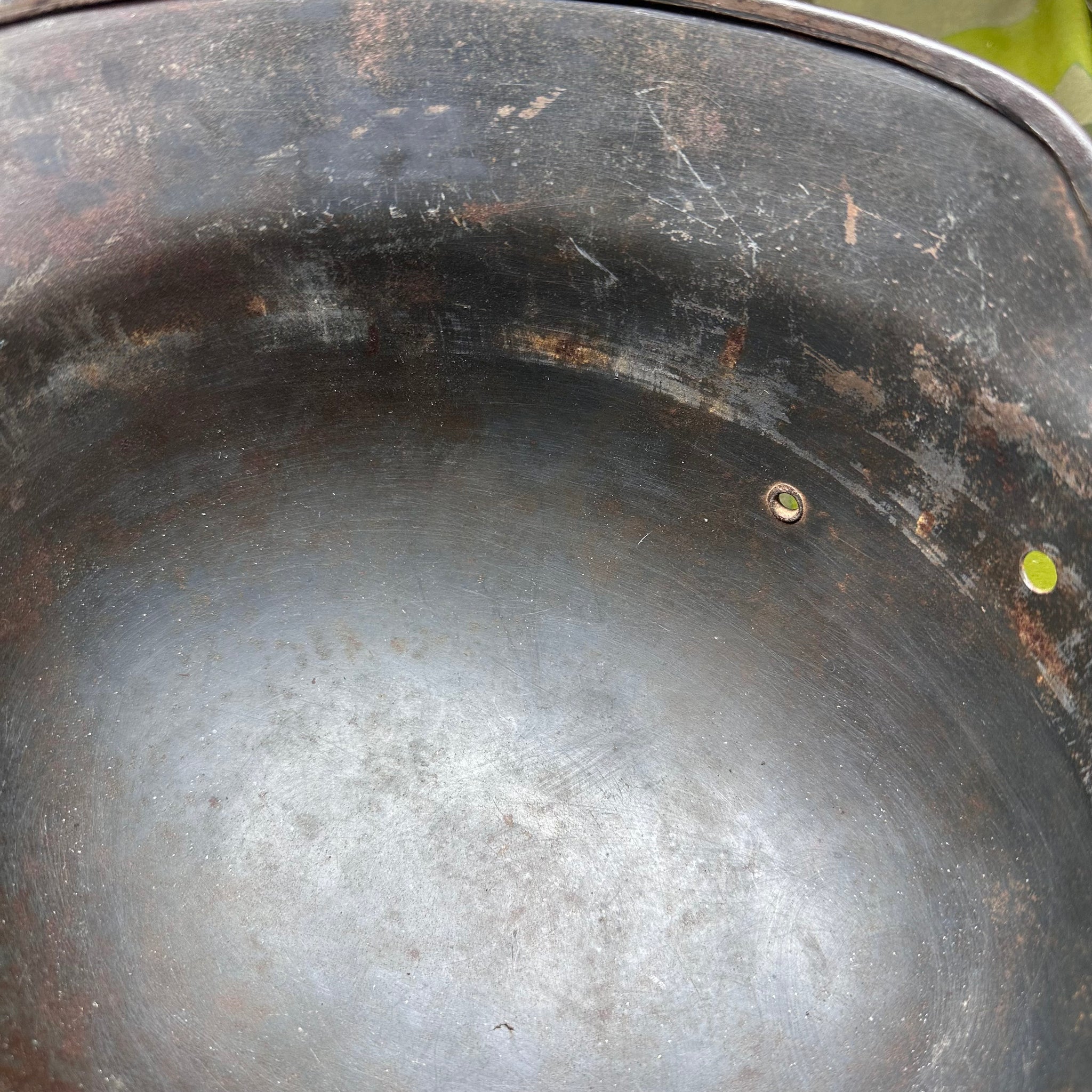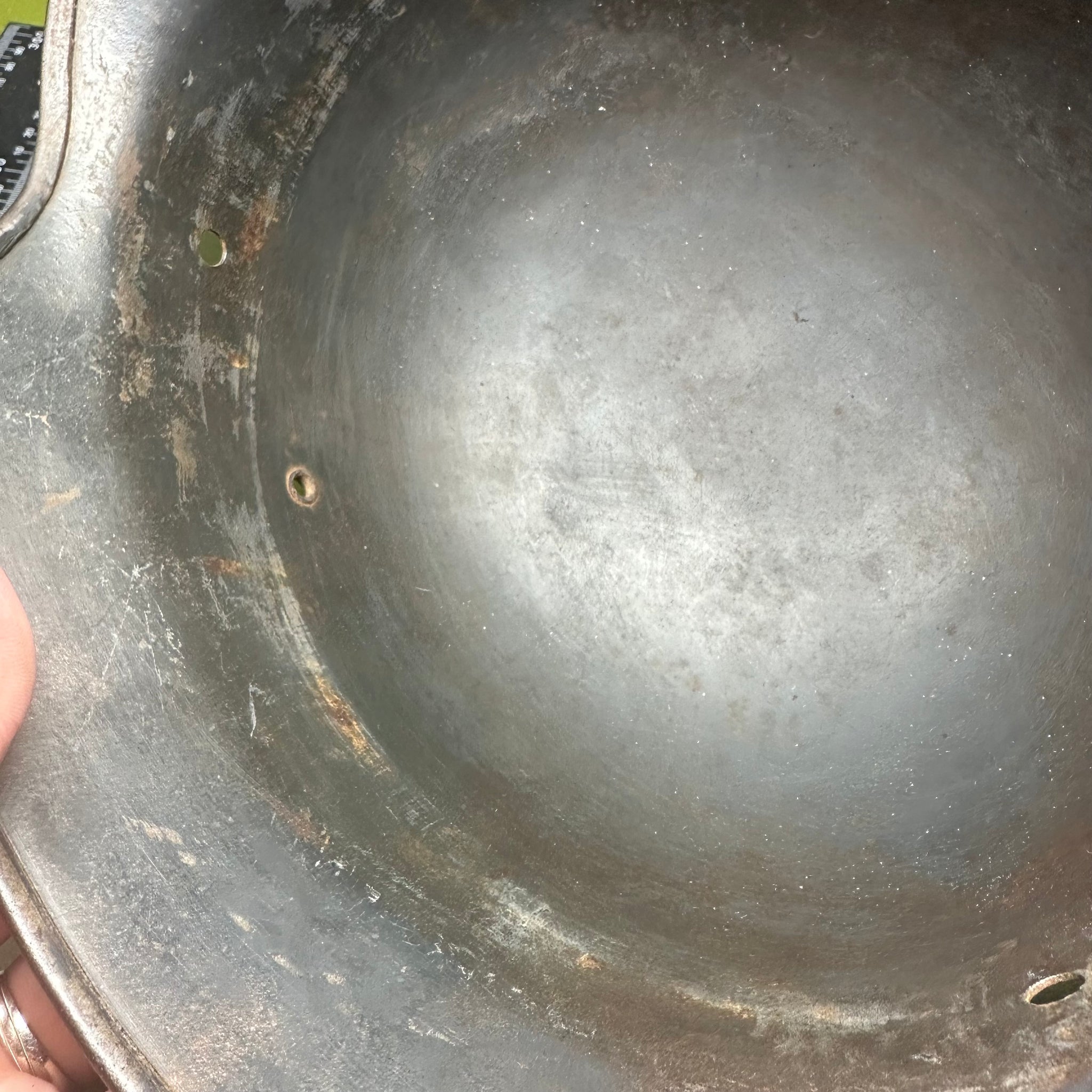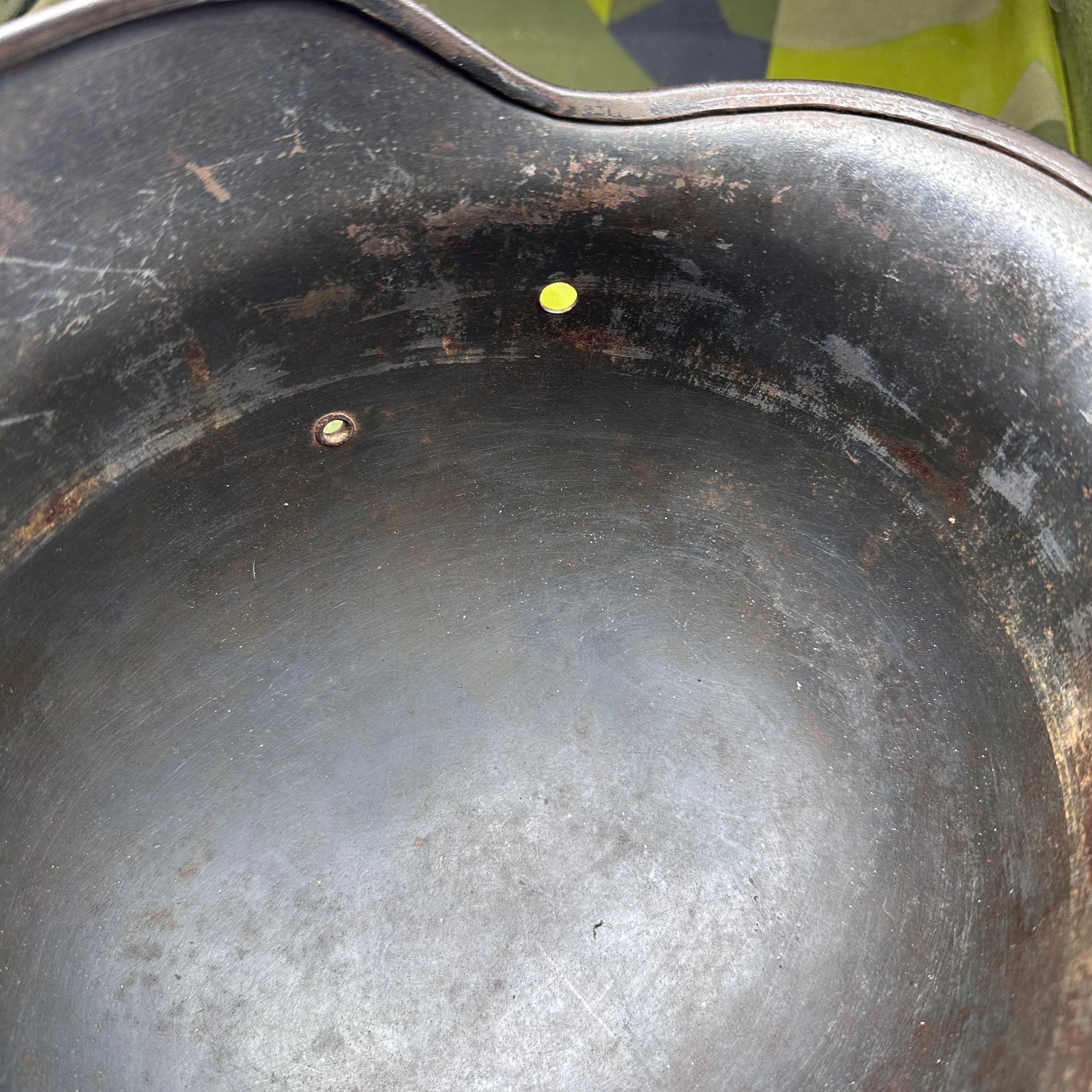 Original WW2 German Luftwaffe Double Decal Helmet - M35 Early Blue colour and it has the owners name on the inside rim. This is a nice original helmet.