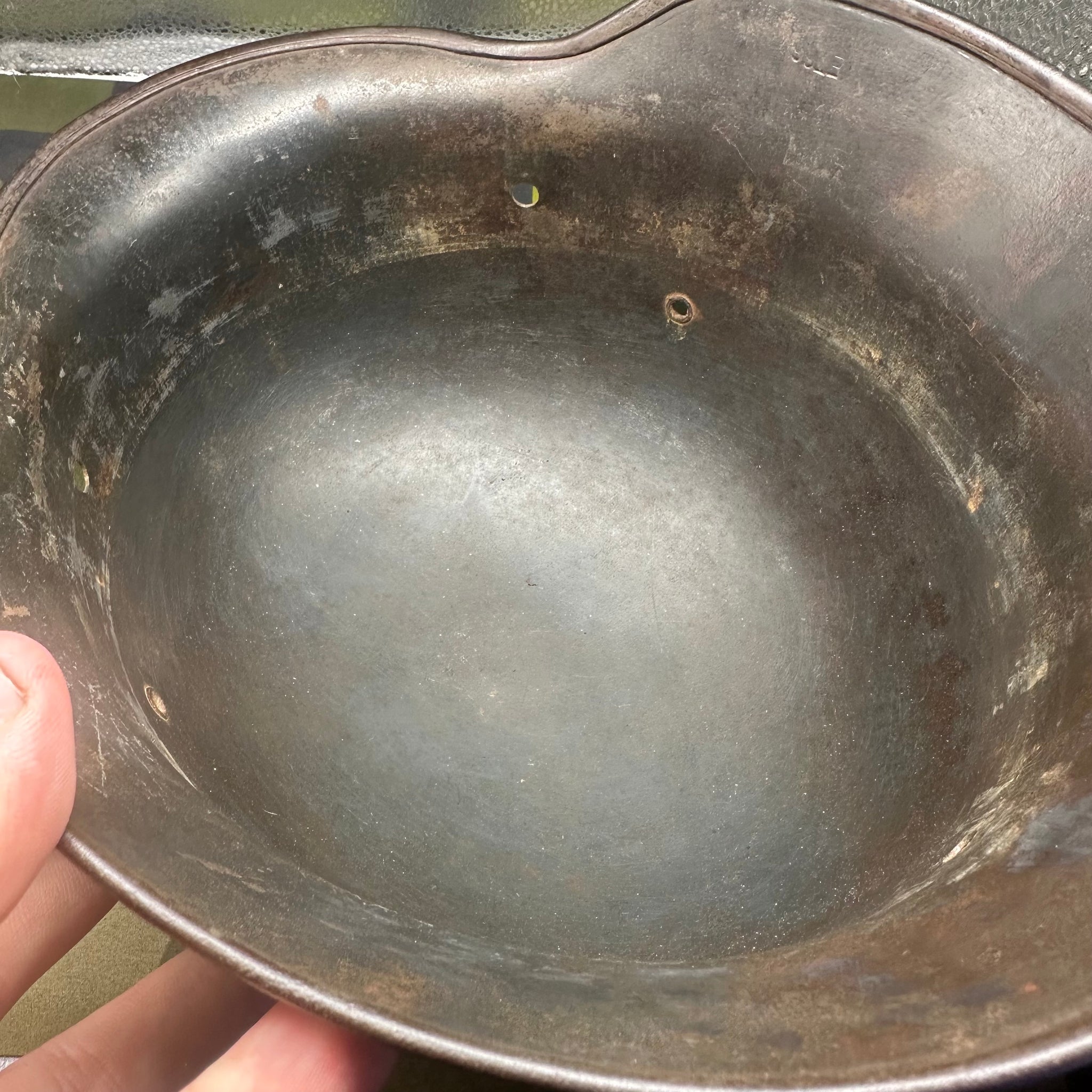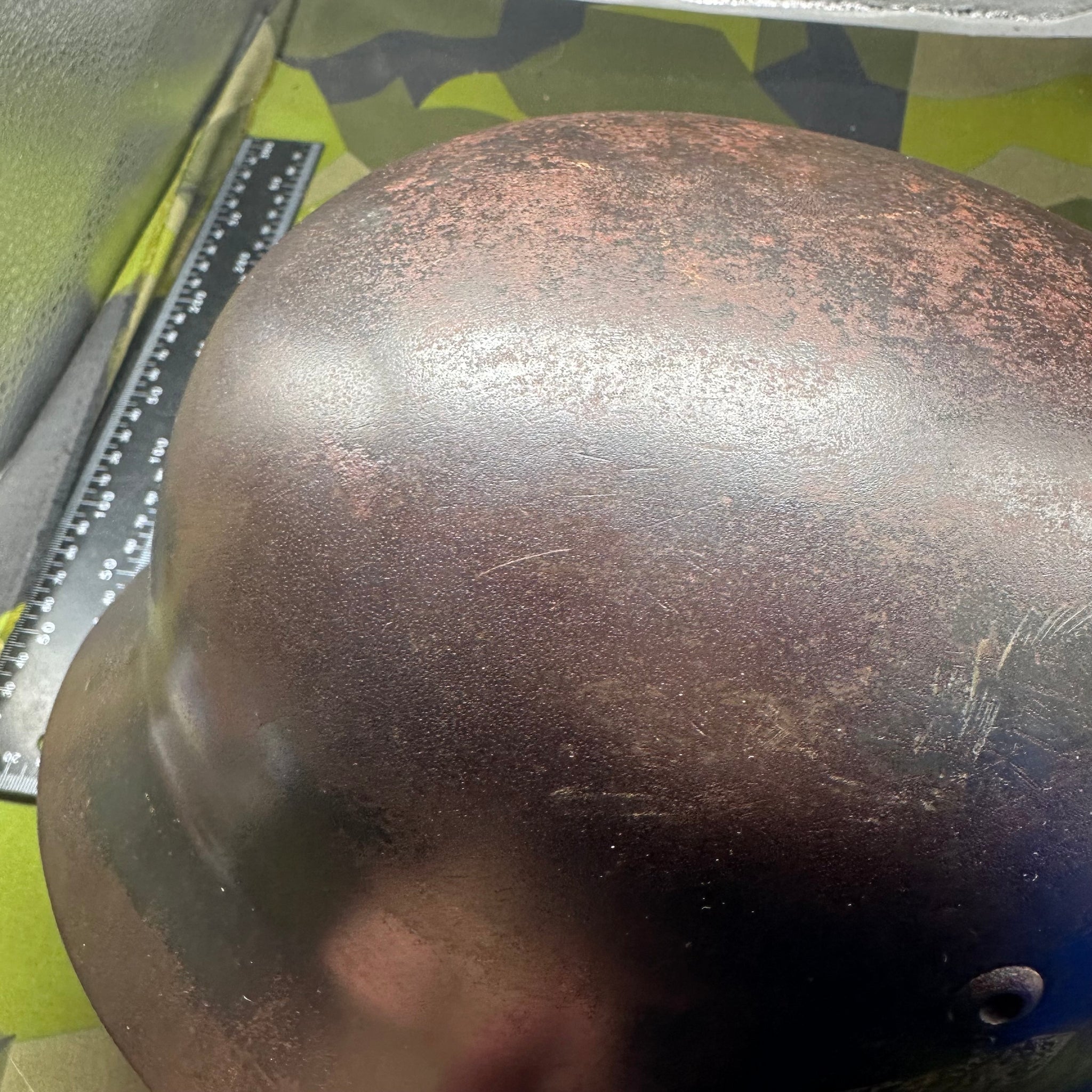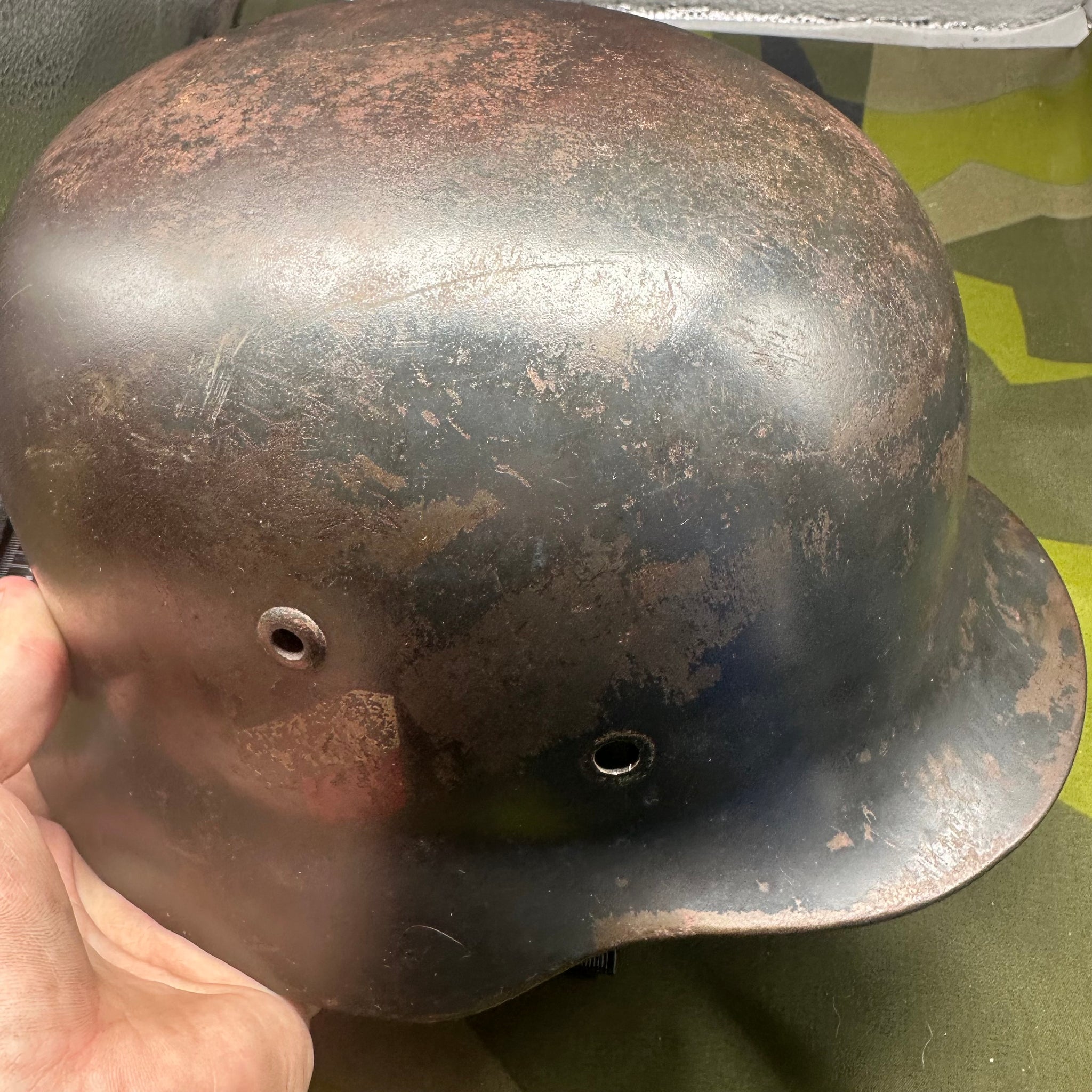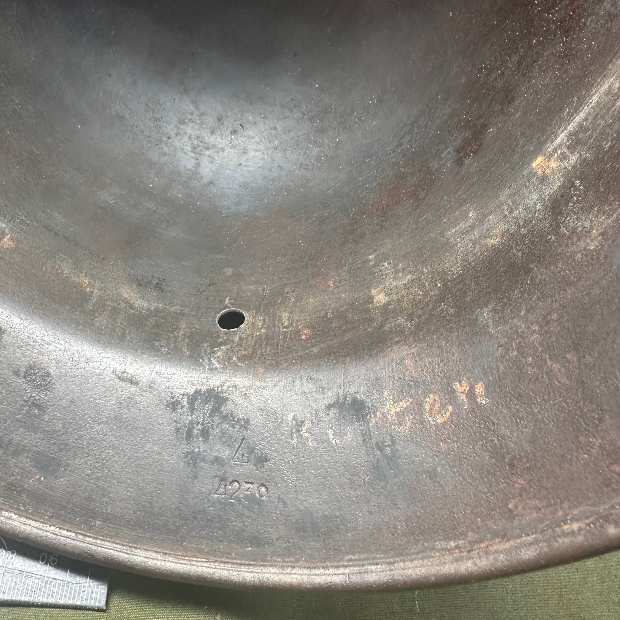 Original WW2 German Luftwaffe Double Decal Helmet - M35 Early Blue colour and it has the owners name on the inside rim. This is a nice original helmet.