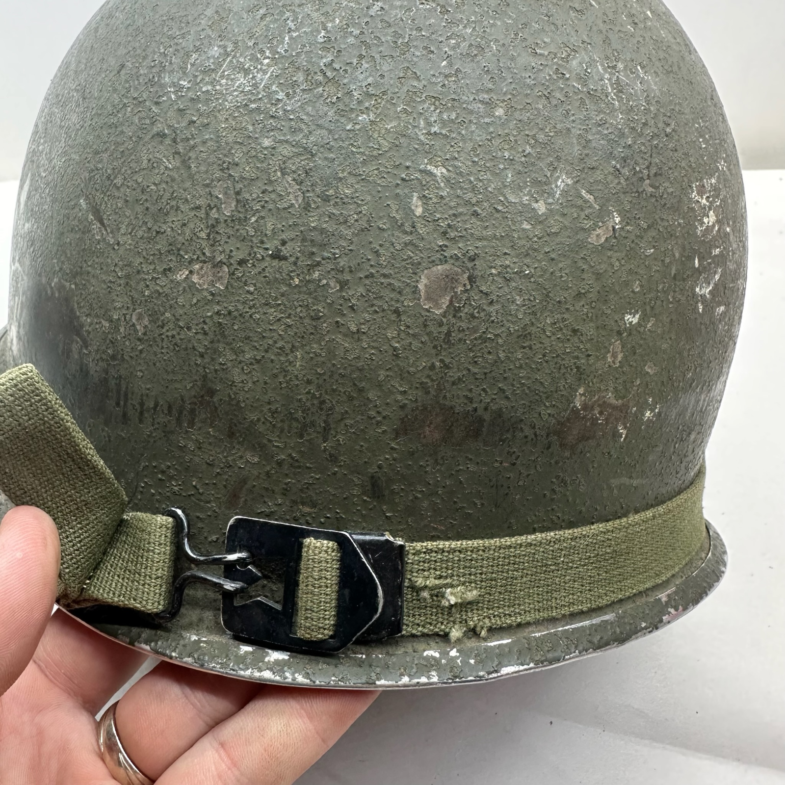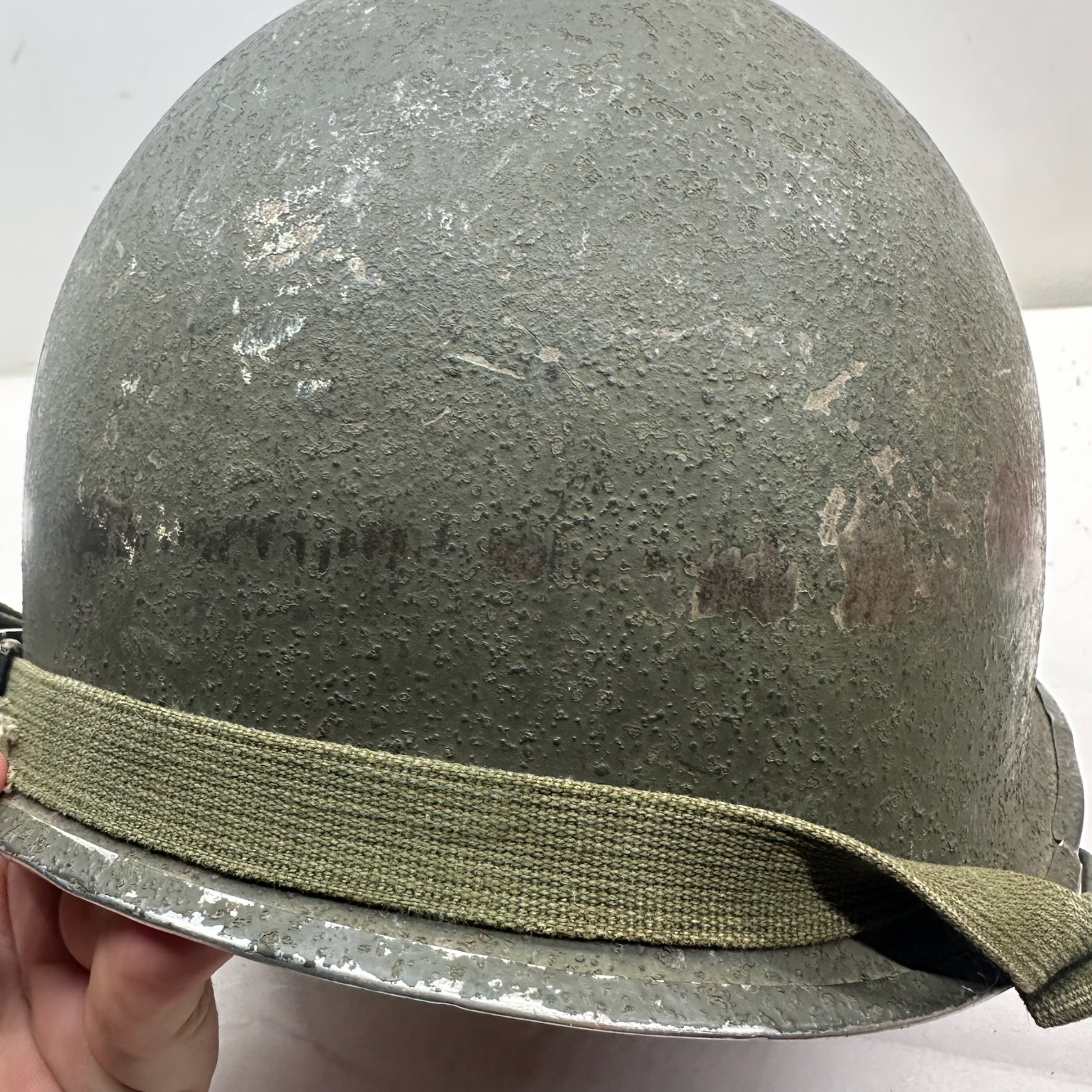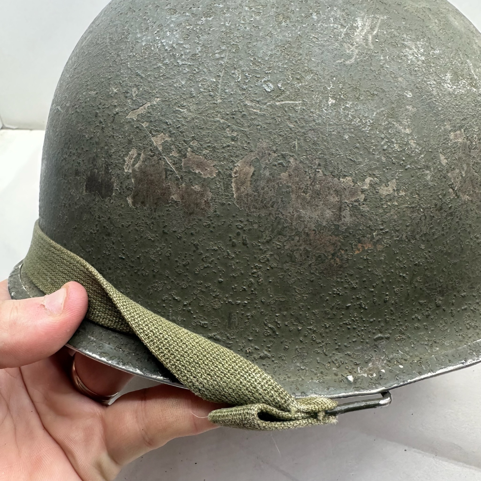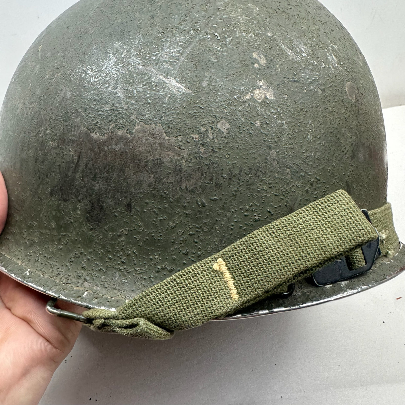 Original WW2 US M1 Combat Helmet - Swivel Bail Front Seam - Westinghouse Liner