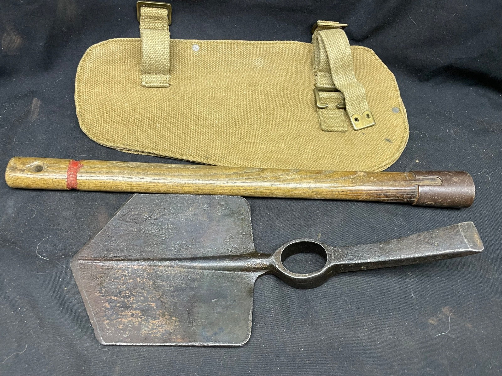 WW2 British Army Helve / Entrenching Tool Set - 1941 Head / 1943 Carrying Case.