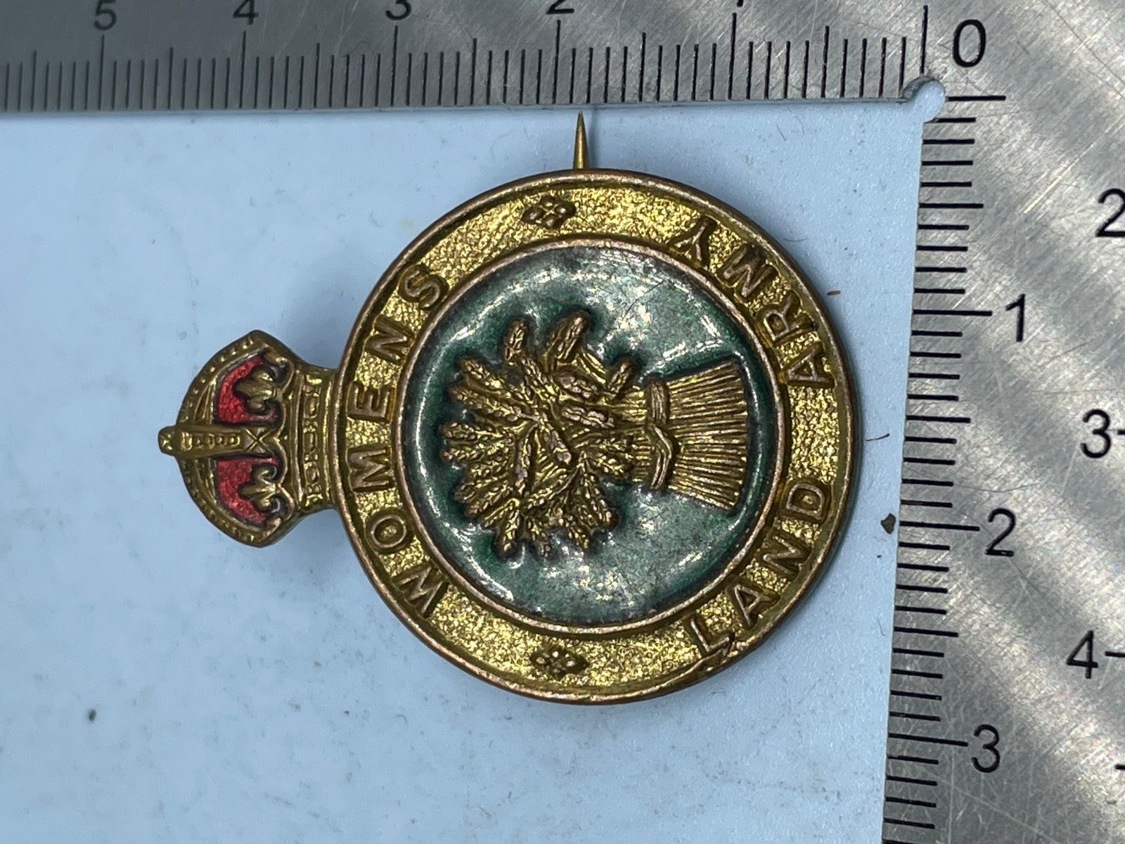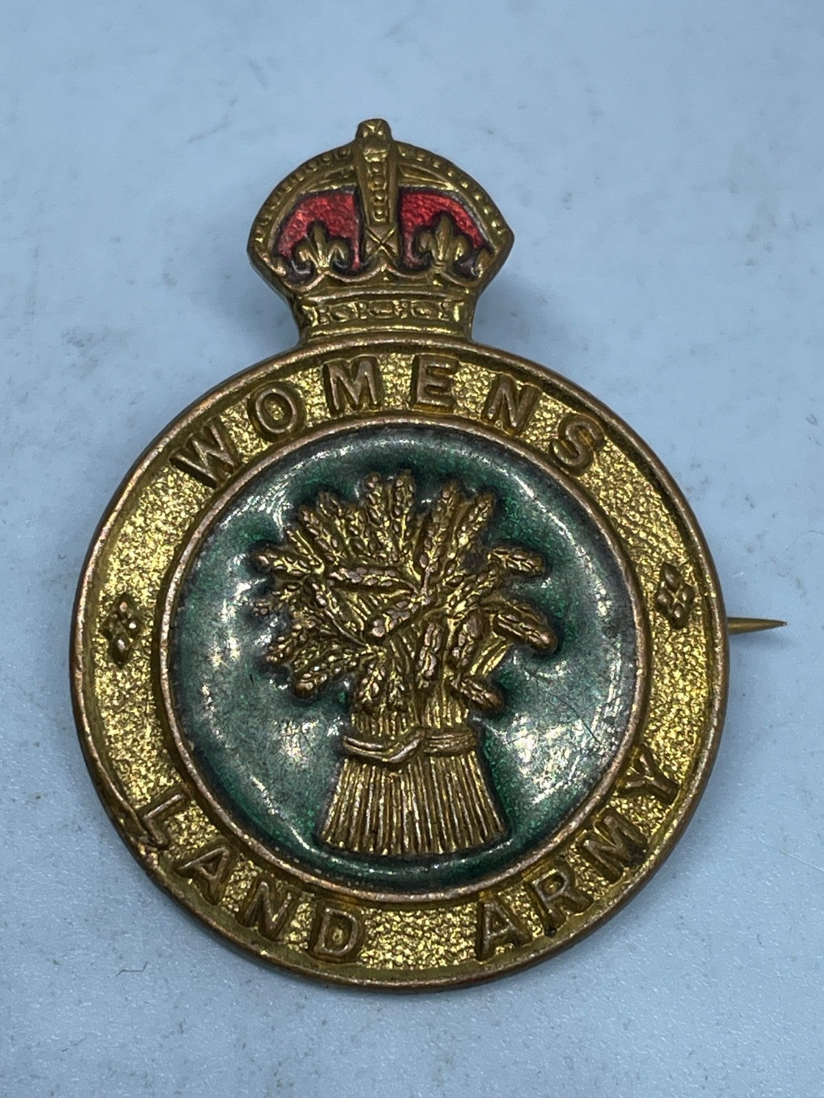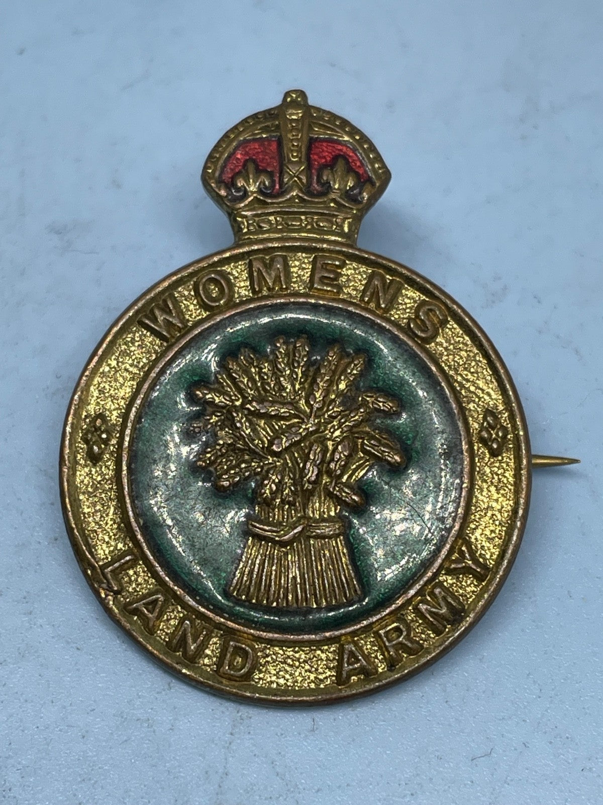 A lovely WW2 Women's Land Army Membership Badge - WLA Gilt and Enamel Original.